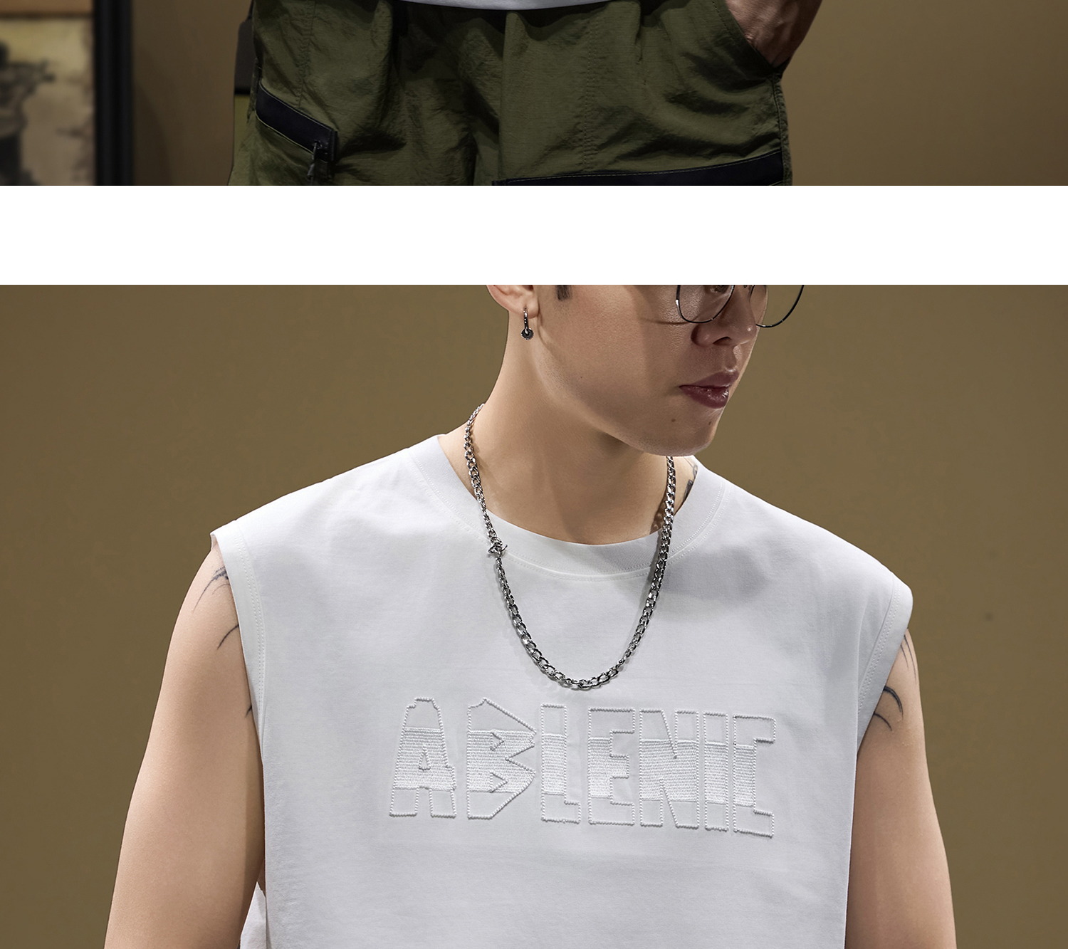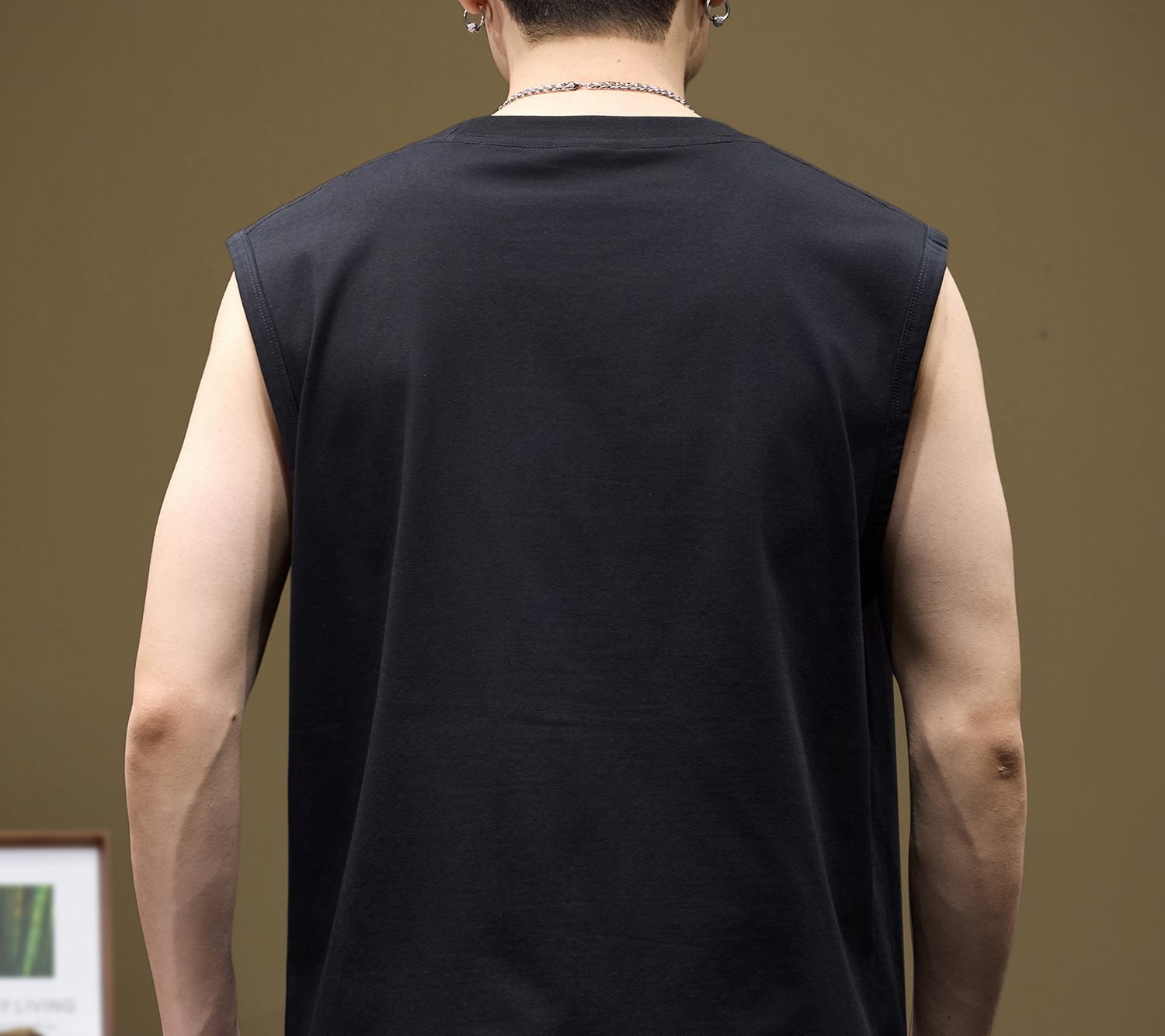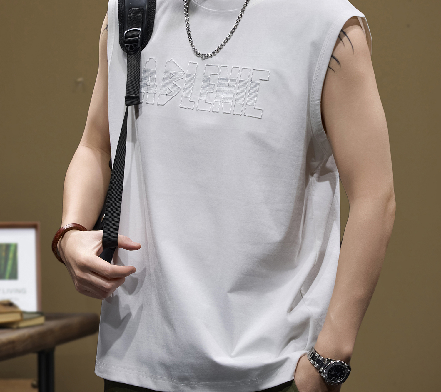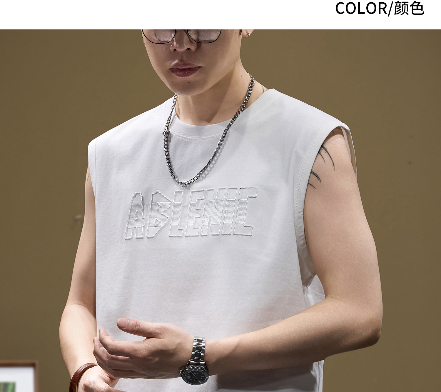 潮牌時尚立體印花無袖坎肩t恤男士夏季寬松涼感大碼健身運動背心