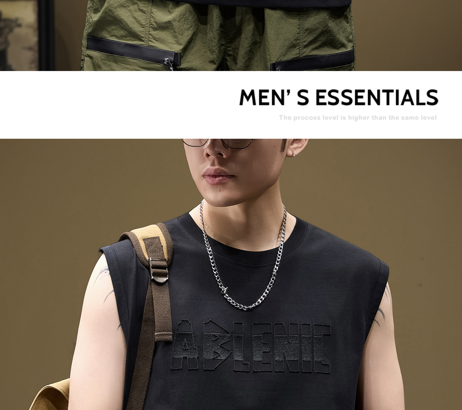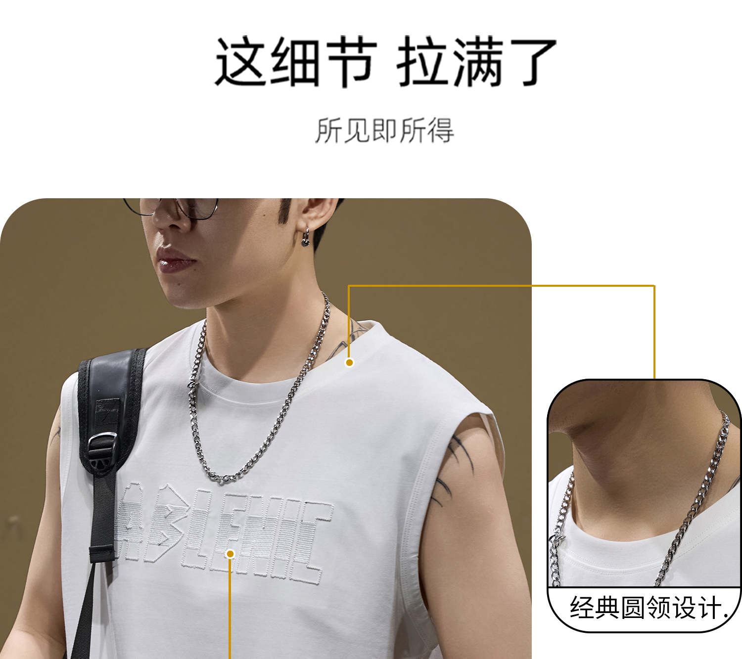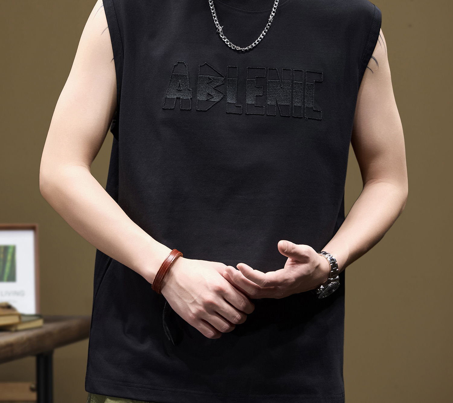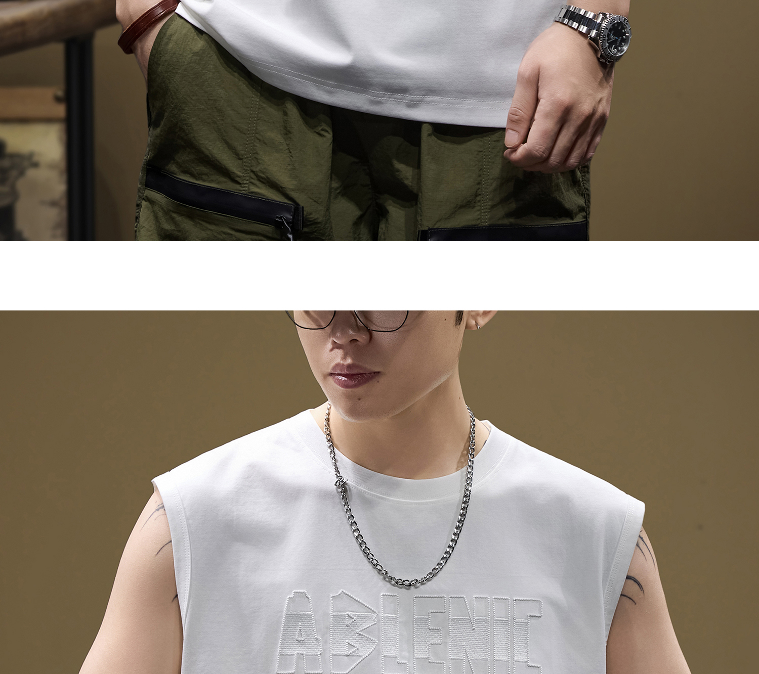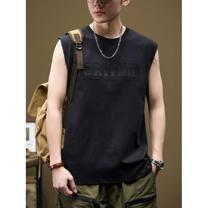 潮牌時尚立體印花無袖坎肩t恤男士夏季寬松涼感大碼健身運動背心