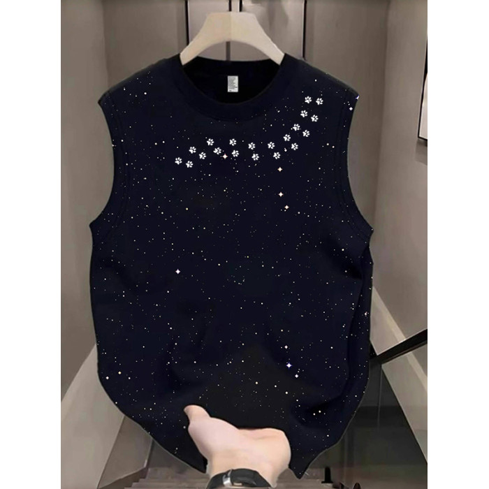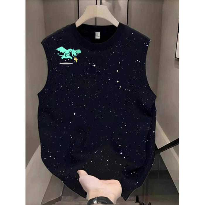 美式滿天星背心男女款夏季純棉無袖坎肩休閒百搭T恤小衆印花上衣