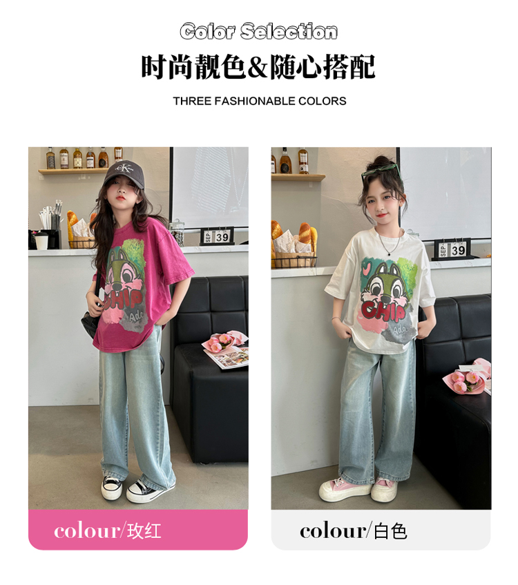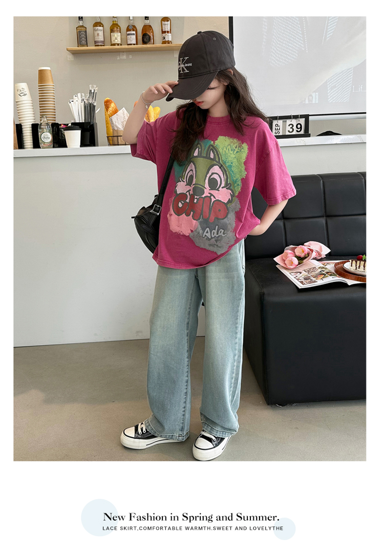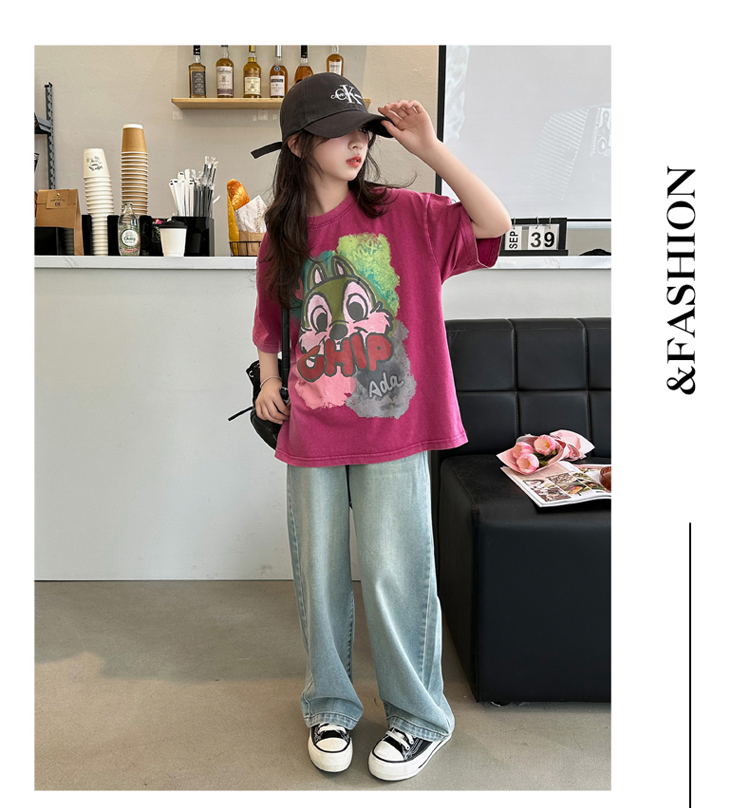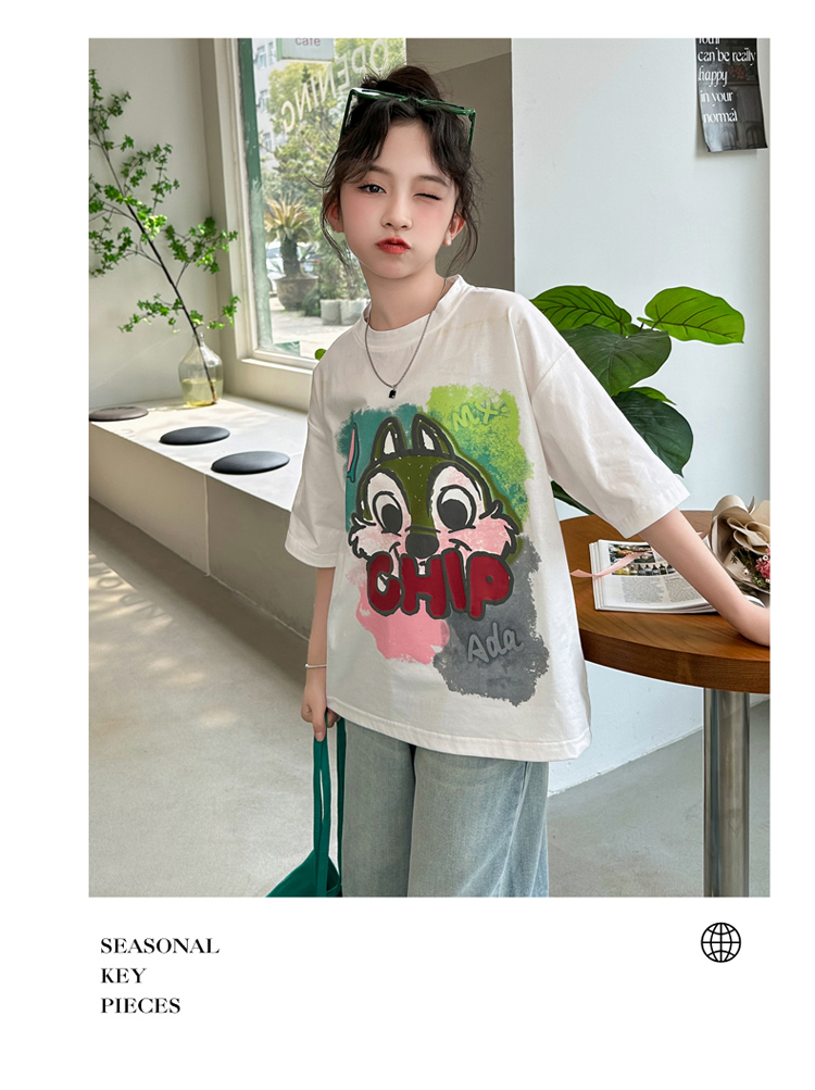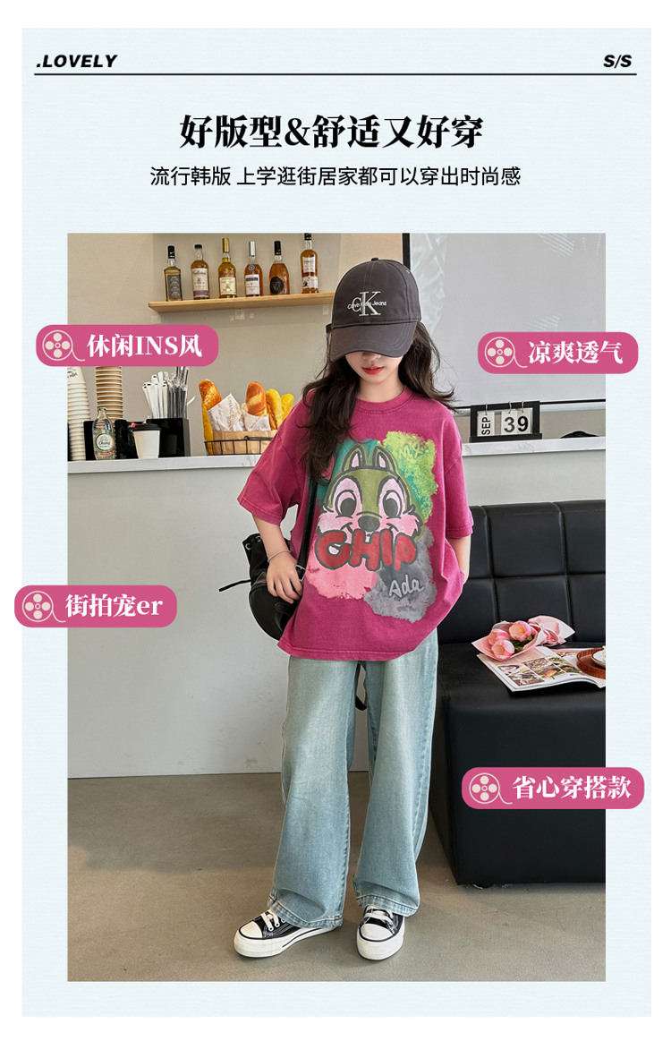 REY韓國女童短袖t恤夏季2025新款中大童女孩半袖上衣兒童夏裝