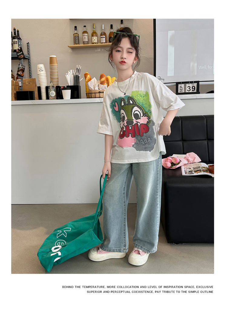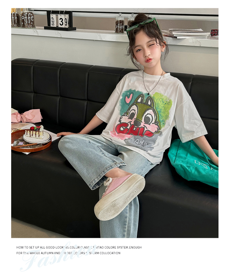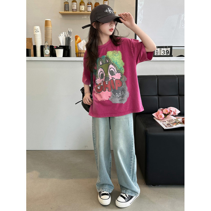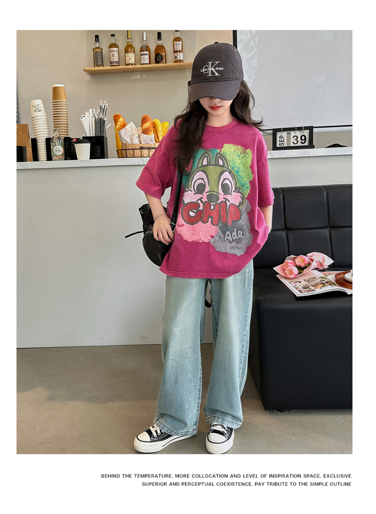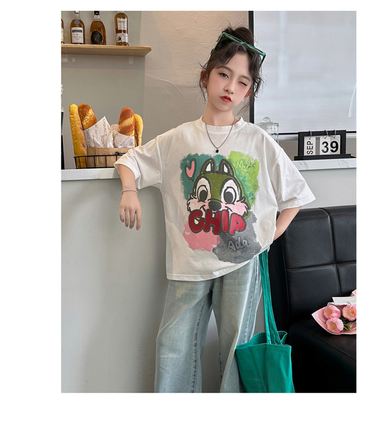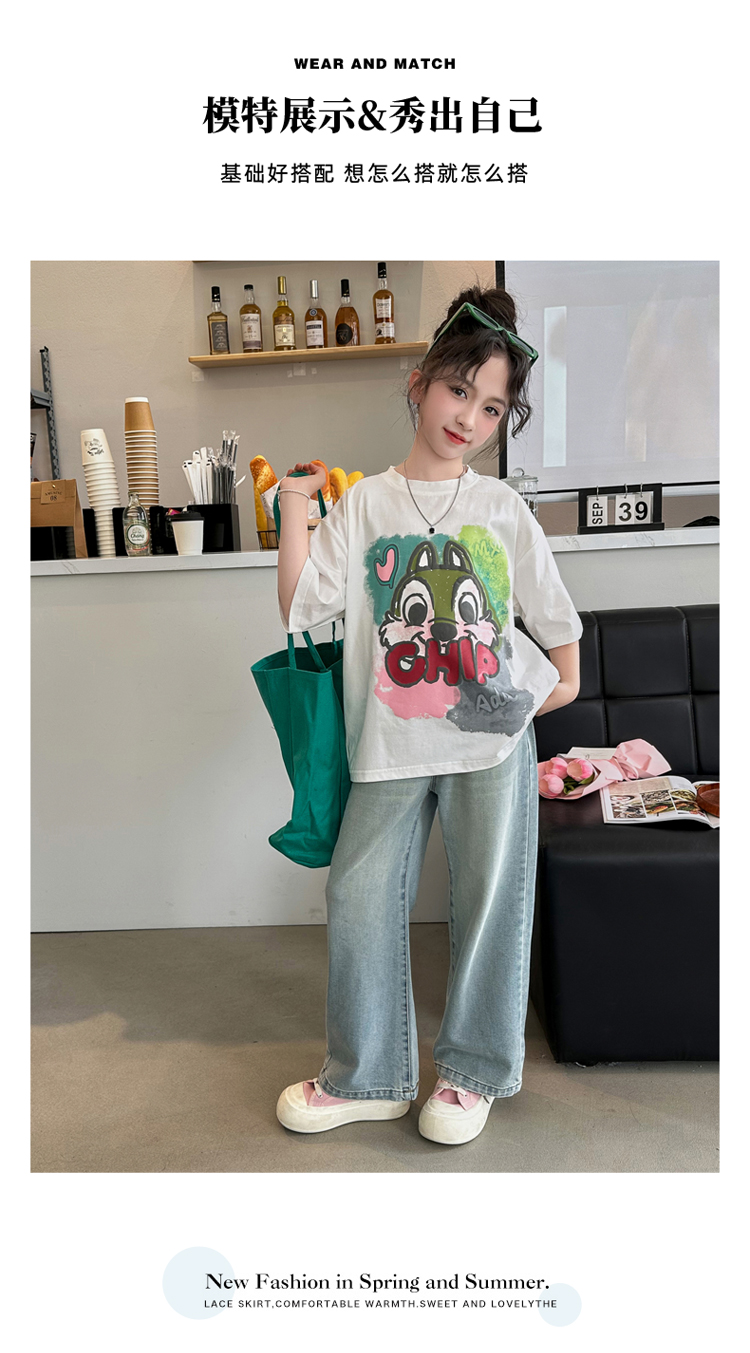 REY韓國女童短袖t恤夏季2025新款中大童女孩半袖上衣兒童夏裝