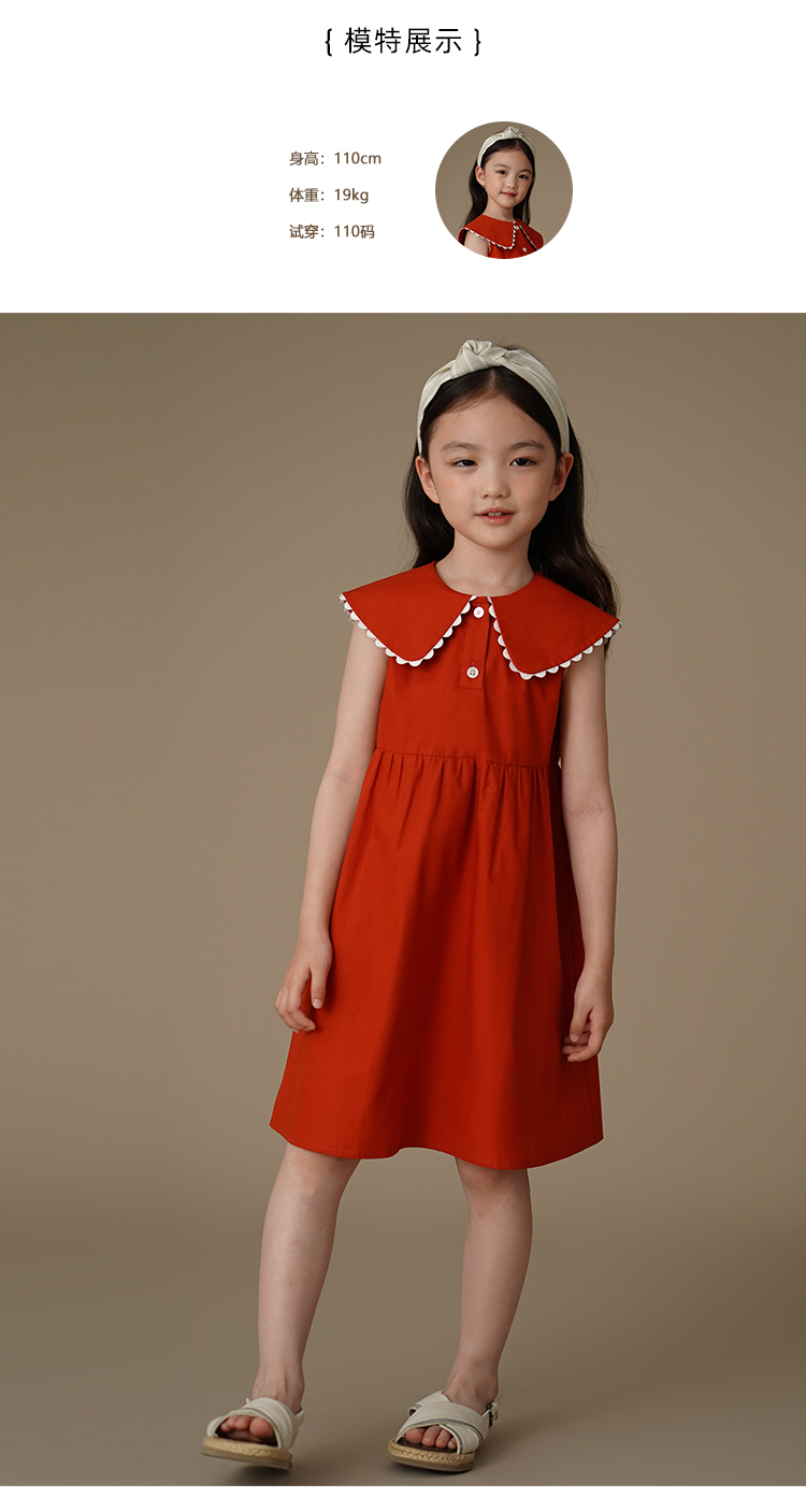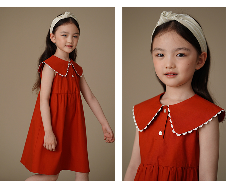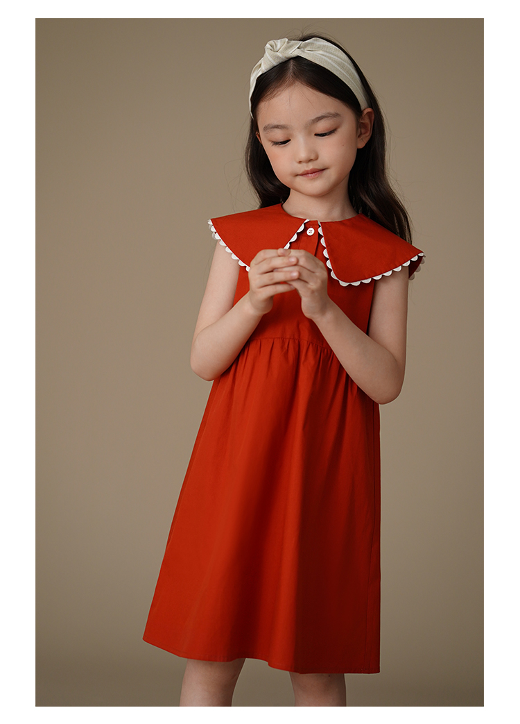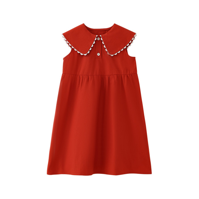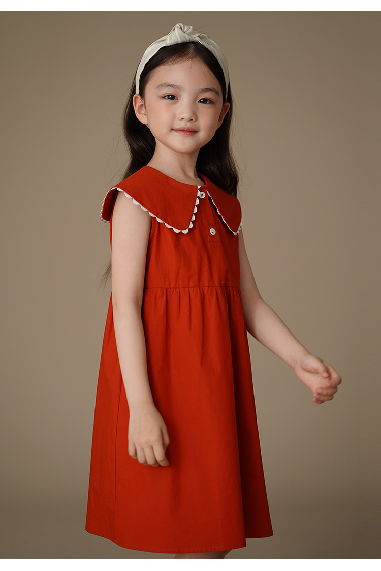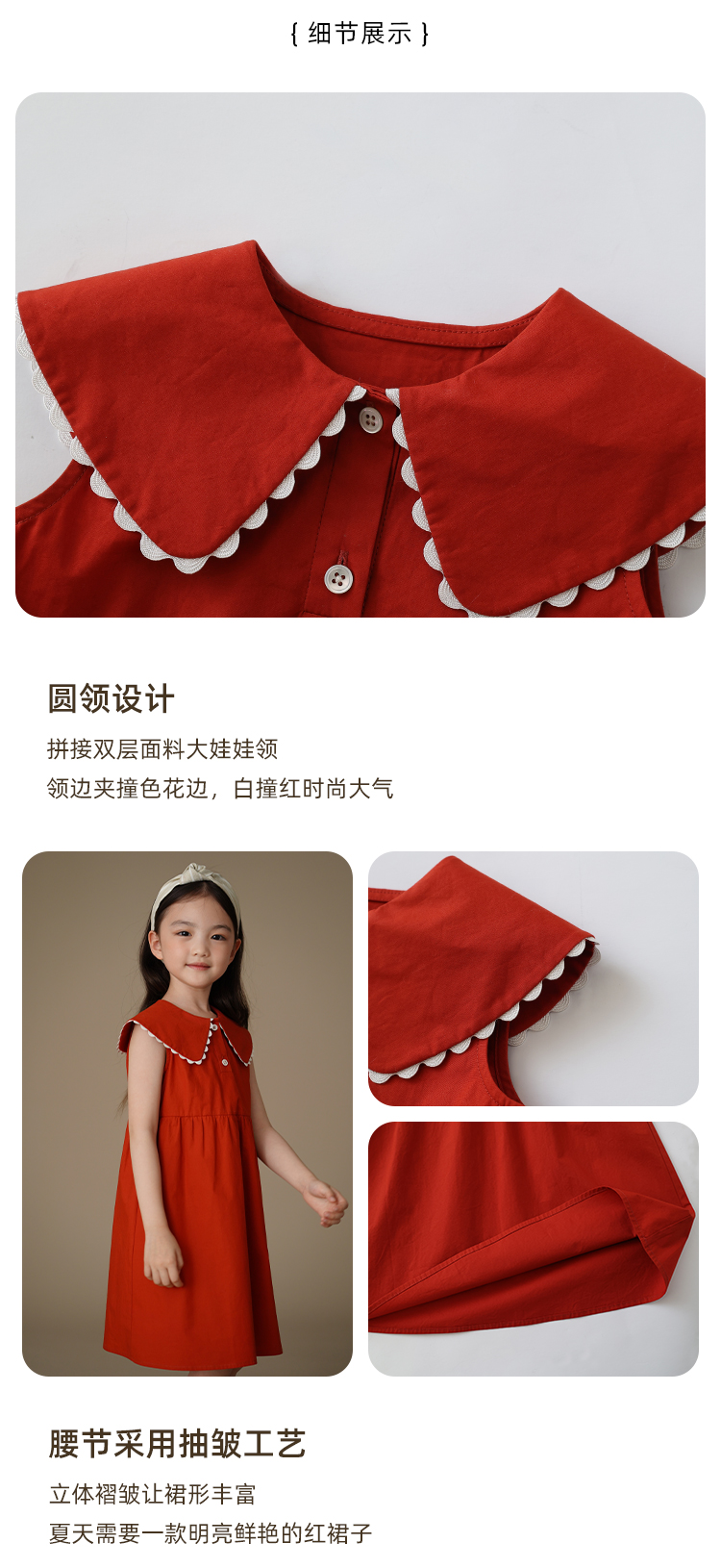哈齒童裝夏季兒童連衣裙甜美紅色娃娃裙女童中長款背心裙女孩夏裝