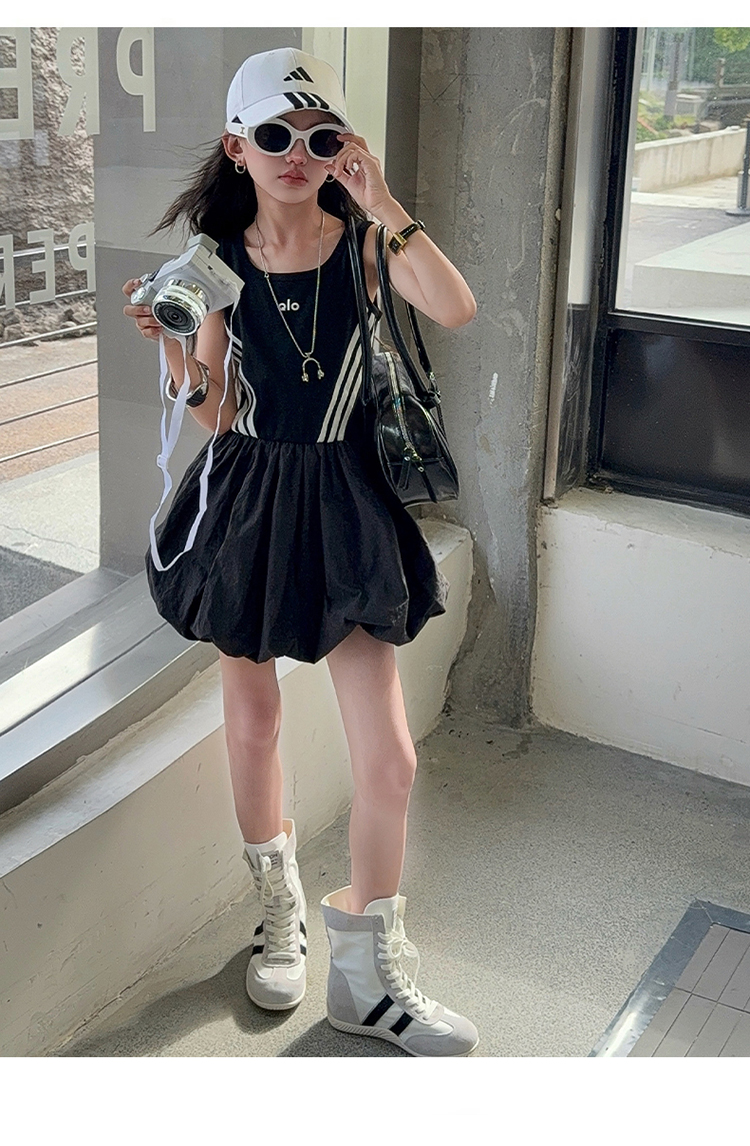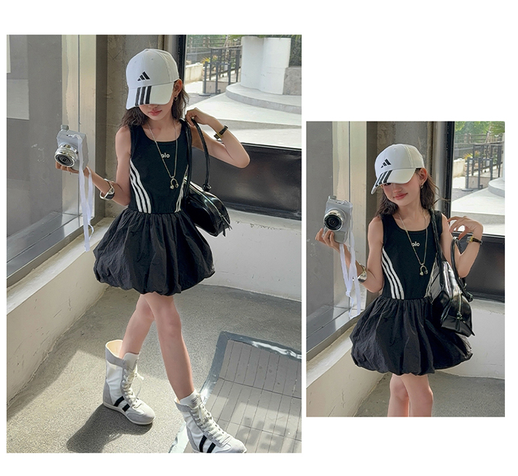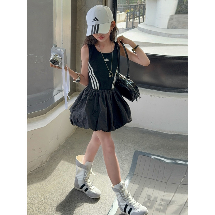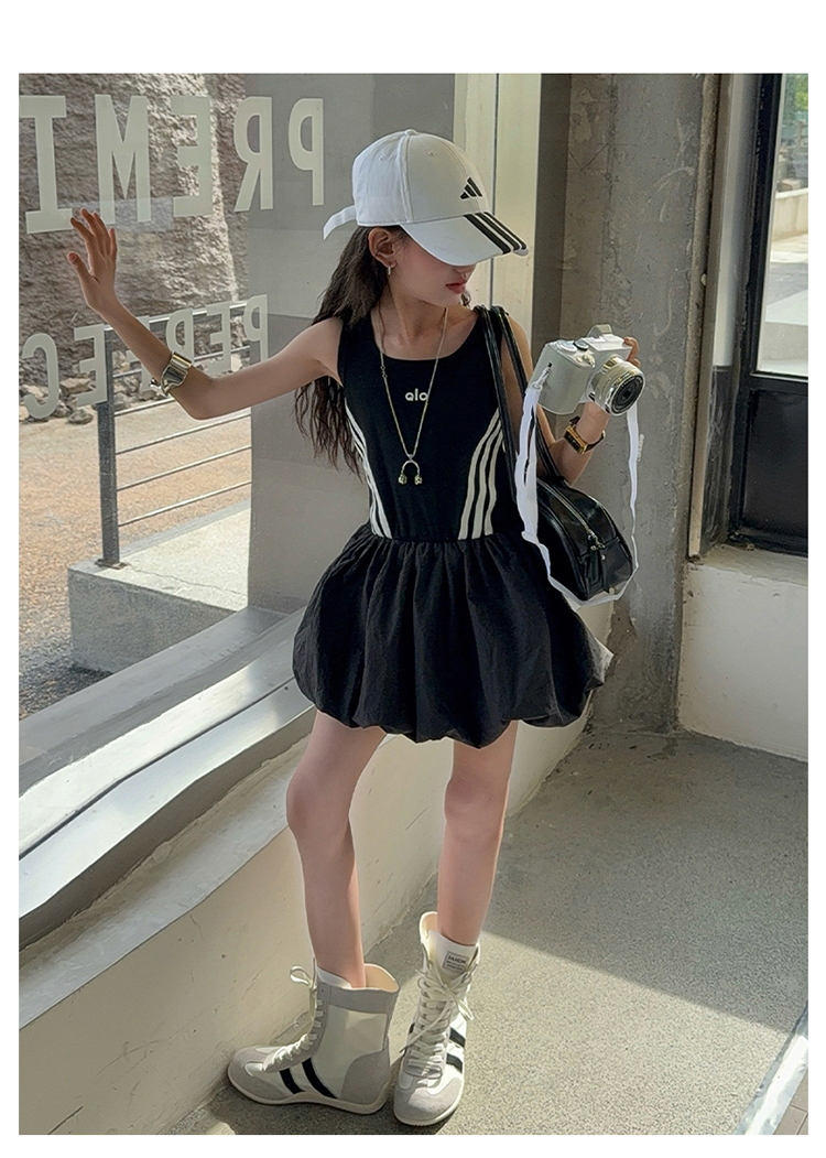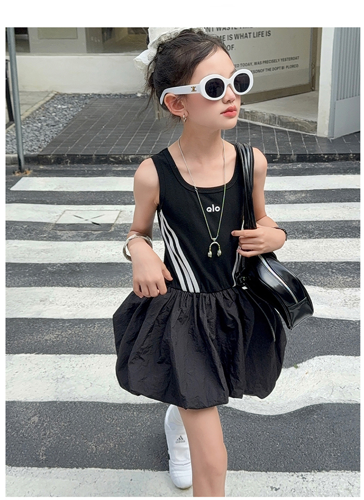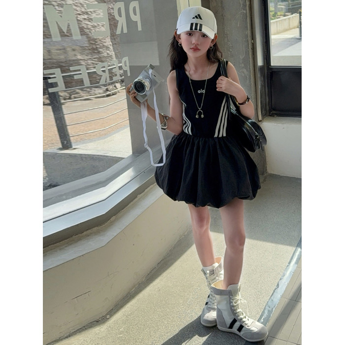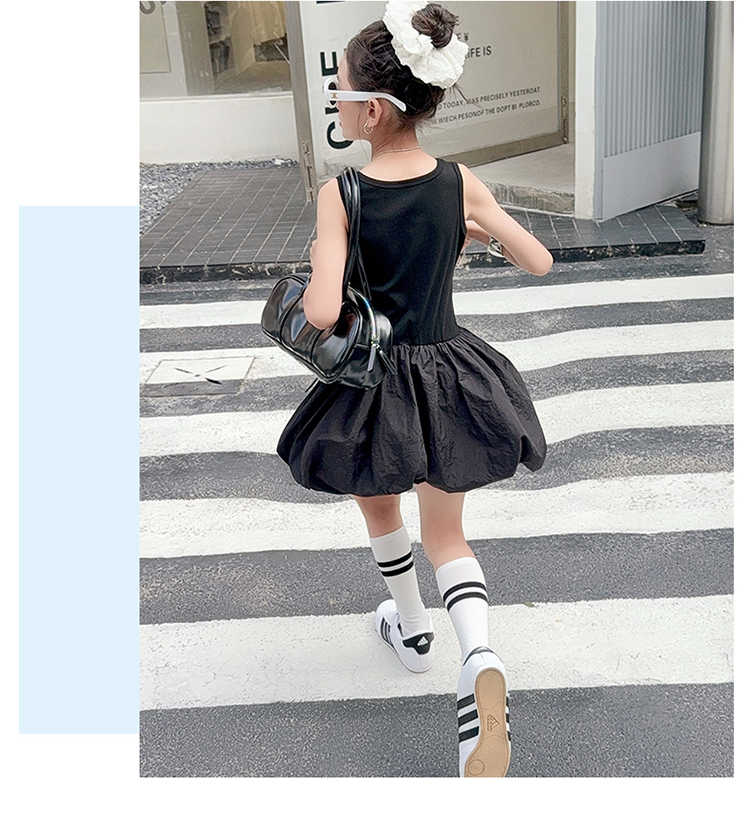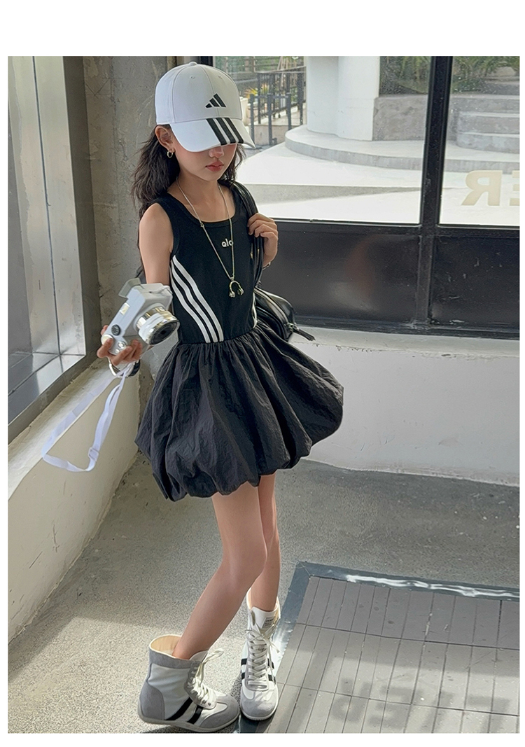 女童連衣裙兒童夏裝花苞裙子女孩2025年洋氣背心裙拉條收腰蓬蓬裙