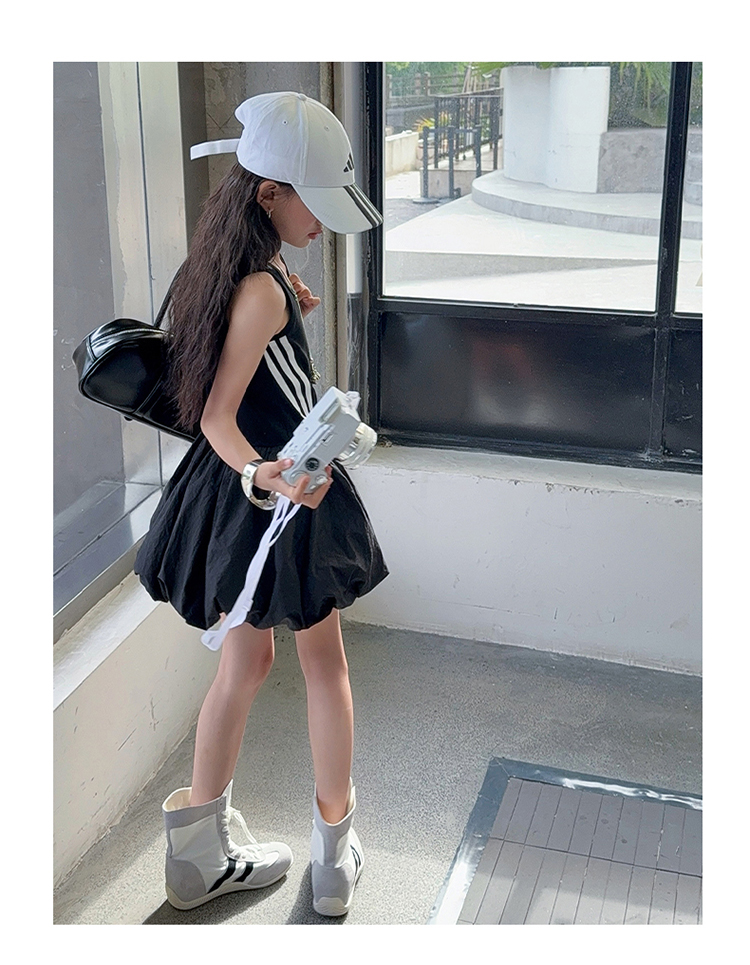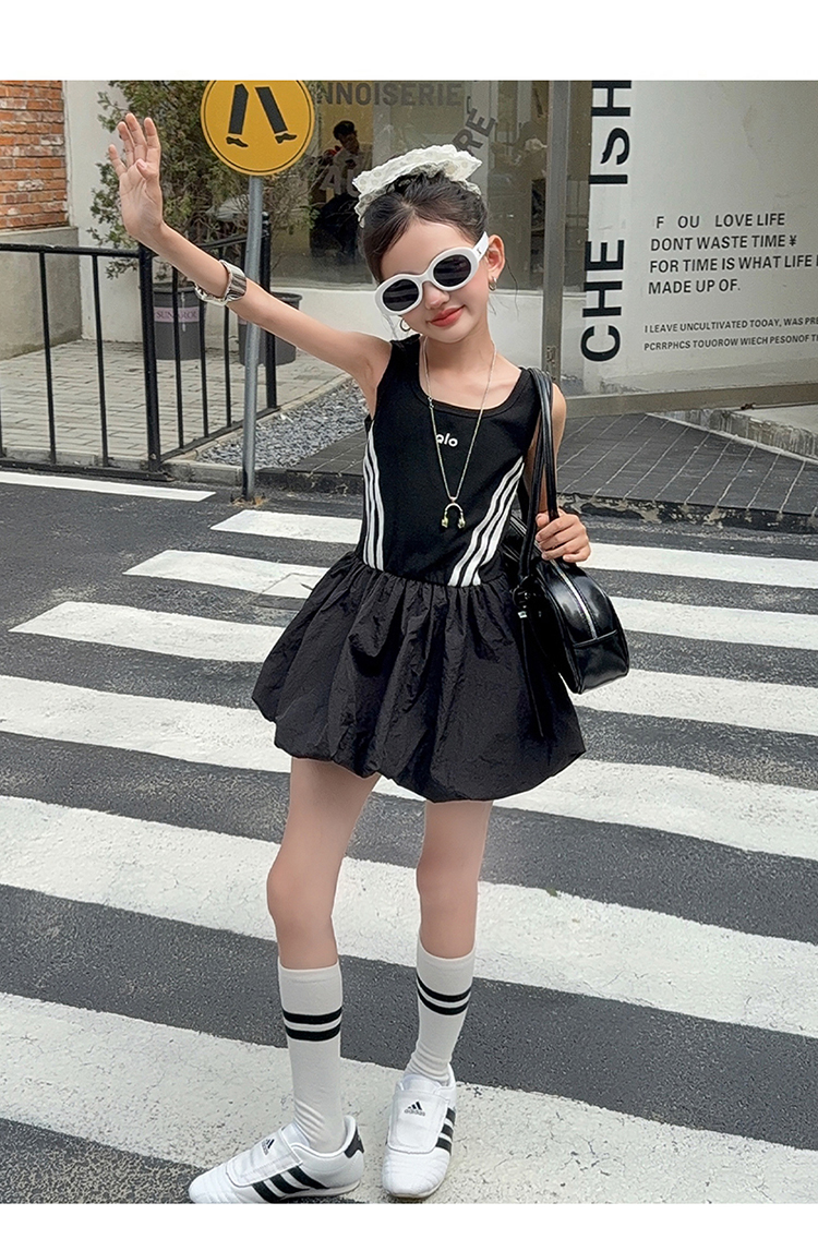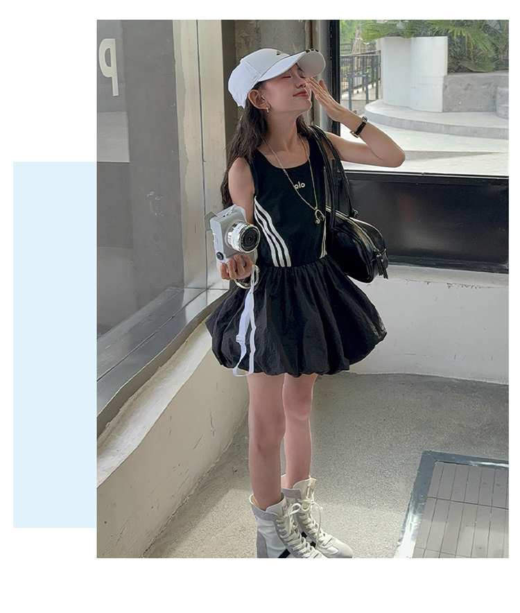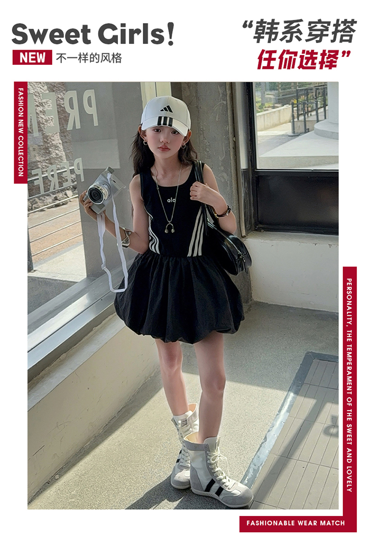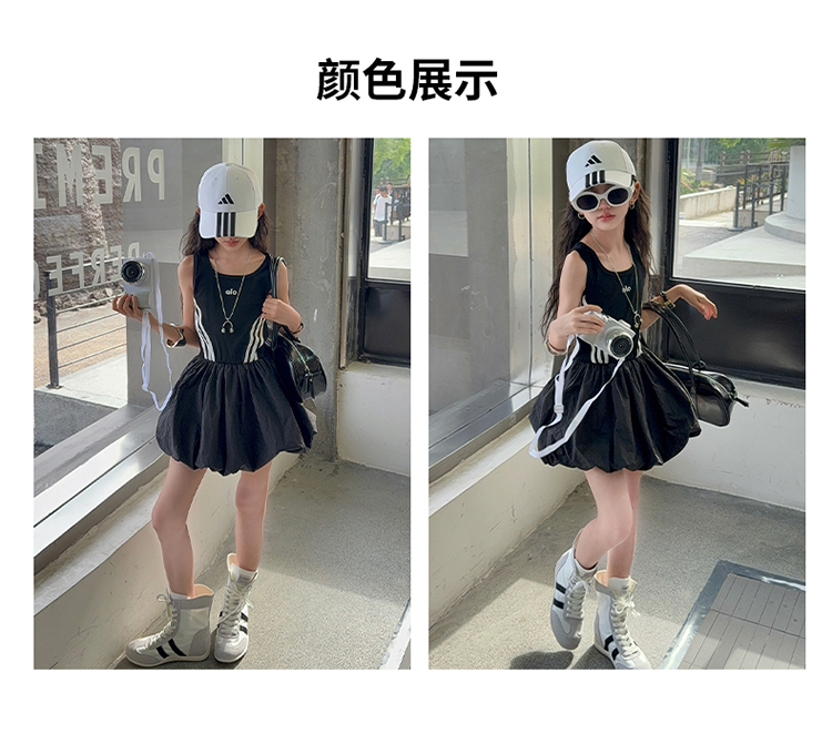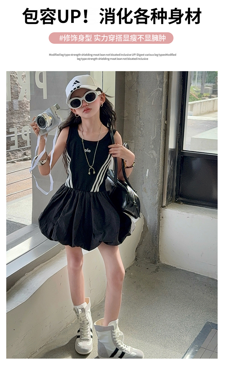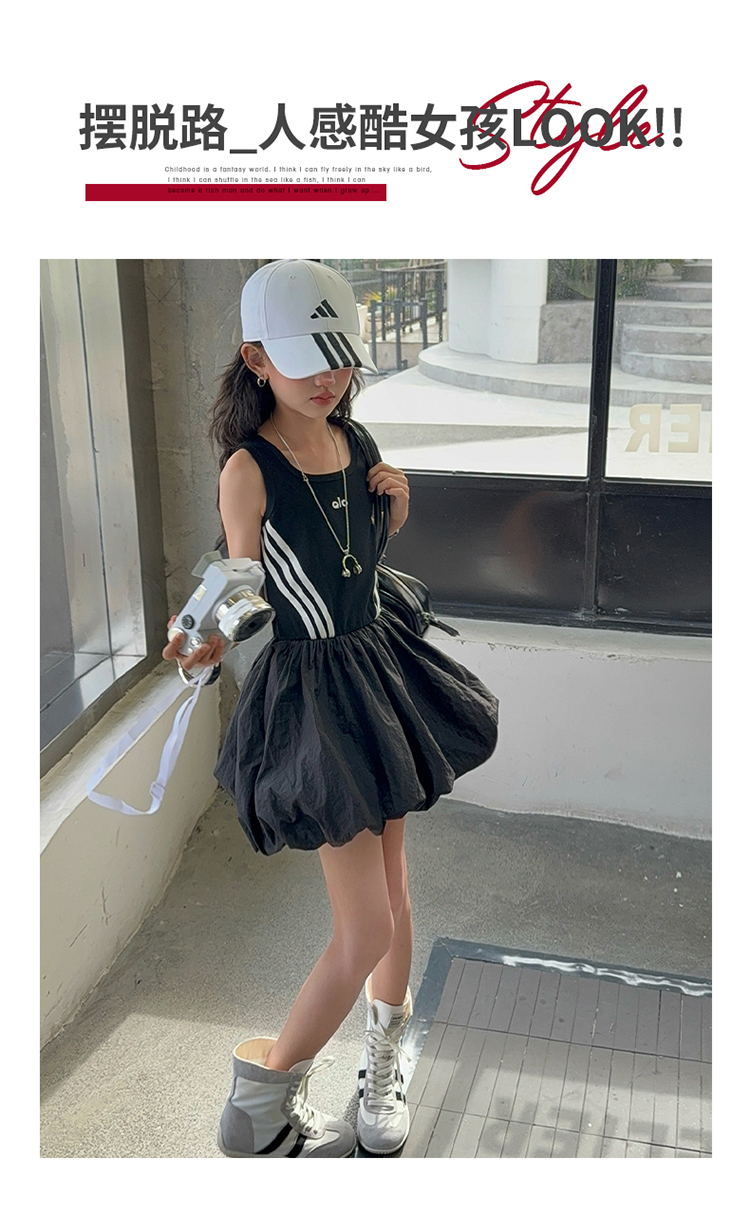 女童連衣裙兒童夏裝花苞裙子女孩2025年洋氣背心裙拉條收腰蓬蓬裙