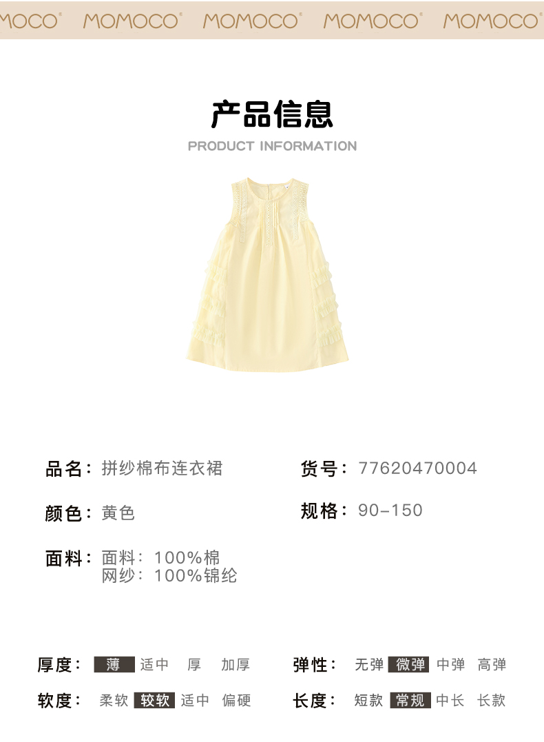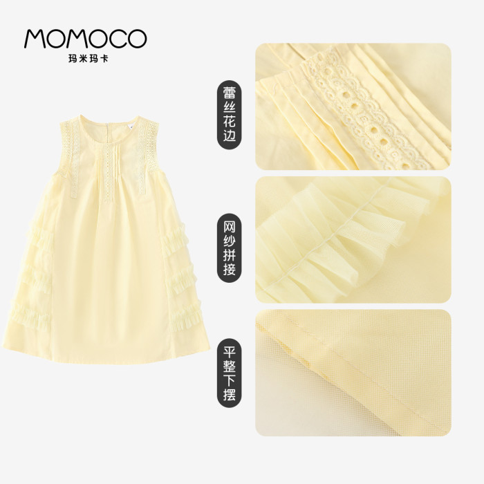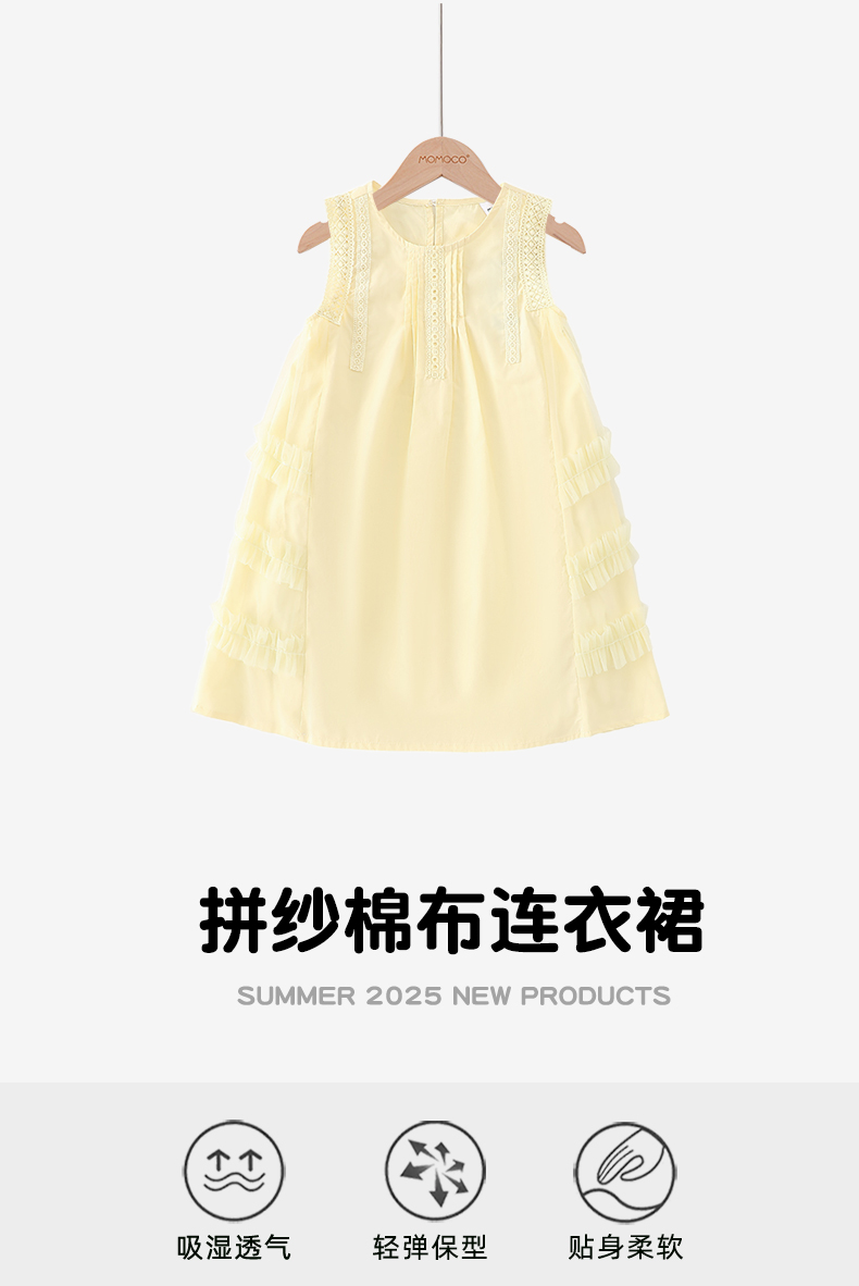 MOMOCO/瑪米瑪卡女童連衣裙2025新款夏季兒童拼接韓版公主背心裙