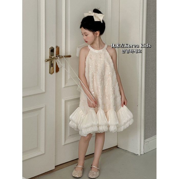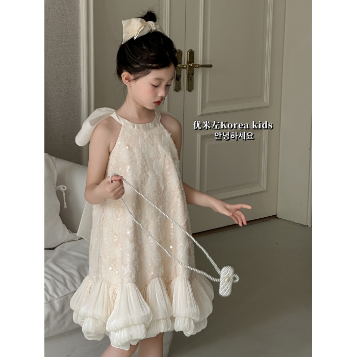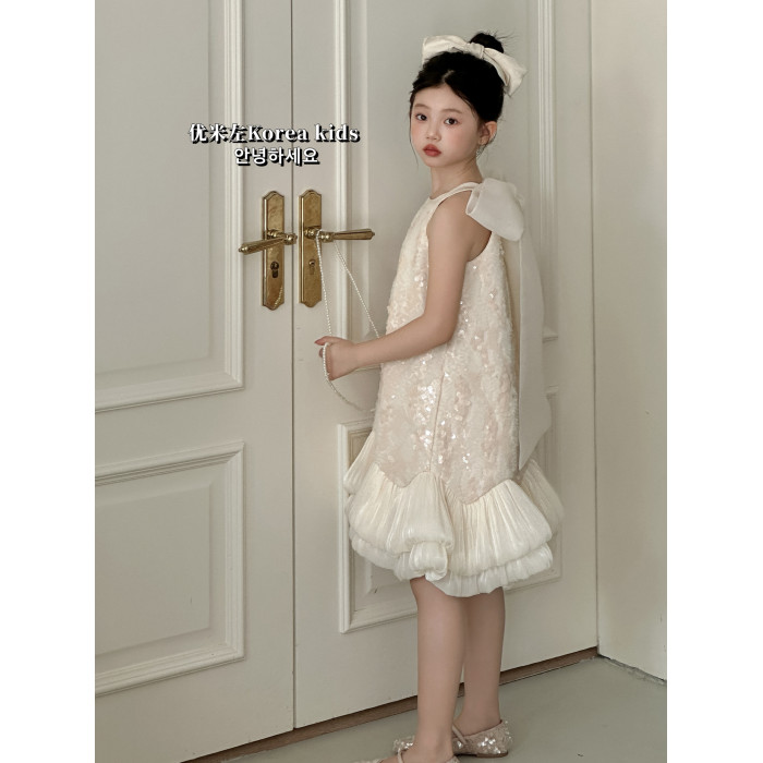 高級女童連衣裙2025新款夏季兒童公主裙夏裝亮片禮服女孩生日裙子
