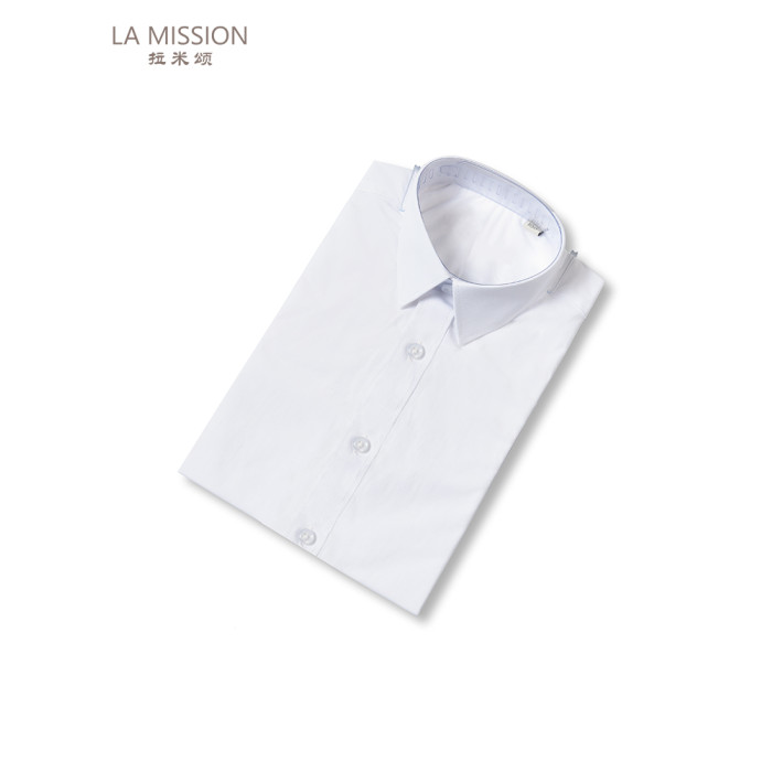 簡約短袖白襯衫 (繙領光版款)