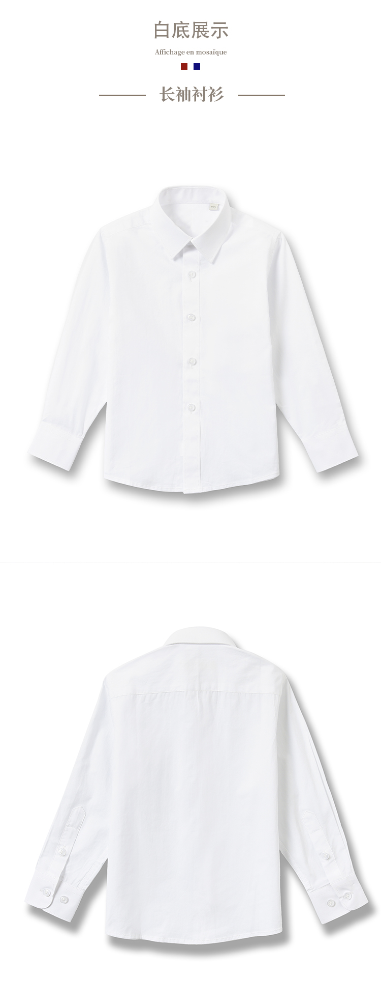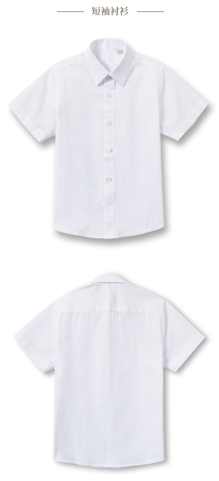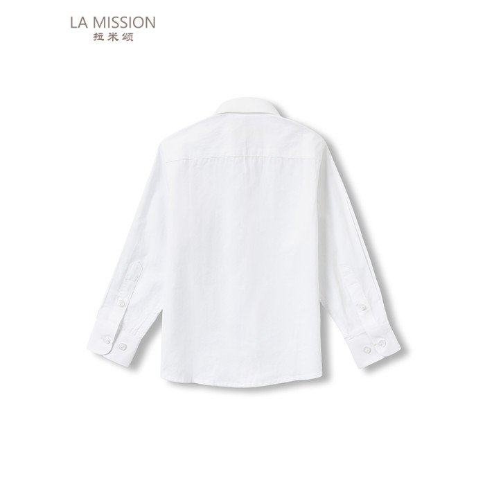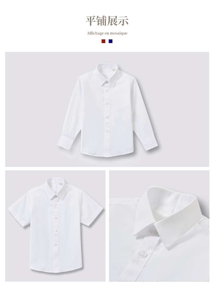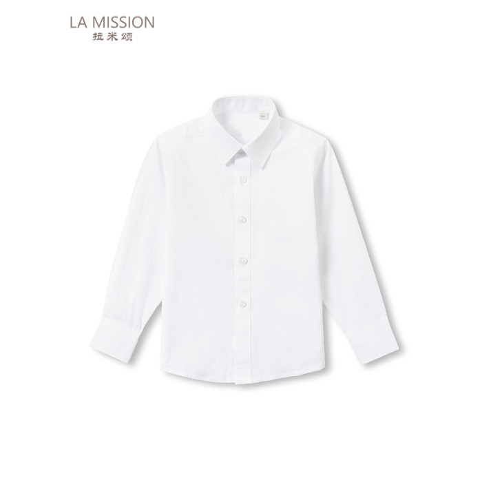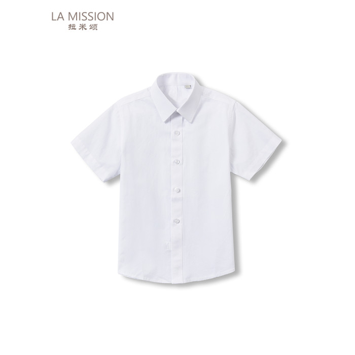 拉米頌100%純棉兒童白襯衫簡約翻領長袖短袖男童襯衣光版白襯衫