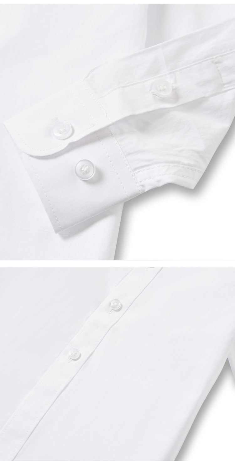 簡約長袖白襯衫 (繙領光版款)