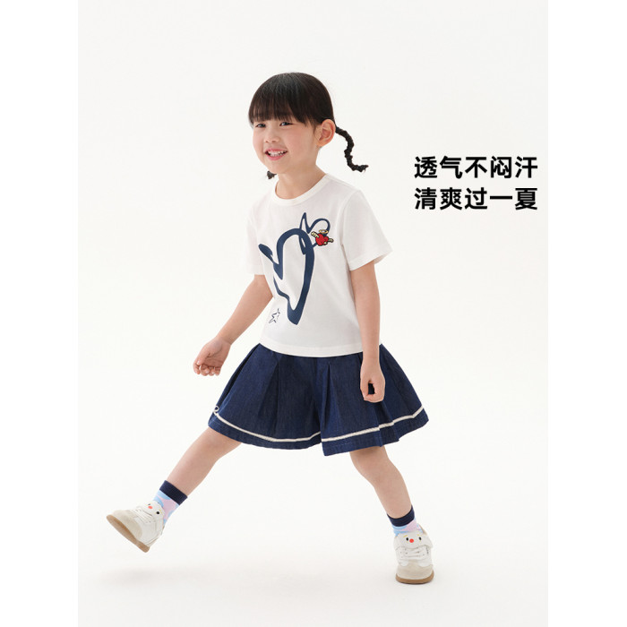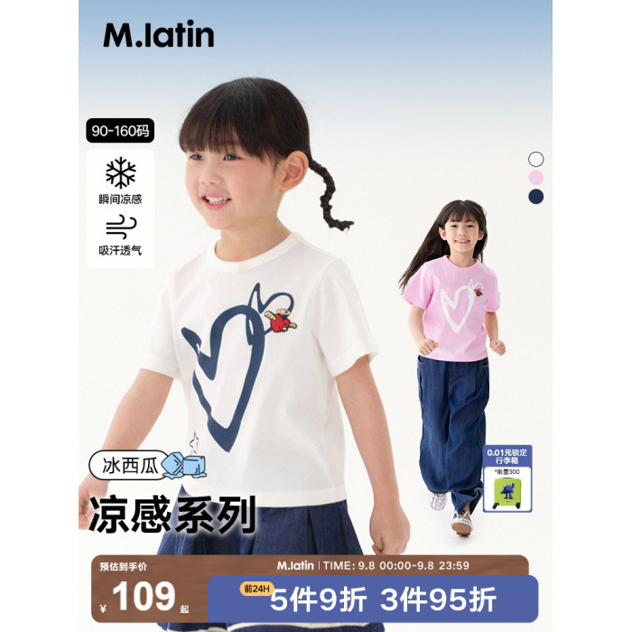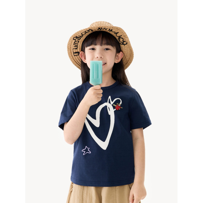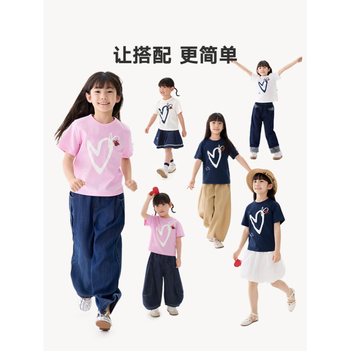 馬拉丁童裝兒童T恤25夏新款女童愛心印花冰氧酷大小童短袖T恤