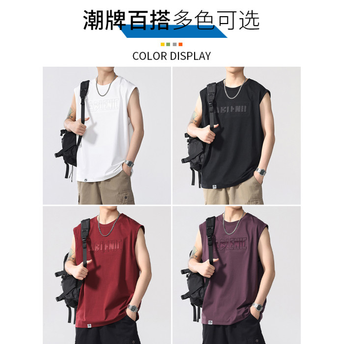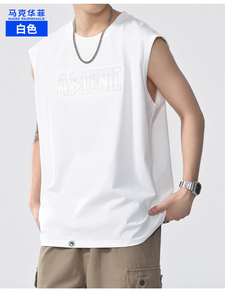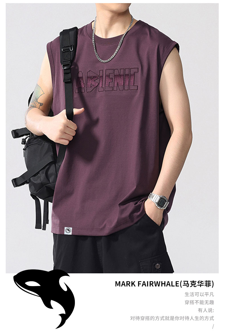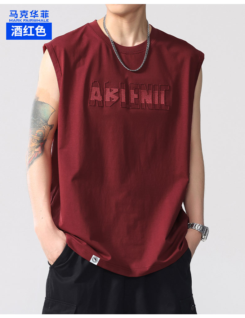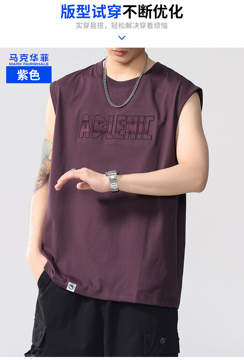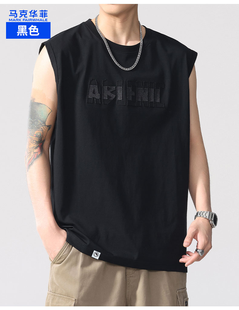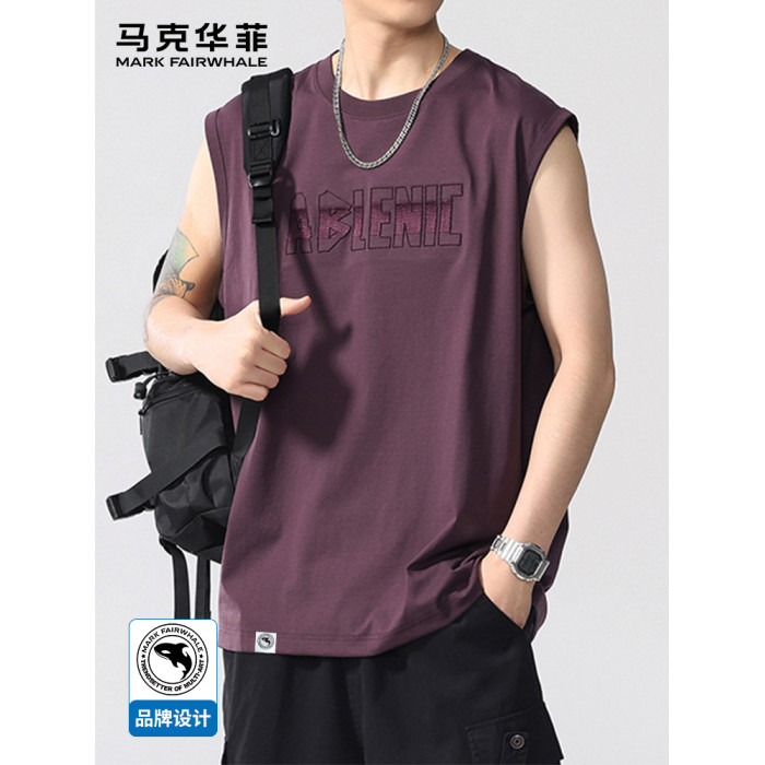 馬克華菲重磅運動健身背心男款夏季坎肩2025新款寬松上衣無袖t恤