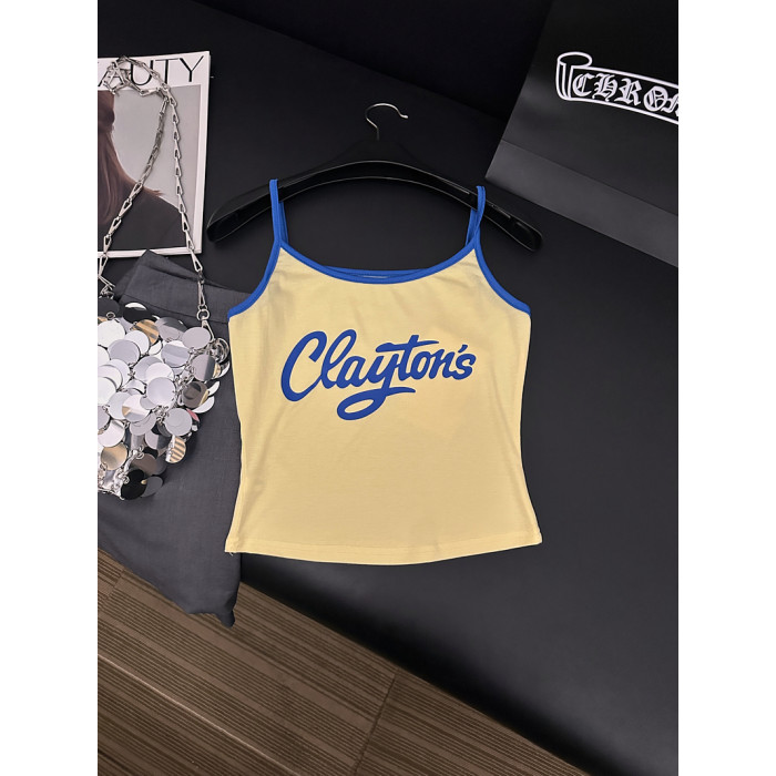 一慄莎子~美式甜辣妹純欲風字母印花吊帶背心女外穿內搭短款上衣