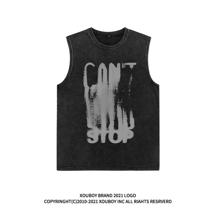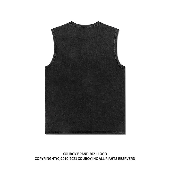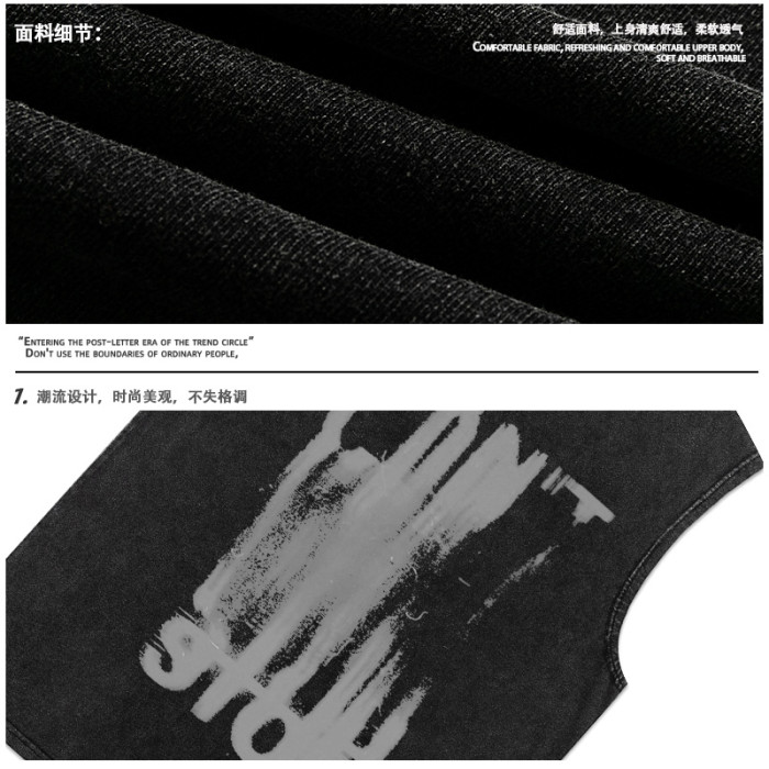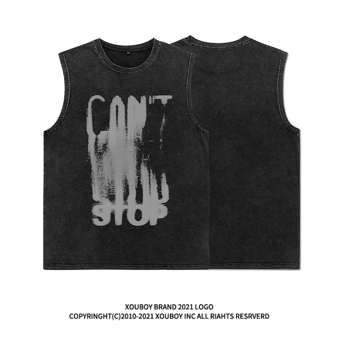 美式高街復古vintage暗黑水洗運動背心男潮牌ins街頭寬松坎肩T恤