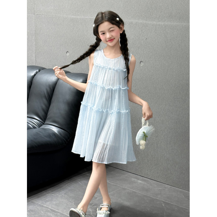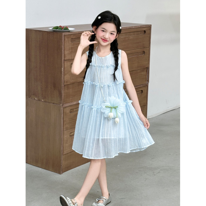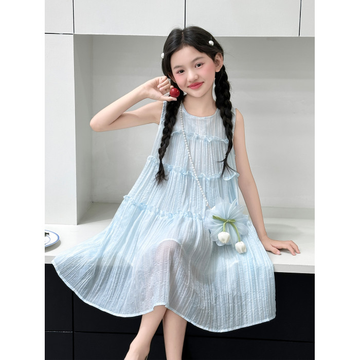 女童連衣裙夏季2025新款洋氣女孩裙子女大童吊帶裙兒童公主裙夏裝