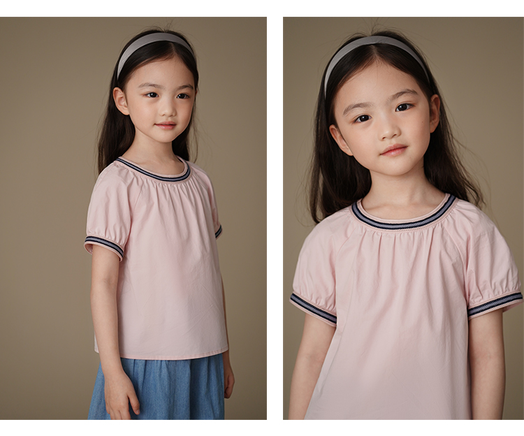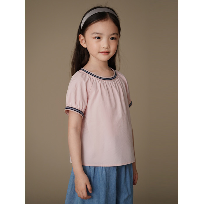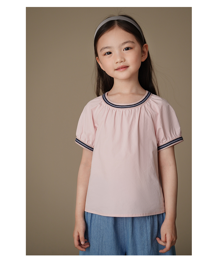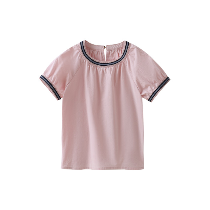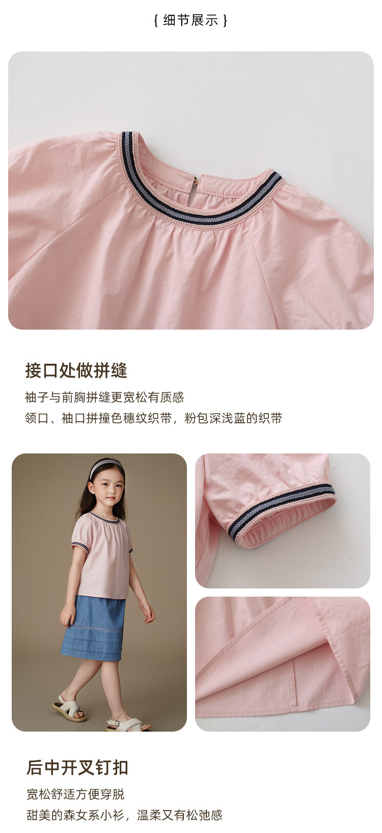 哈齒童裝兒童夏裝甜美粉色森系上衣女童短袖襯衫親膚全棉小衫女孩