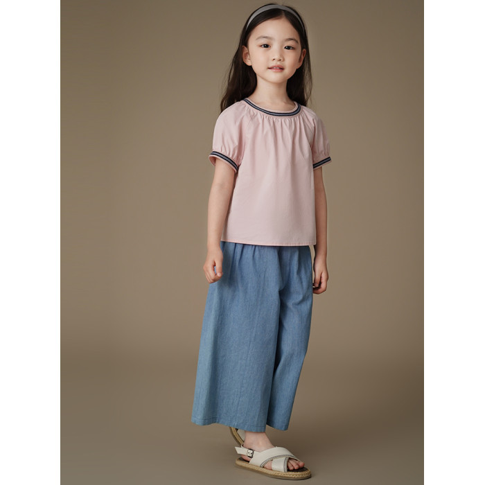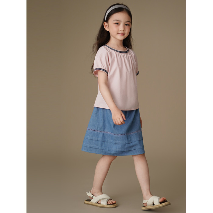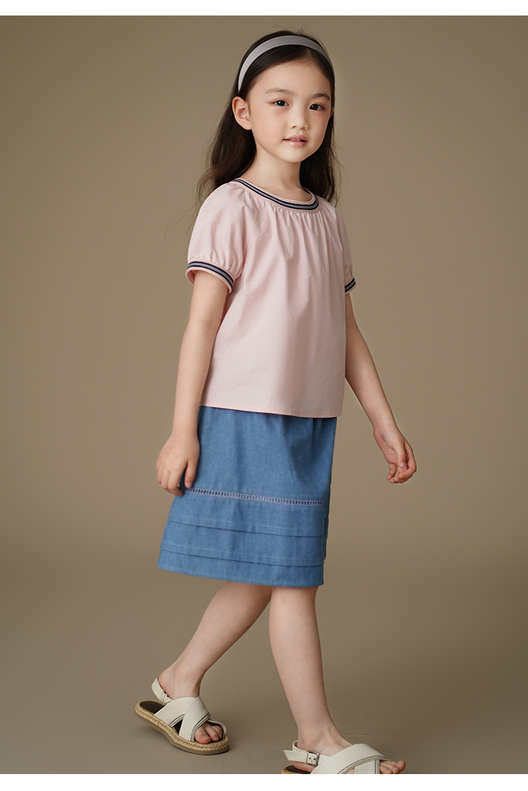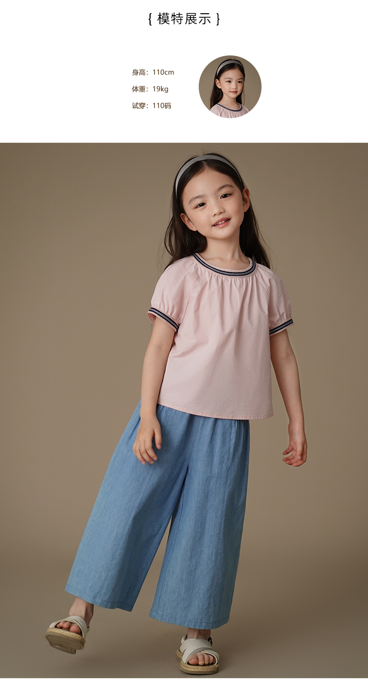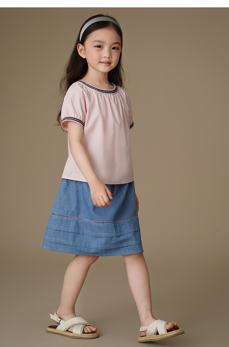 哈齒童裝兒童夏裝甜美粉色森系上衣女童短袖襯衫親膚全棉小衫女孩