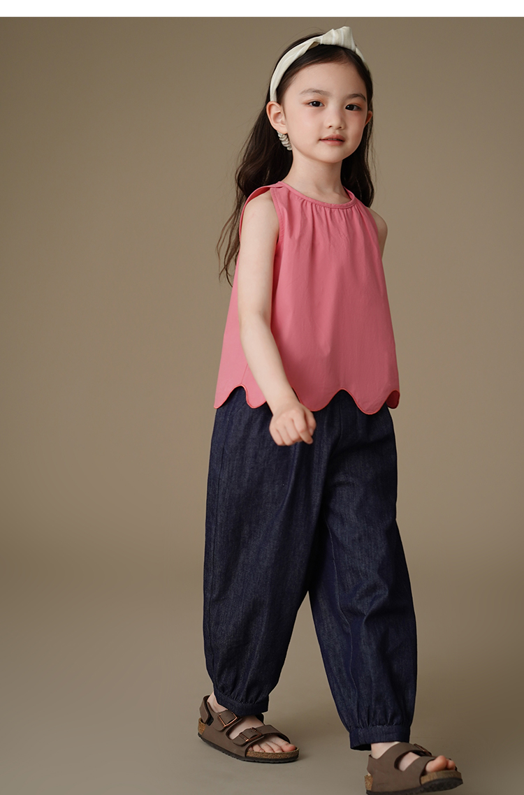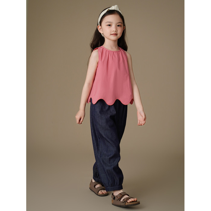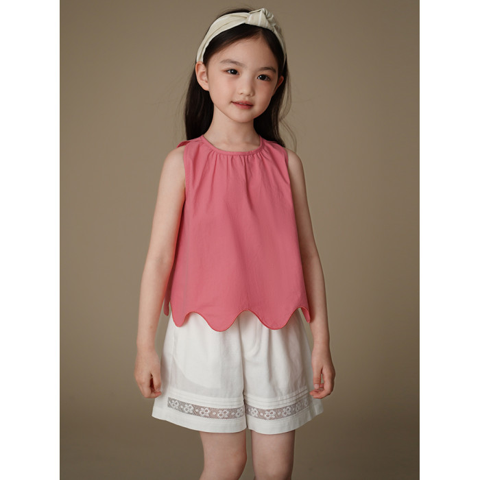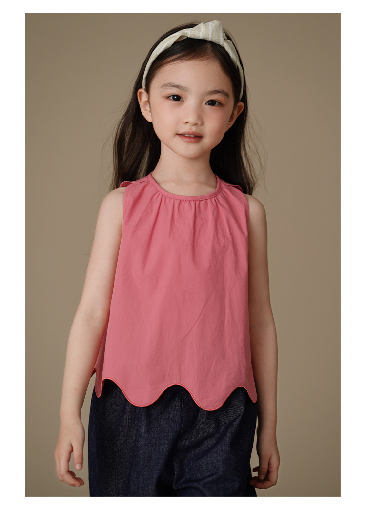 哈齒童裝兒童上衣韓版玫粉色全棉背心女童無袖襯衫中大童夏裝新款