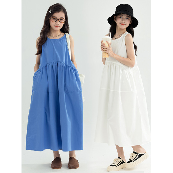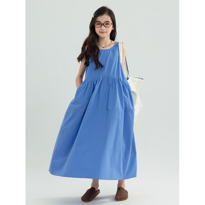 女童連衣裙夏季森系度假風背心裙中大童海邊沙灘裙女孩無袖長裙子