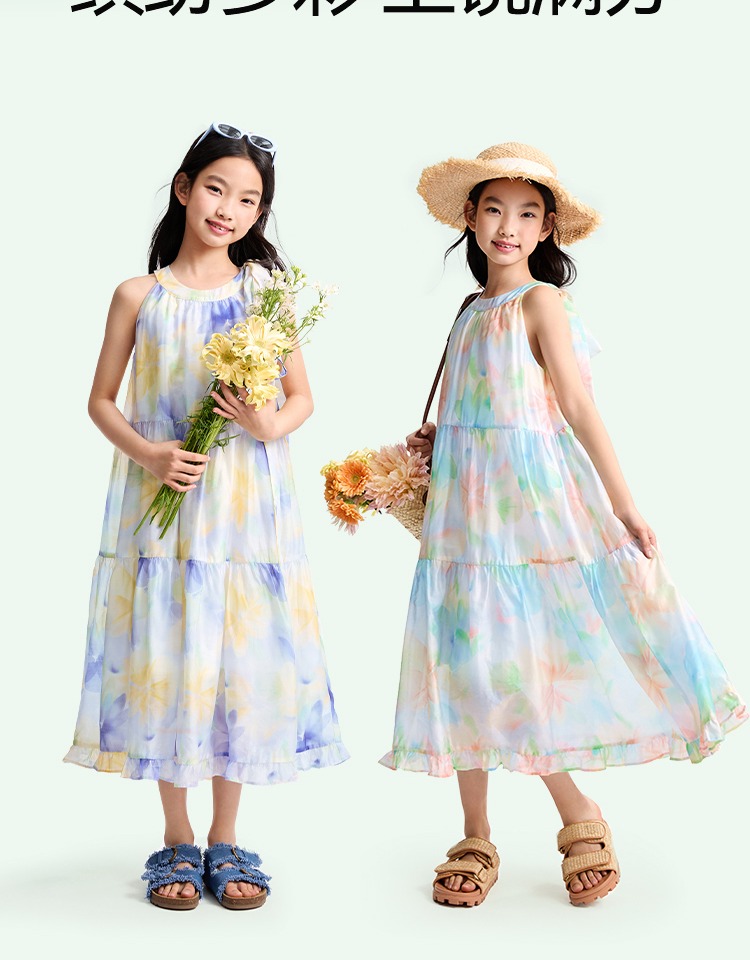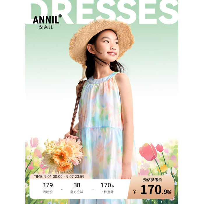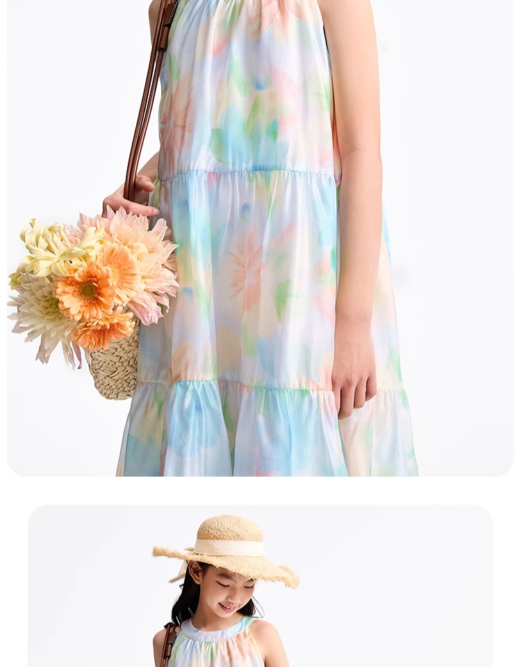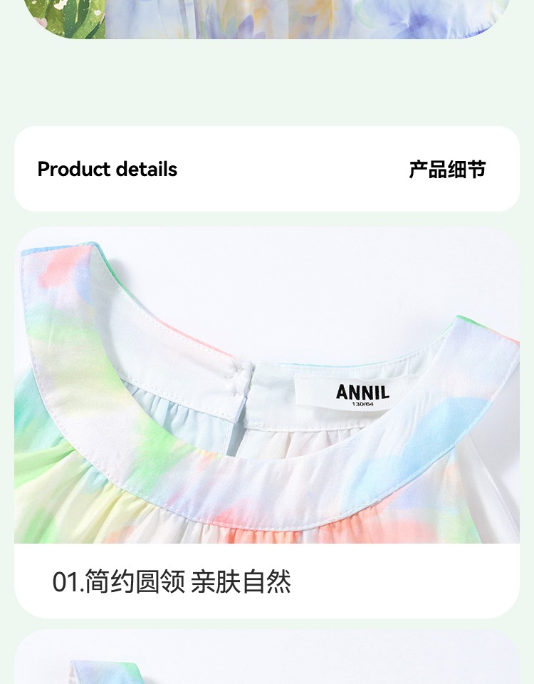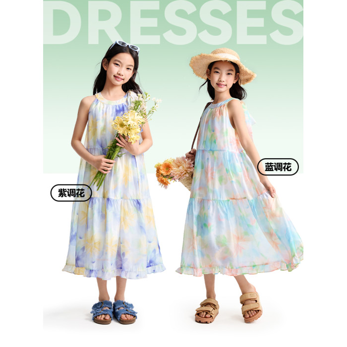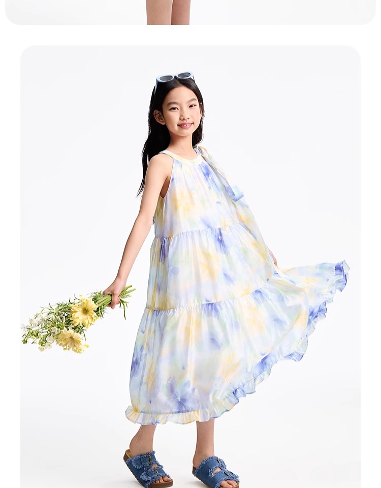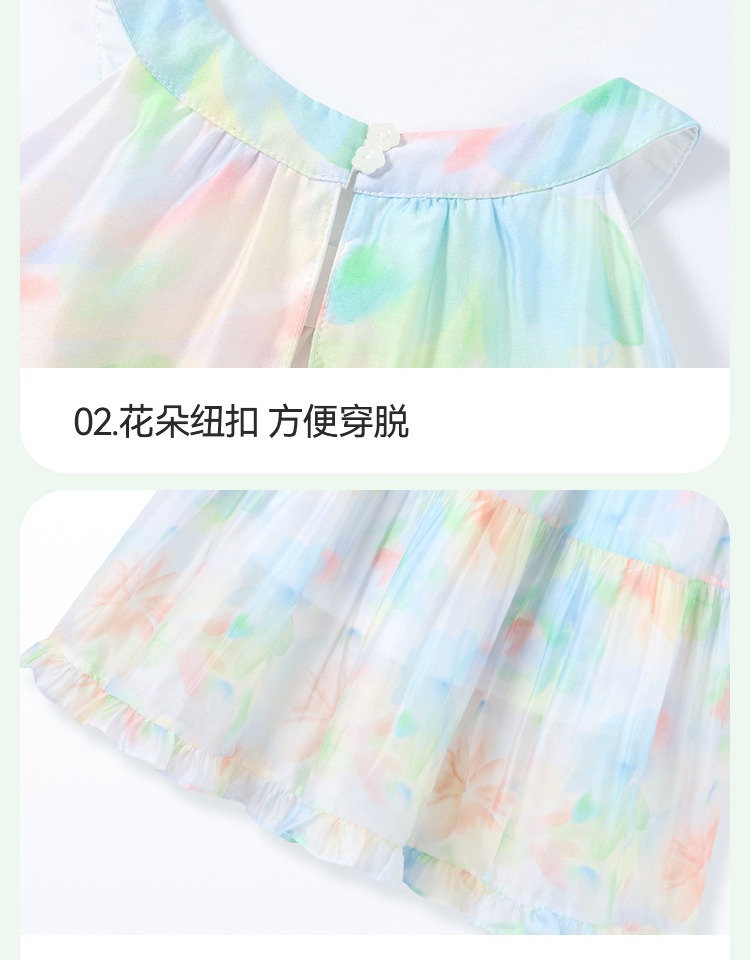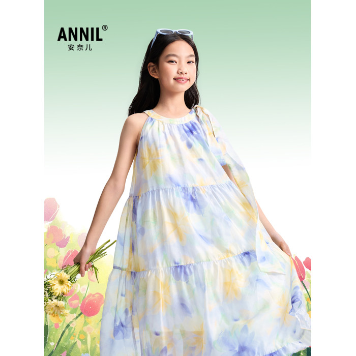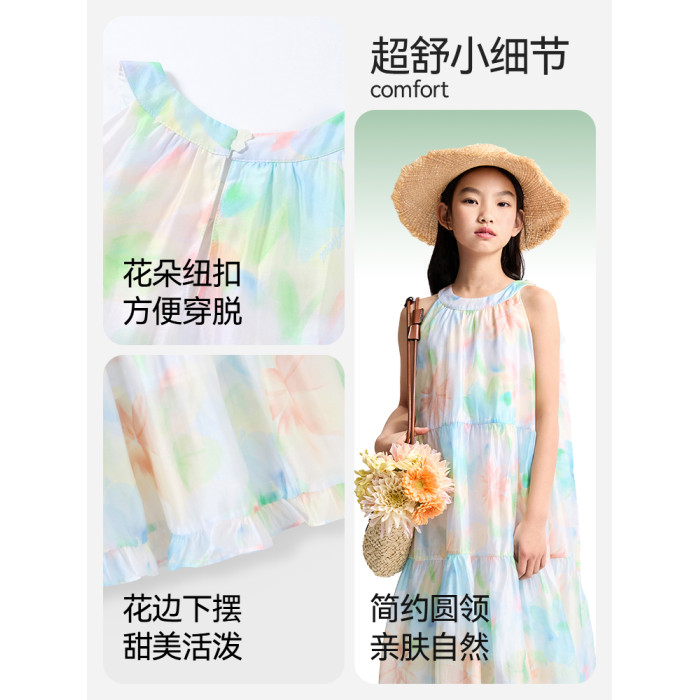 安奈兒童裝女童無袖連衣裙2025夏新款仙女風裙子甜美多彩背心裙