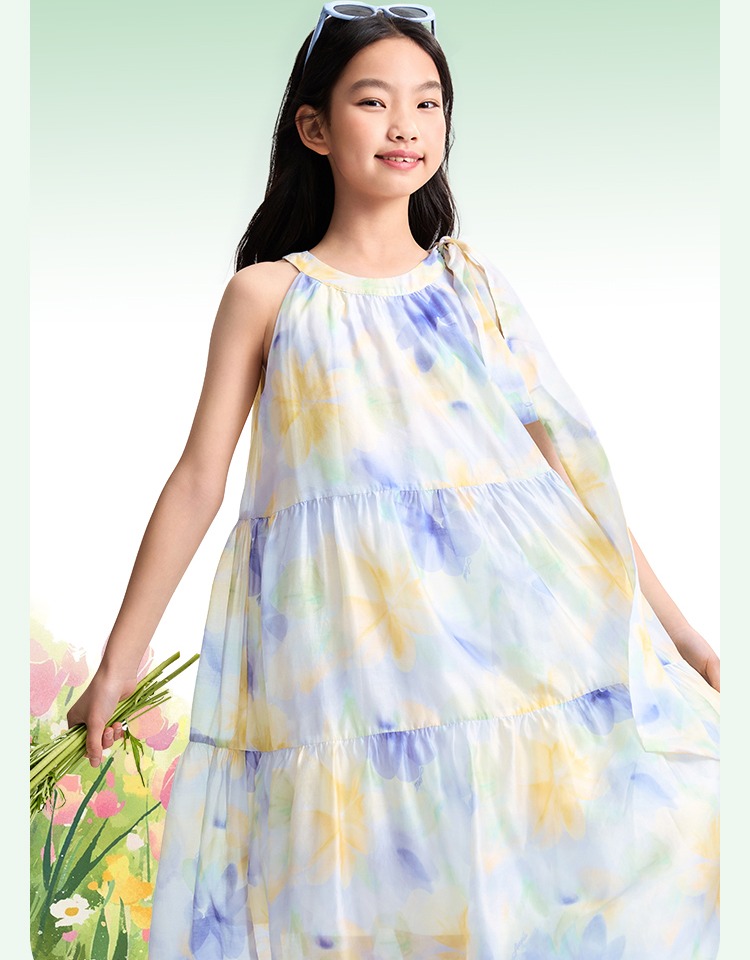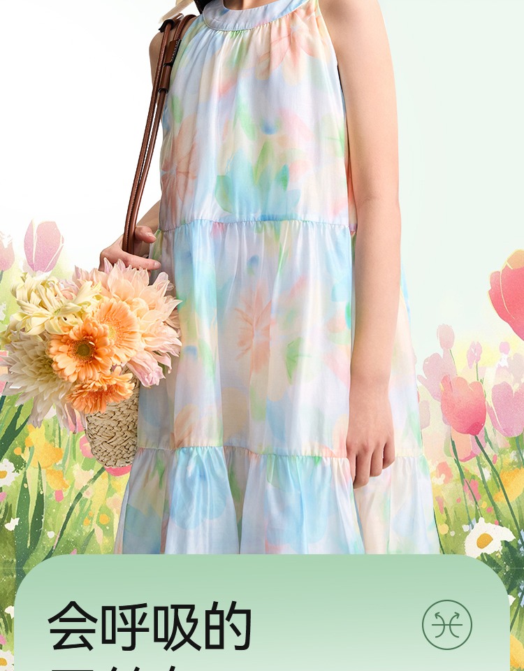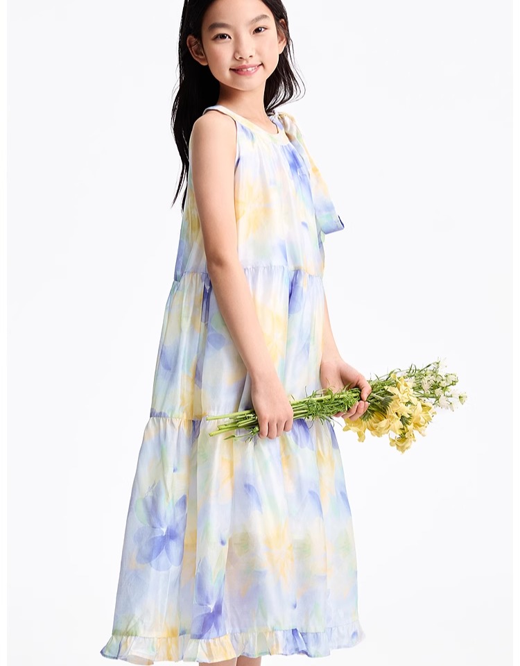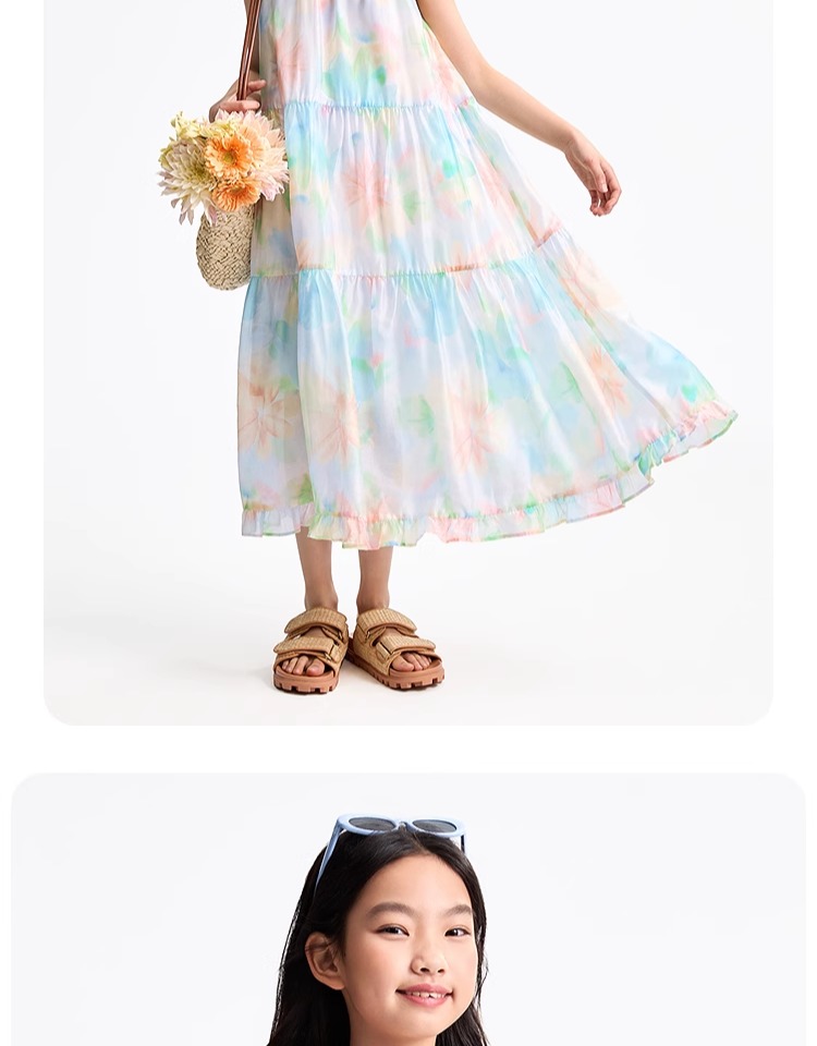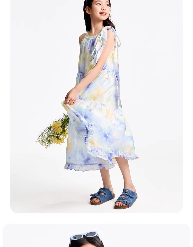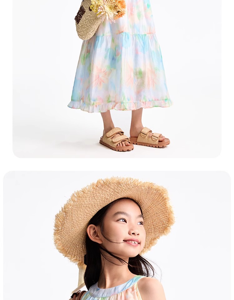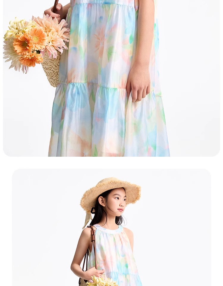 安奈兒童裝女童無袖連衣裙2025夏新款仙女風裙子甜美多彩背心裙