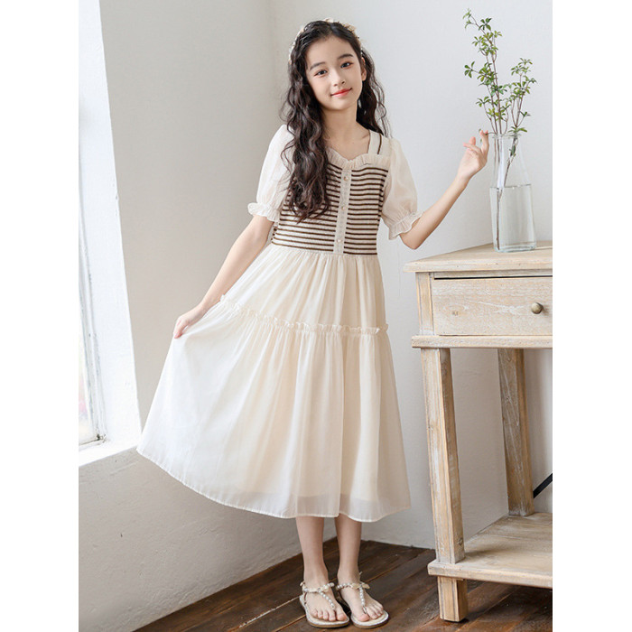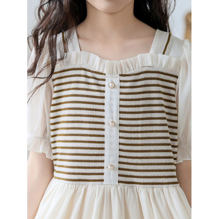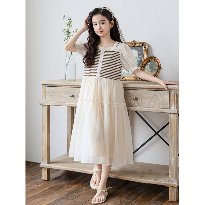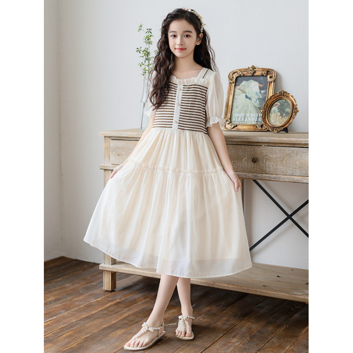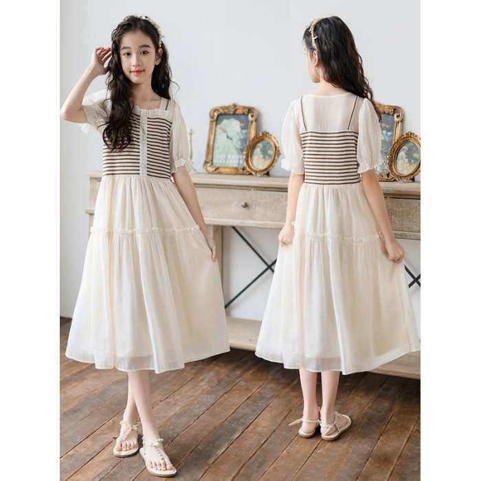 女童連衣裙夏裝2025新款洋氣中大童夏季假兩件短袖公主裙子初中生