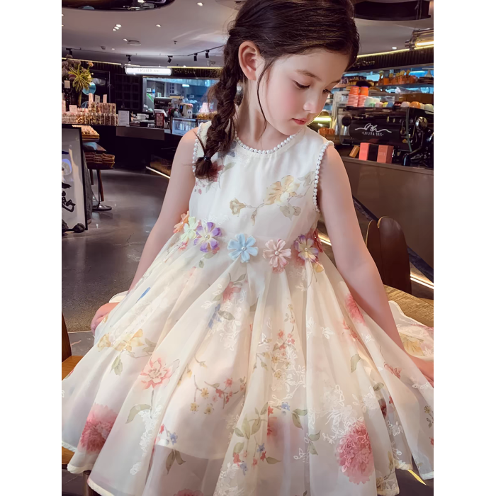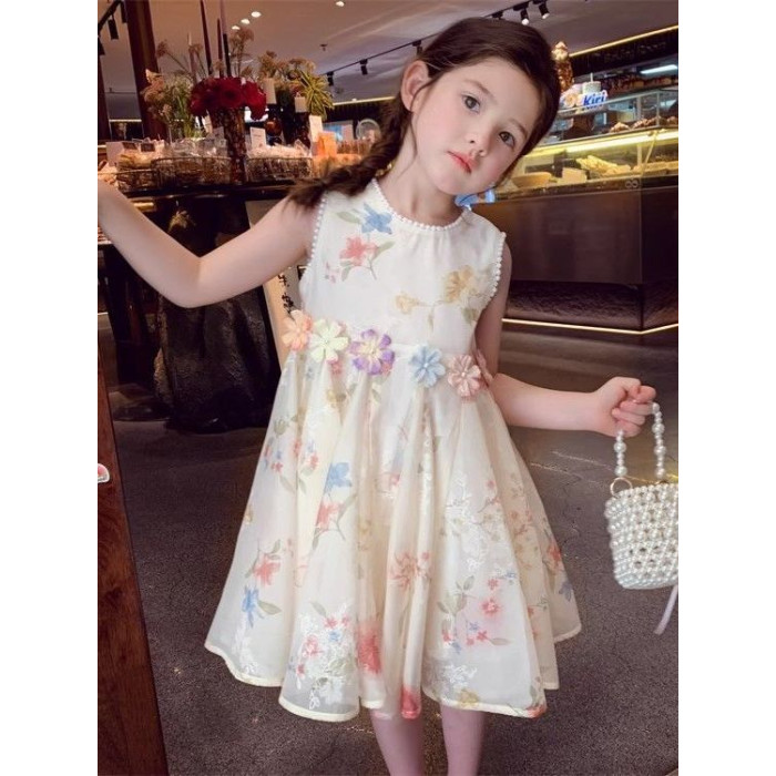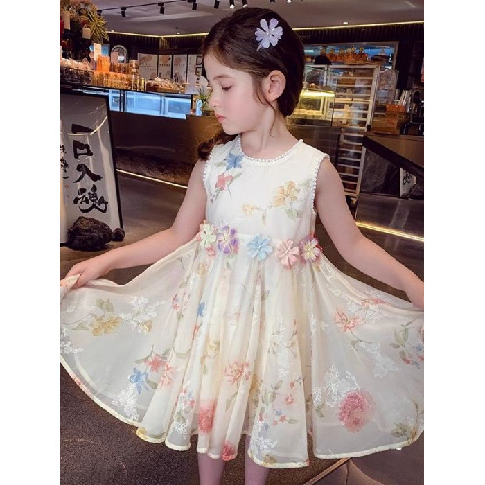 女童連衣裙夏裝2025新款洋氣兒童裙子夏季童裝小女孩碎花背心裙