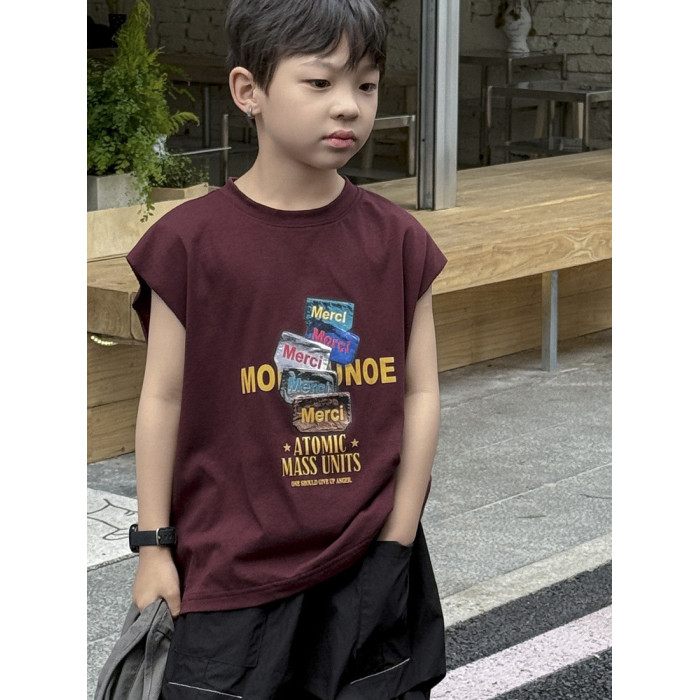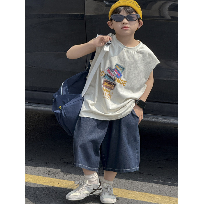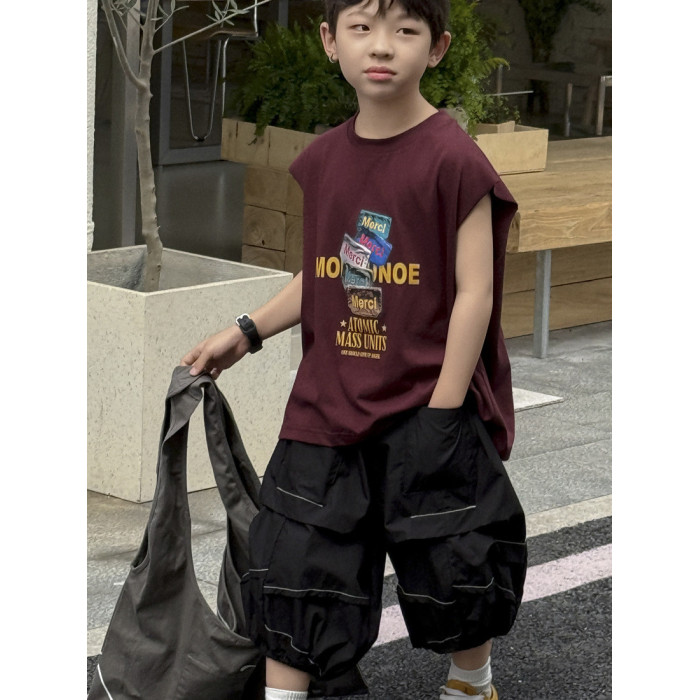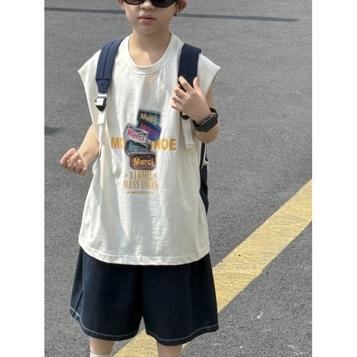 男童無袖短袖夏季2025新款痞帥兒童背心薄款中大童夏裝男孩T恤潮