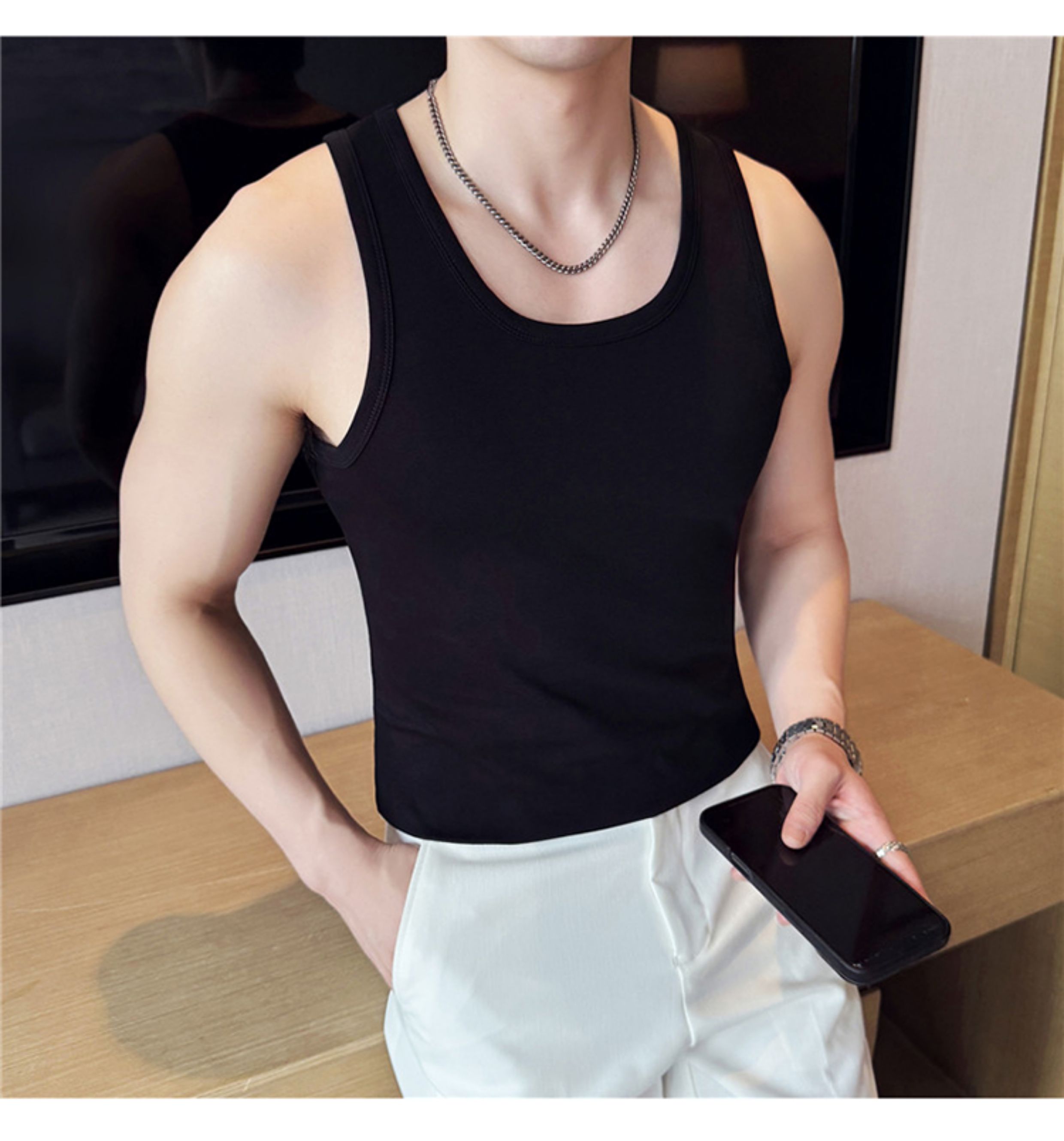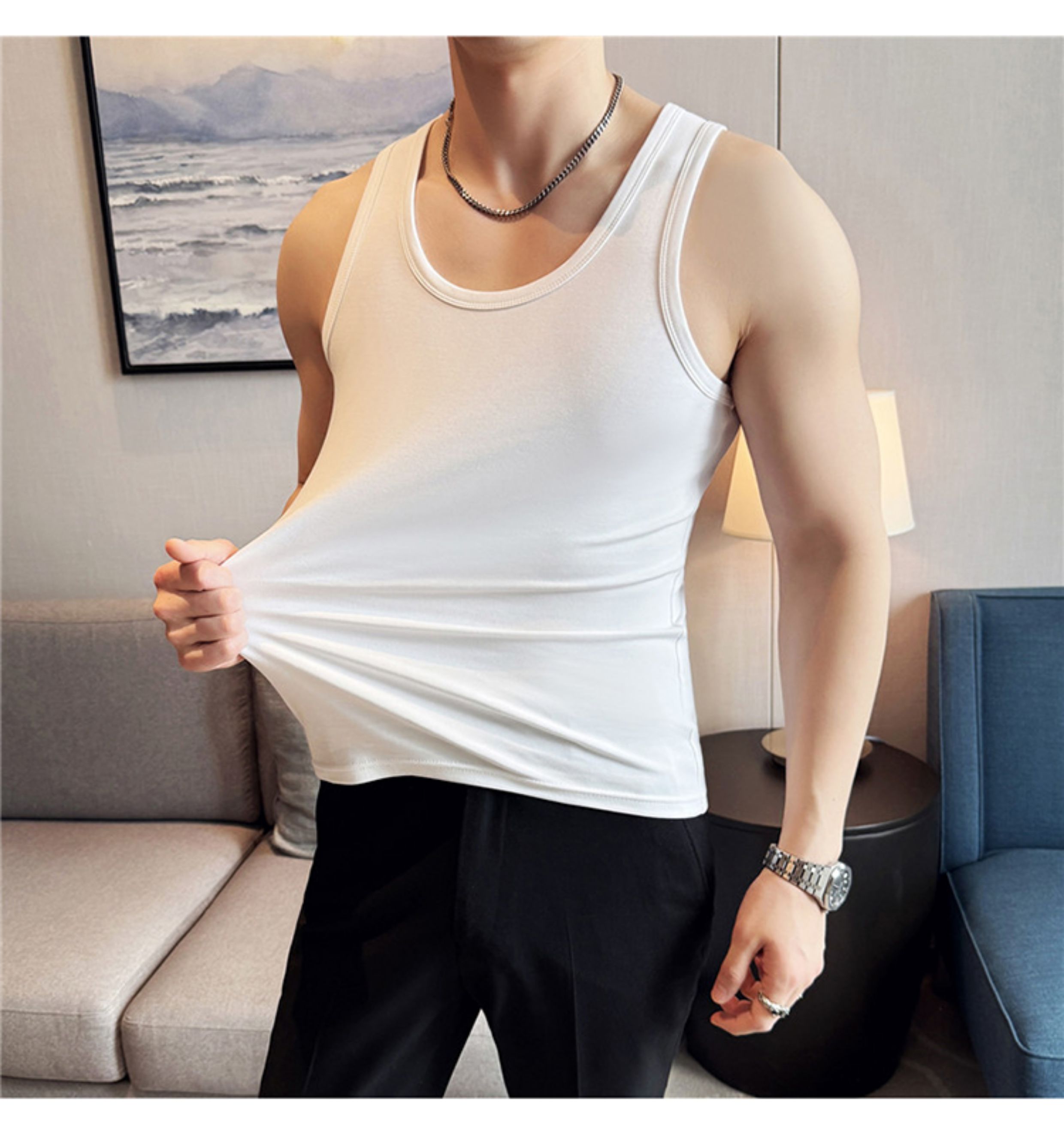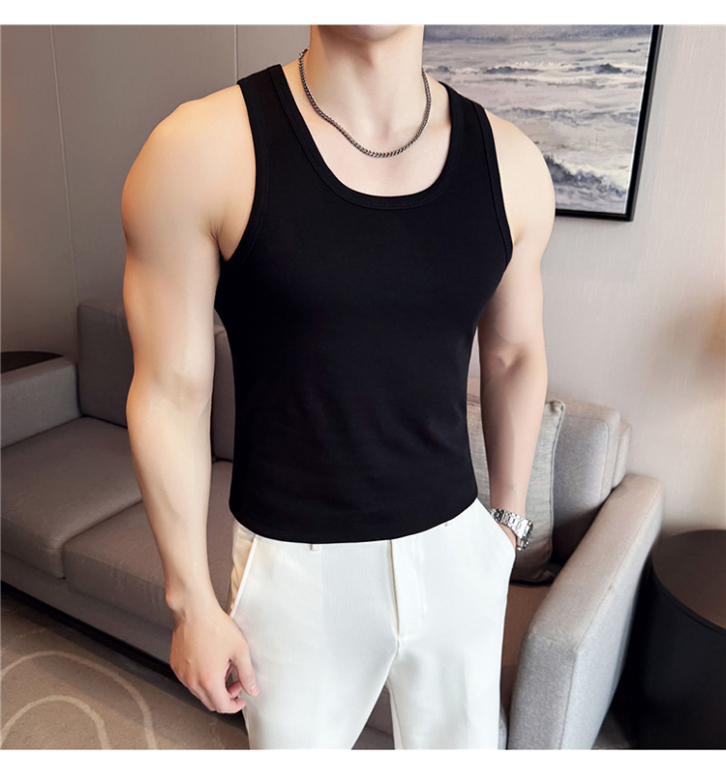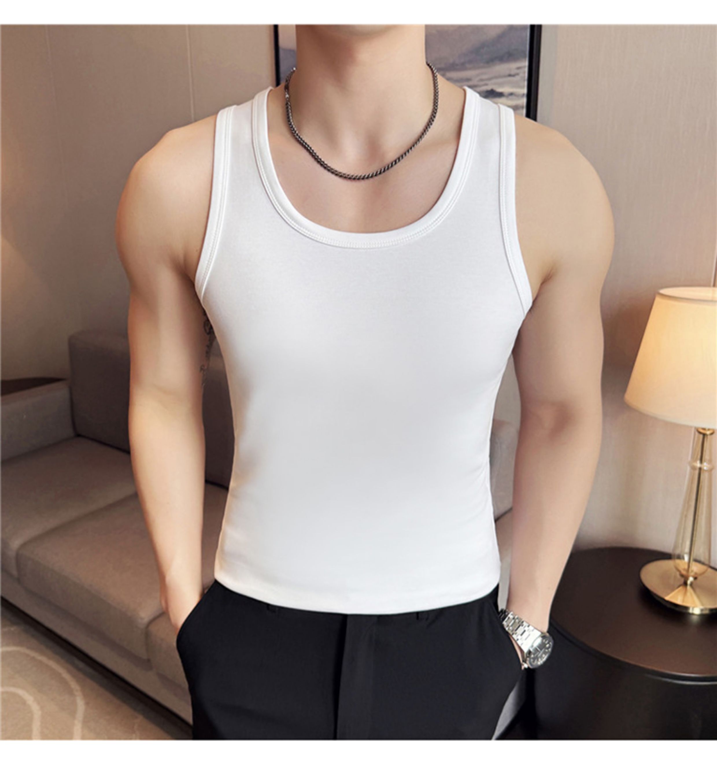 新疆長絨棉男士背心白色內搭純棉粗螺紋打底夏季男款運動健身汗衫