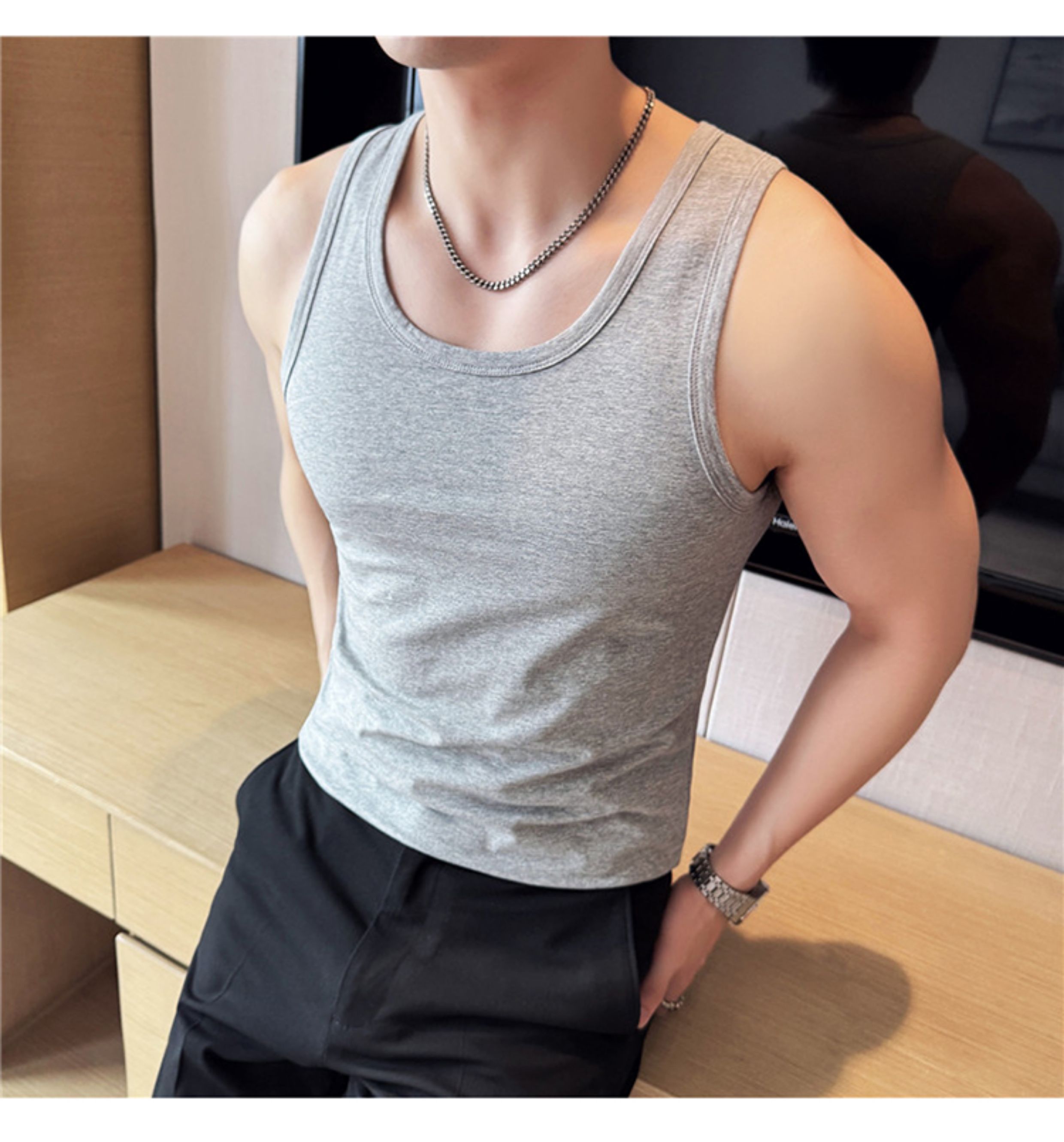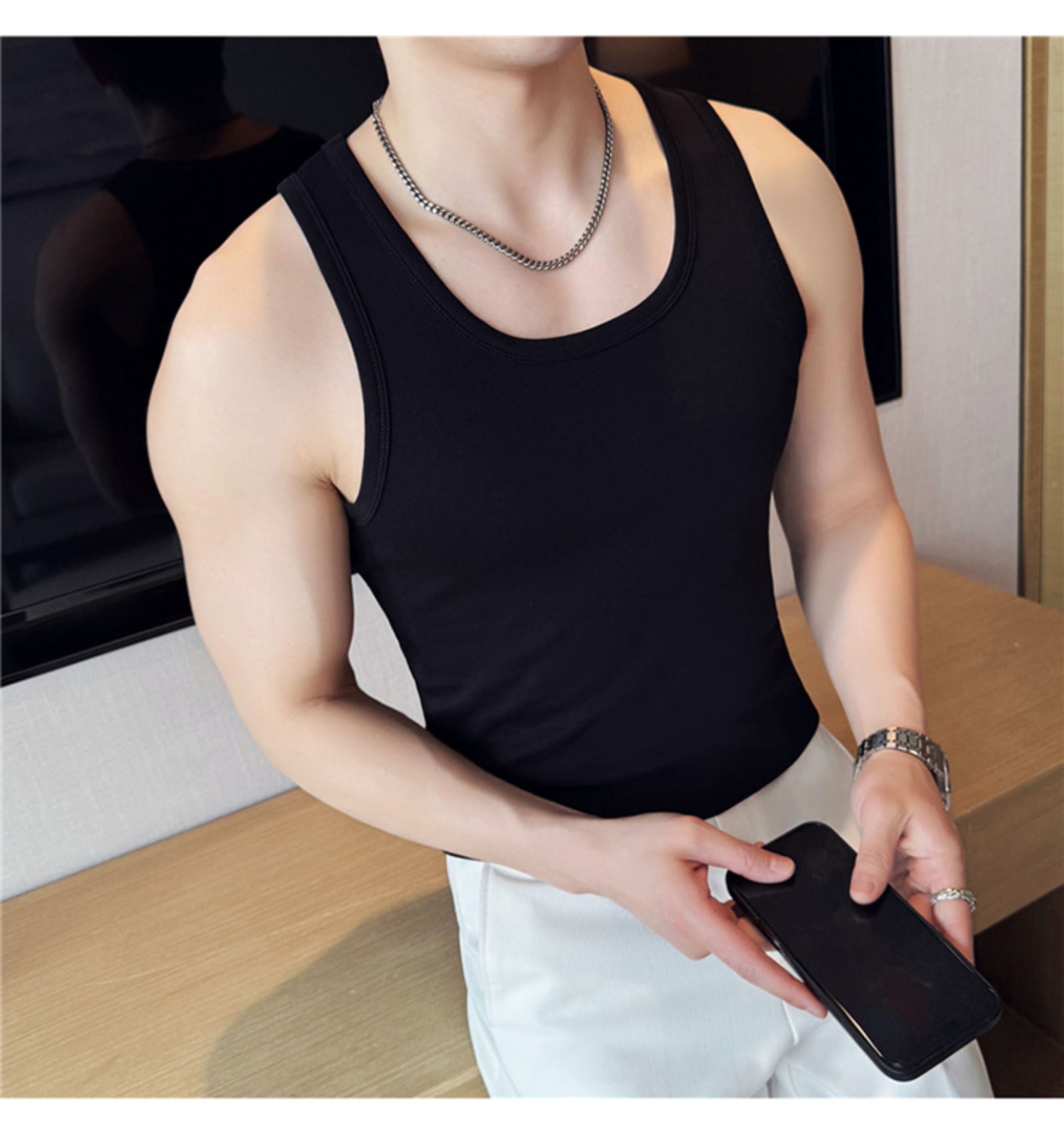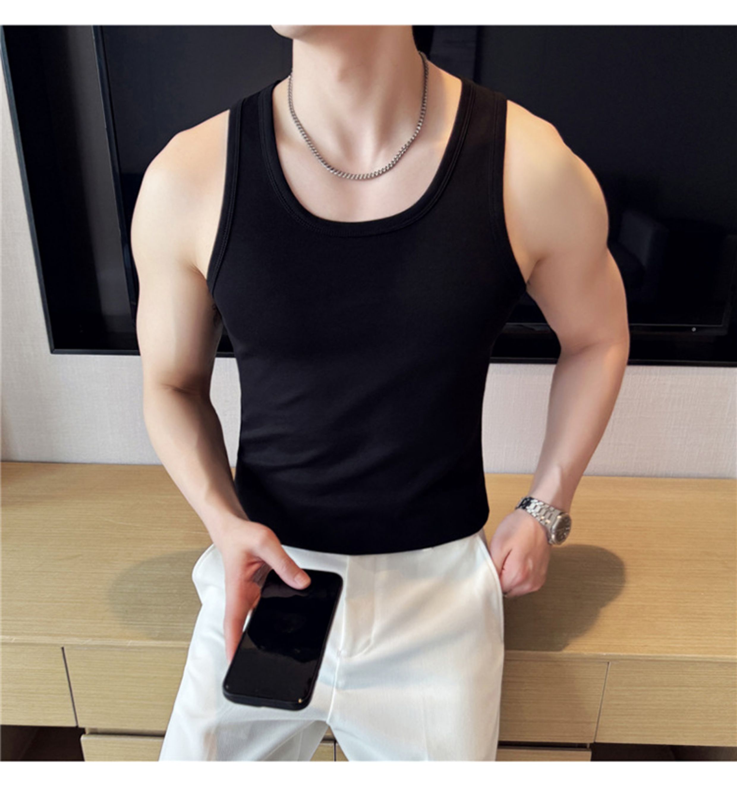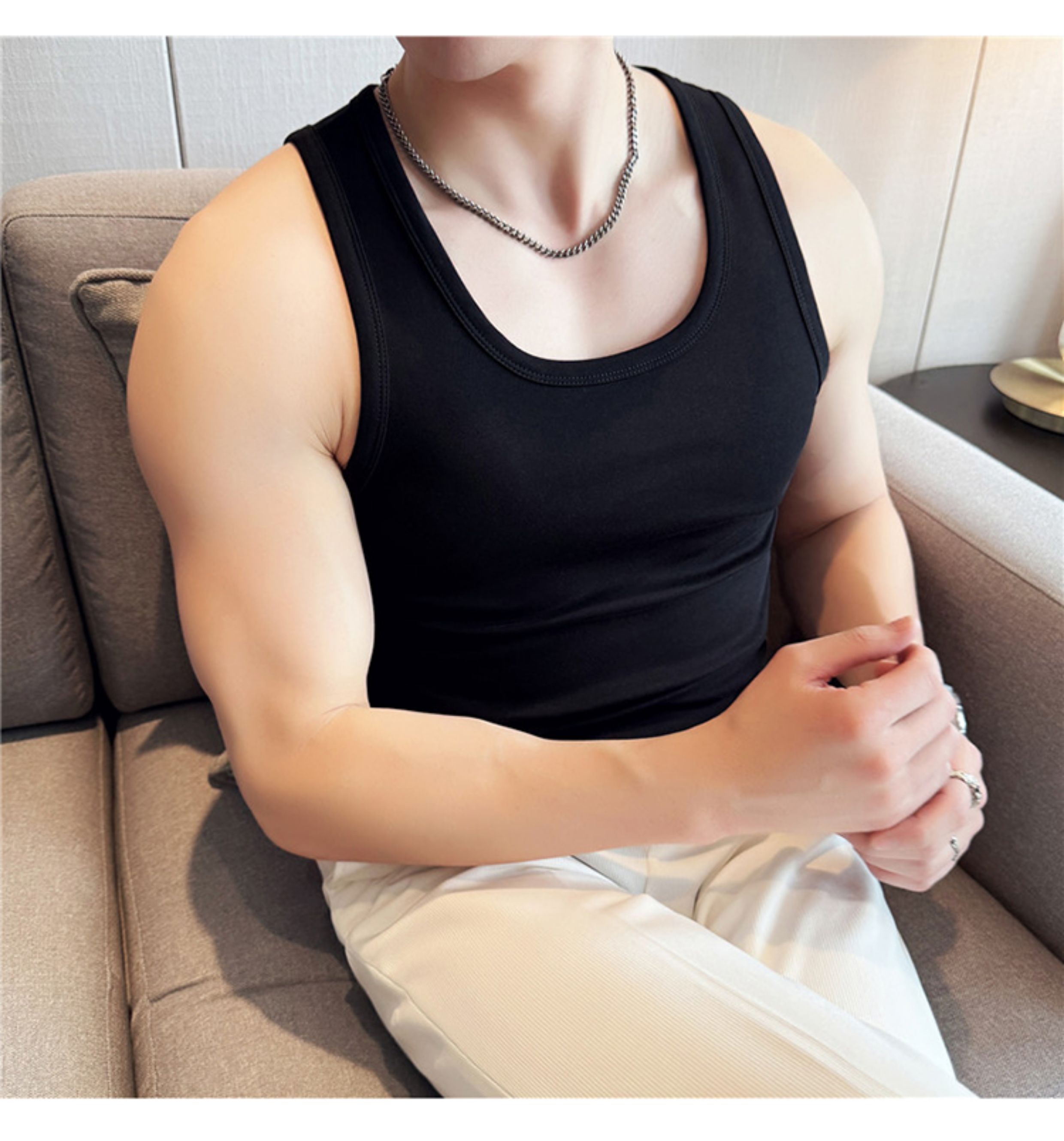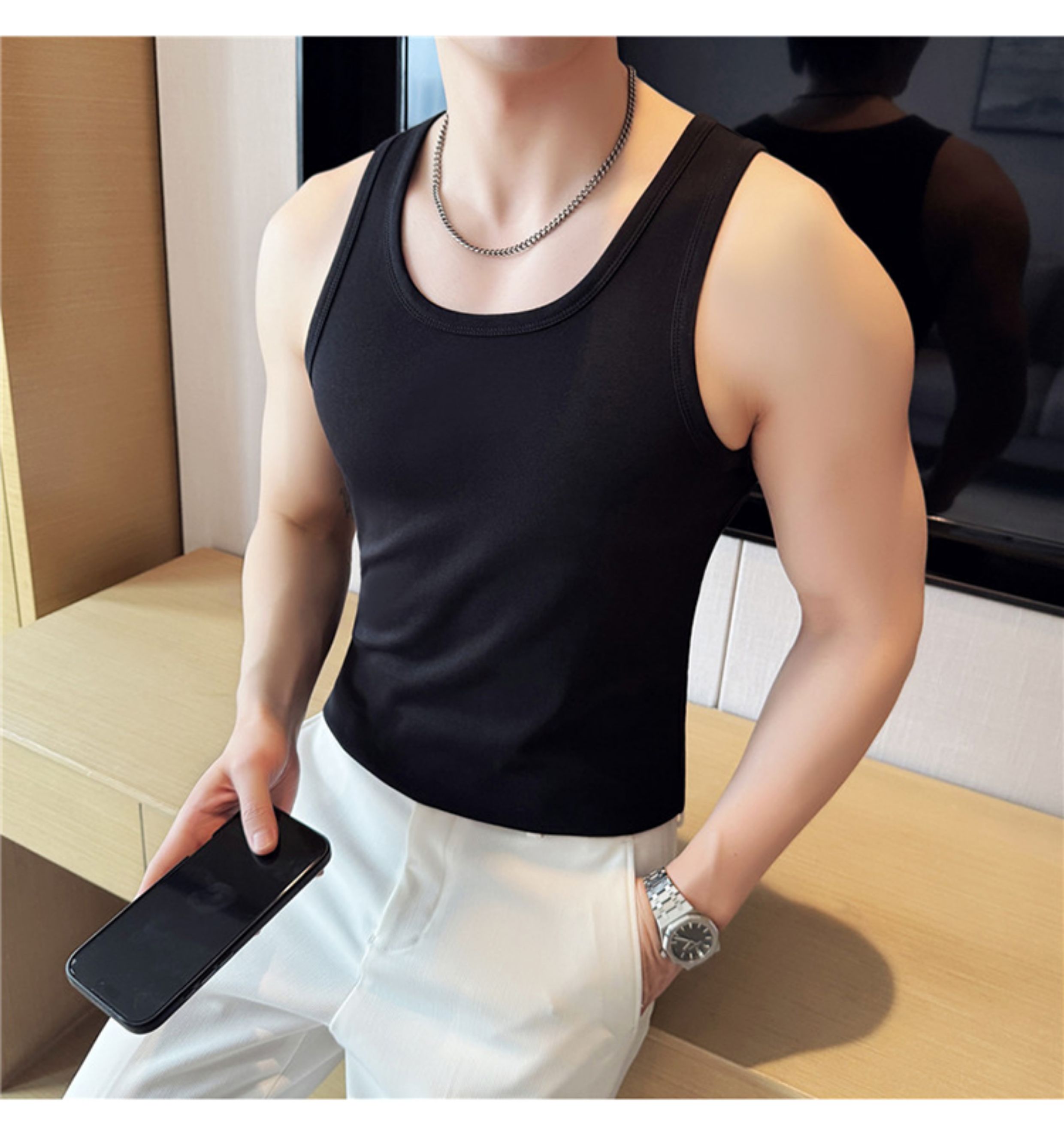 新疆長絨棉男士背心白色內搭純棉粗螺紋打底夏季男款運動健身汗衫