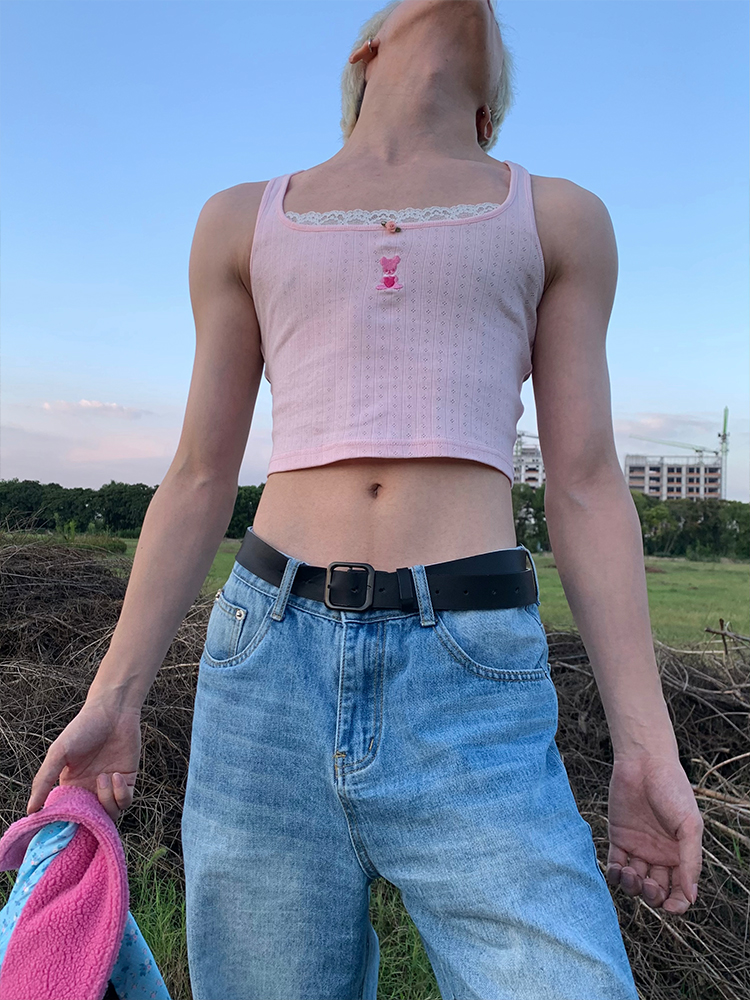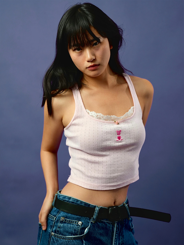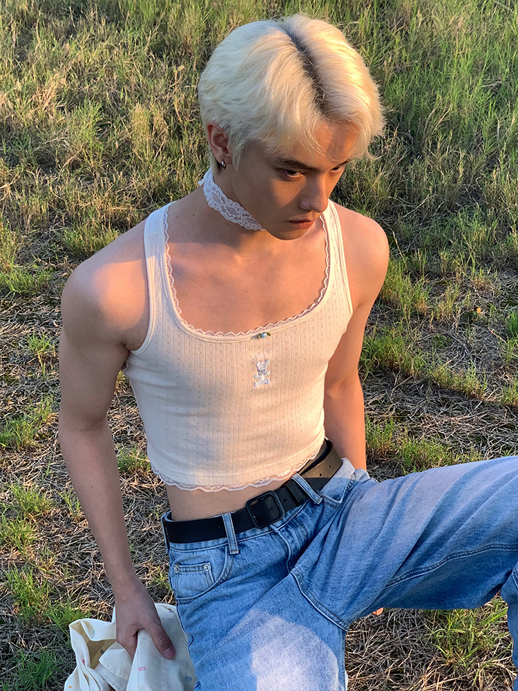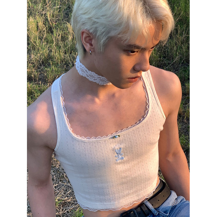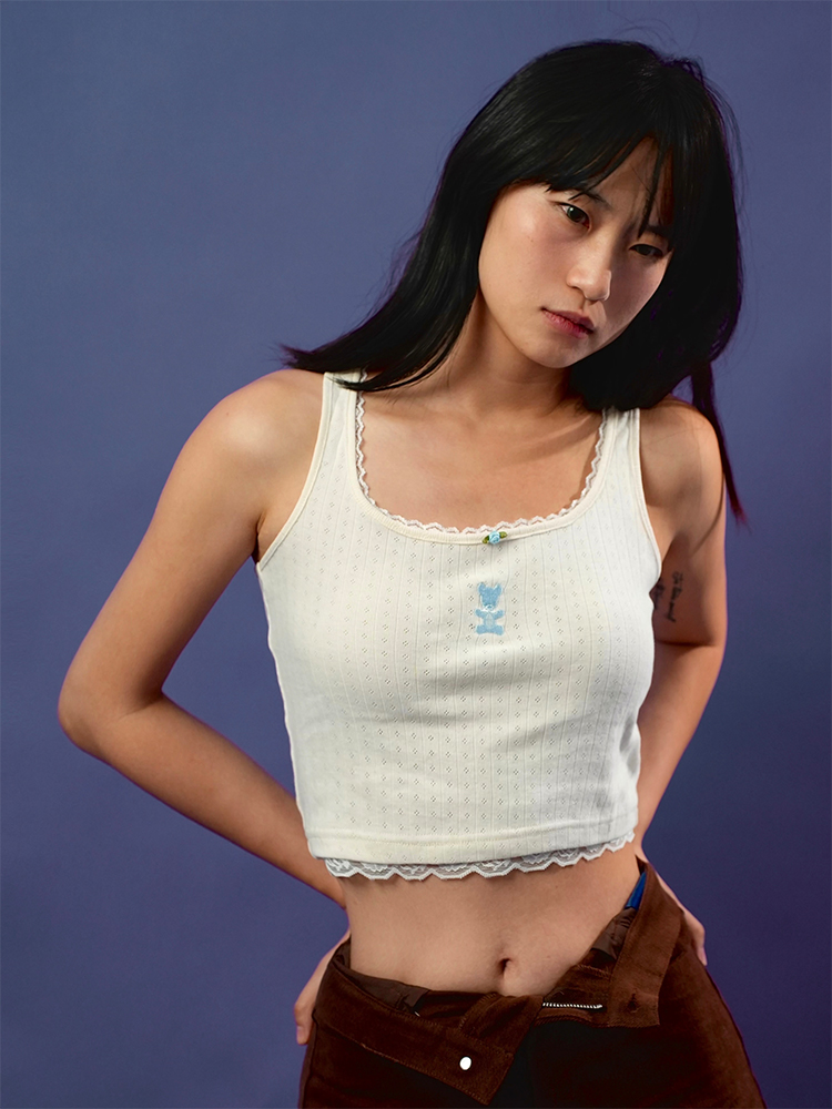 MamaHasGun×BMAL純棉復古Real&Fake蕾絲刺綉吊帶背心上衣