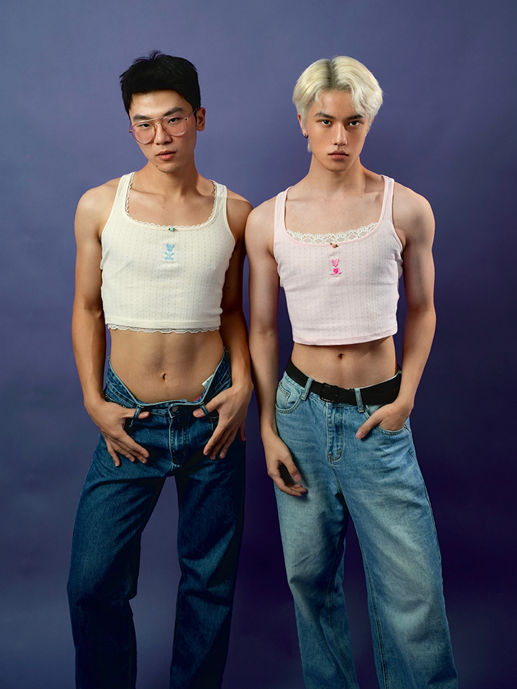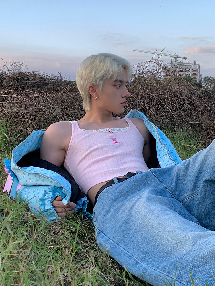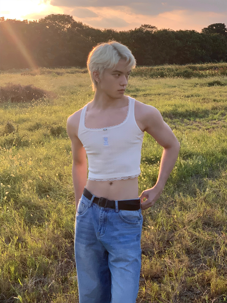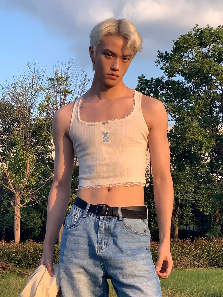MamaHasGun×BMAL純棉復古Real&Fake蕾絲刺綉吊帶背心上衣