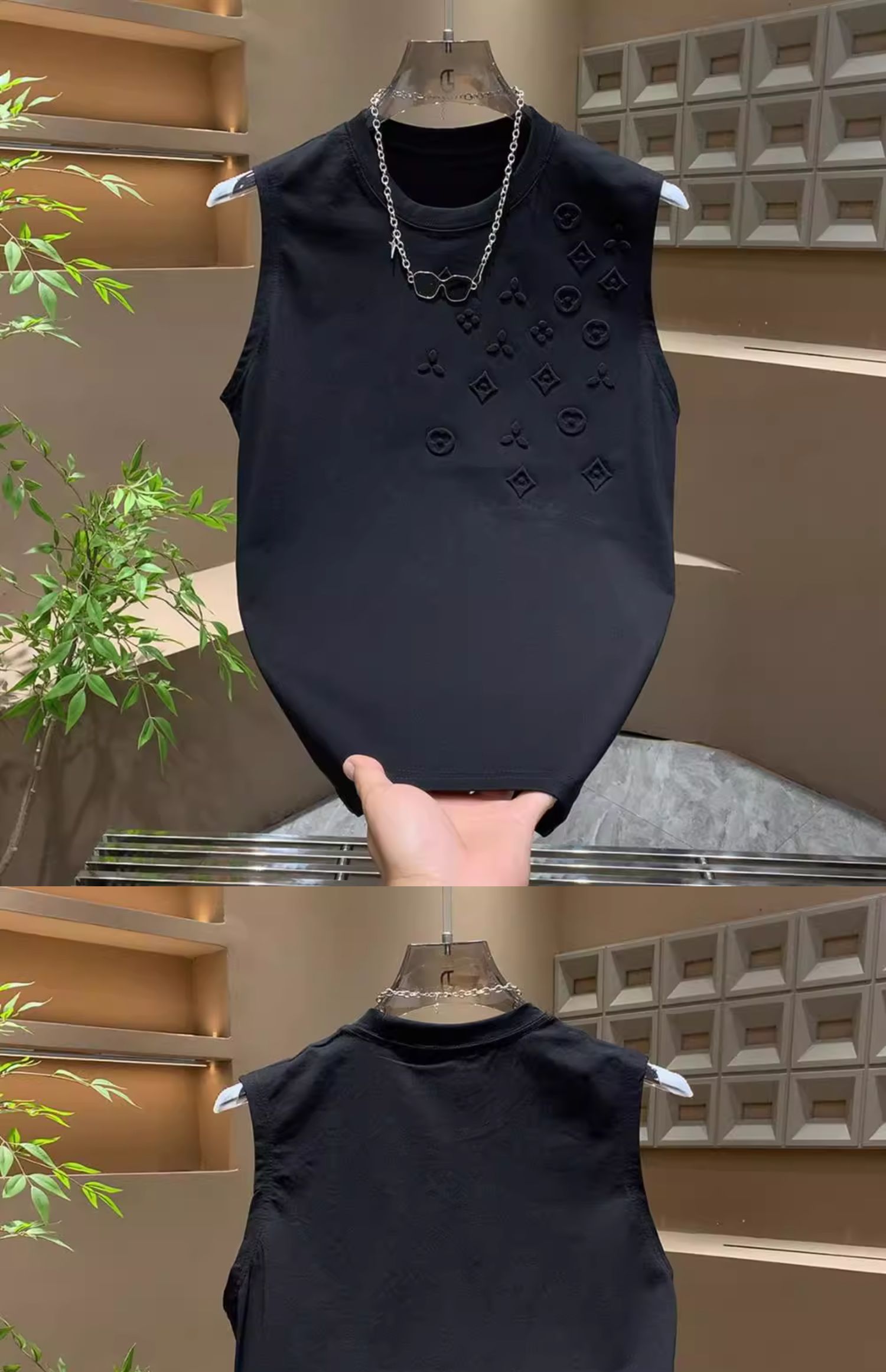 高級男士紅色背心無袖T恤2025新款夏季歐貨潮牌運動休閒坎肩男款