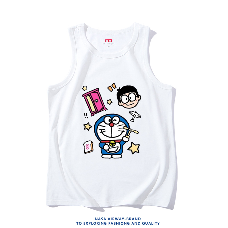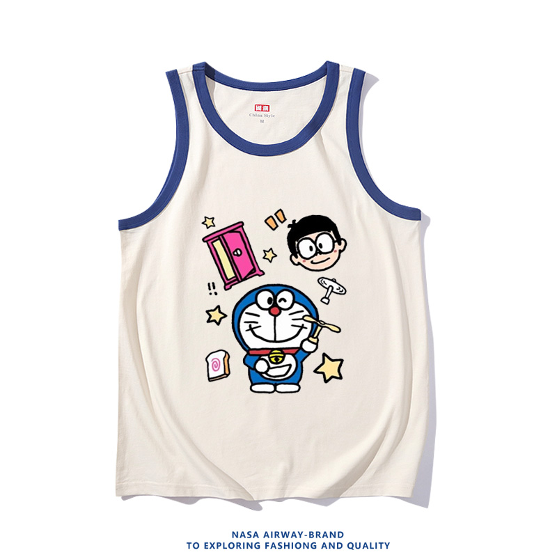 NASA美式潮牌哆啦A夢卡通復古純棉背心男女薄款寬松無袖T恤吊帶夏