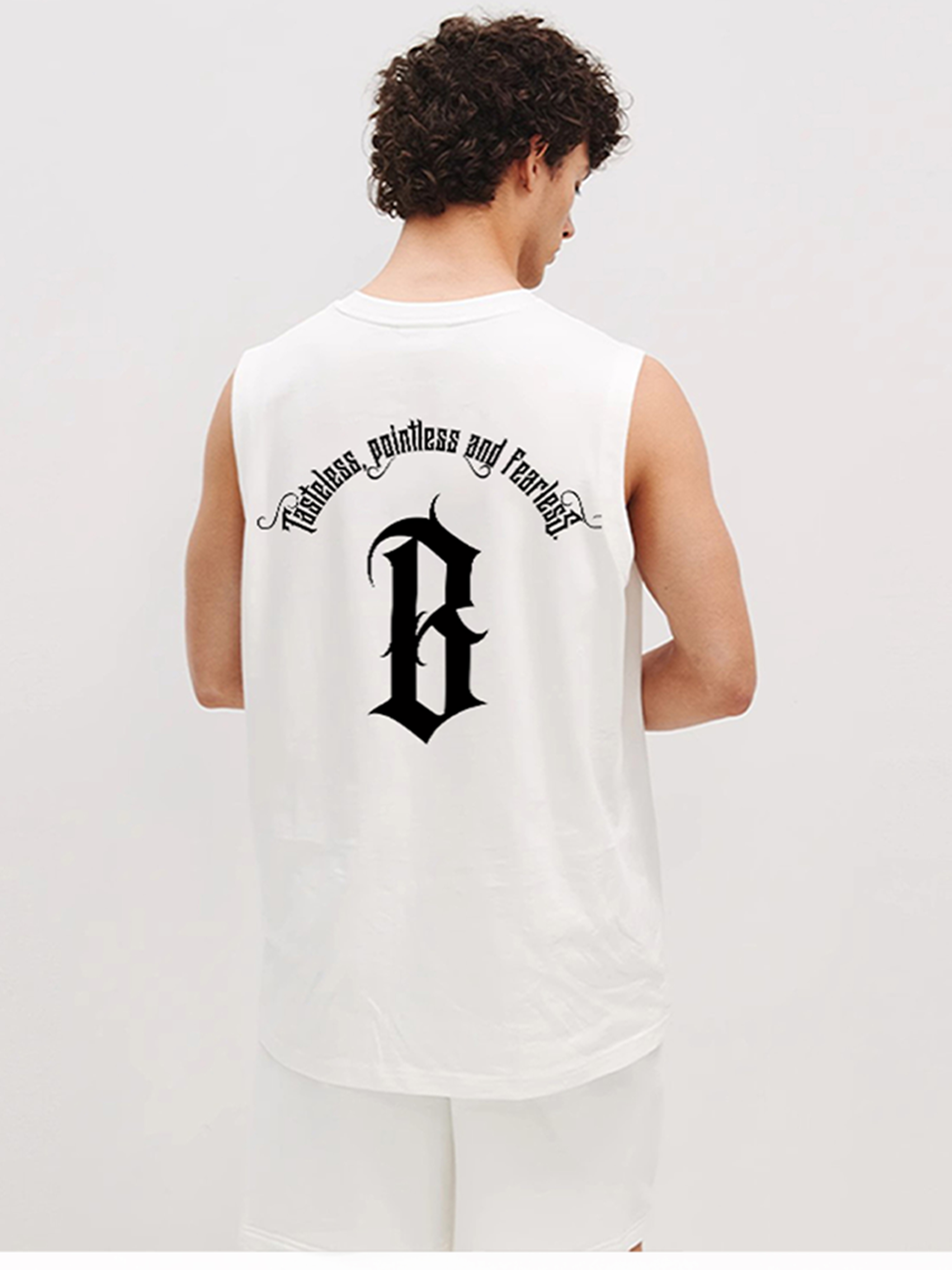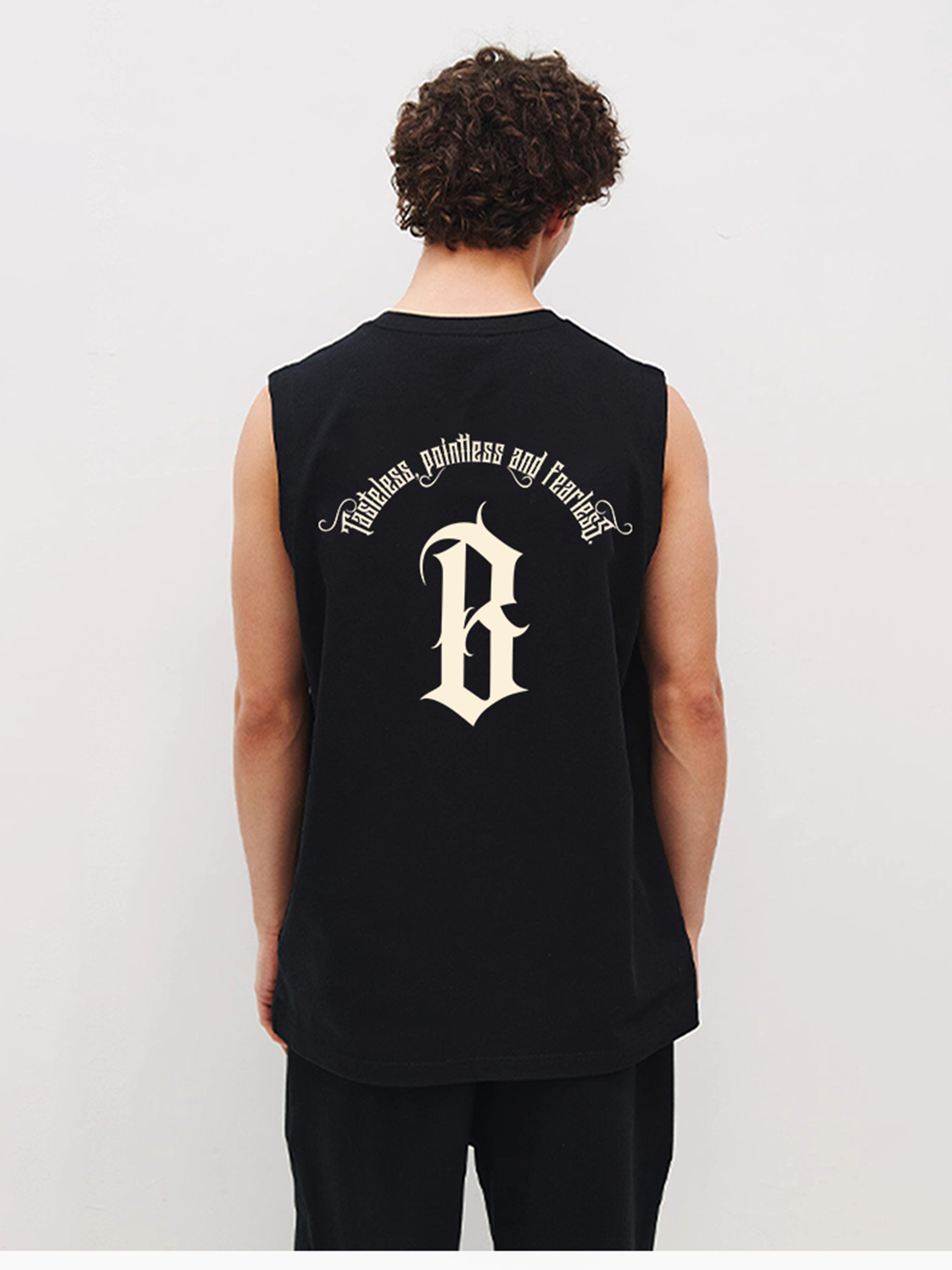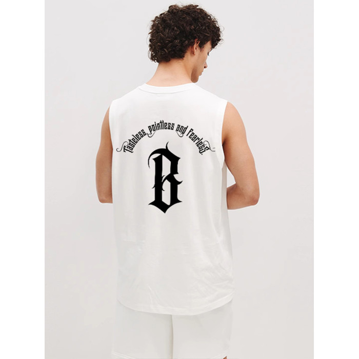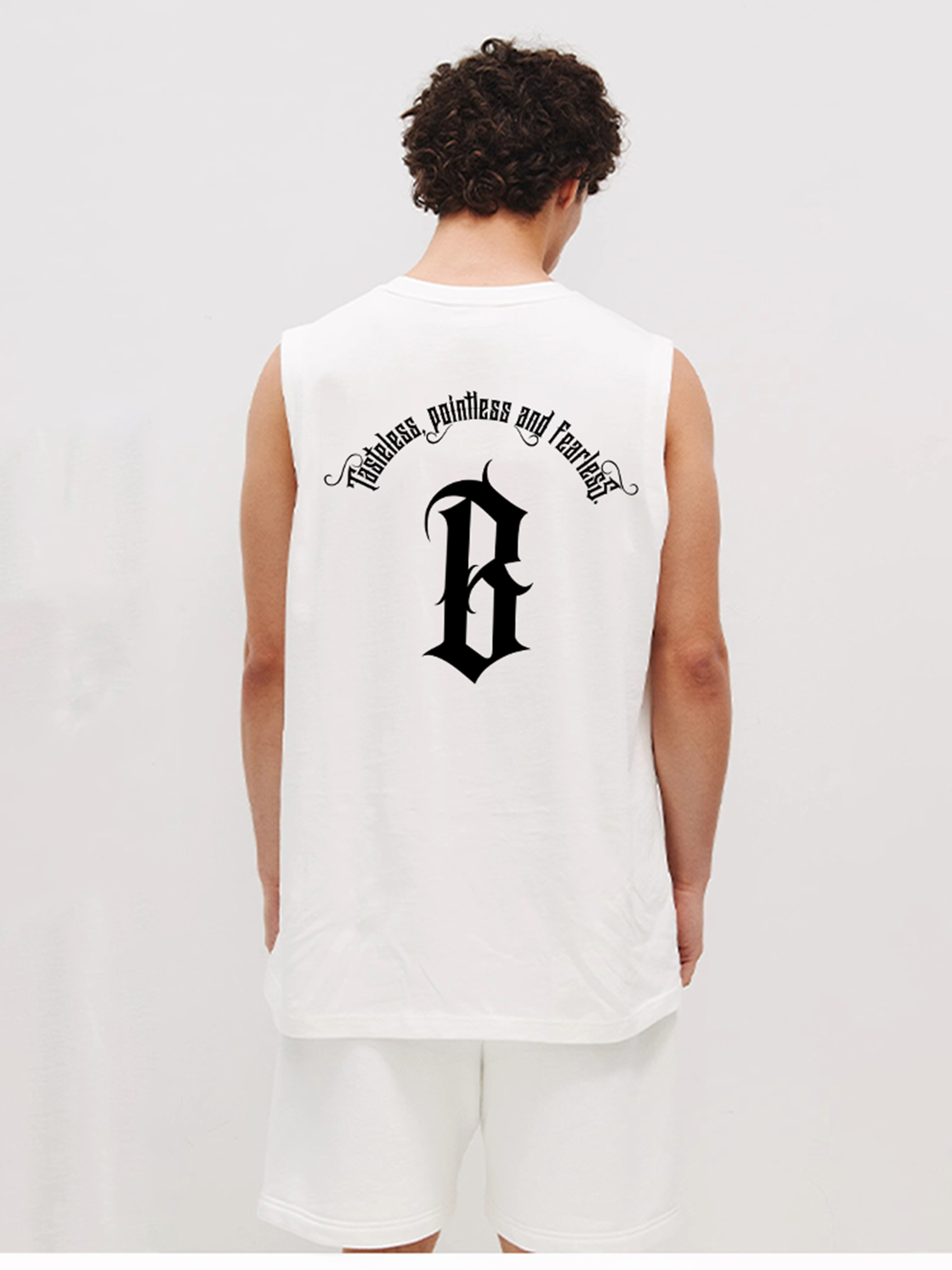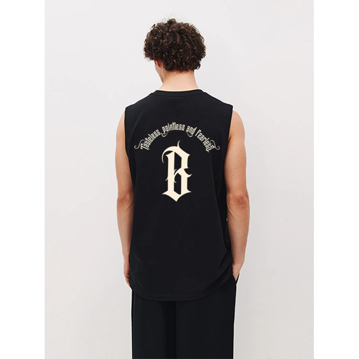 BONELESS BTW美式弧形基礎字體印花運動籃球背心潮牌無袖T恤