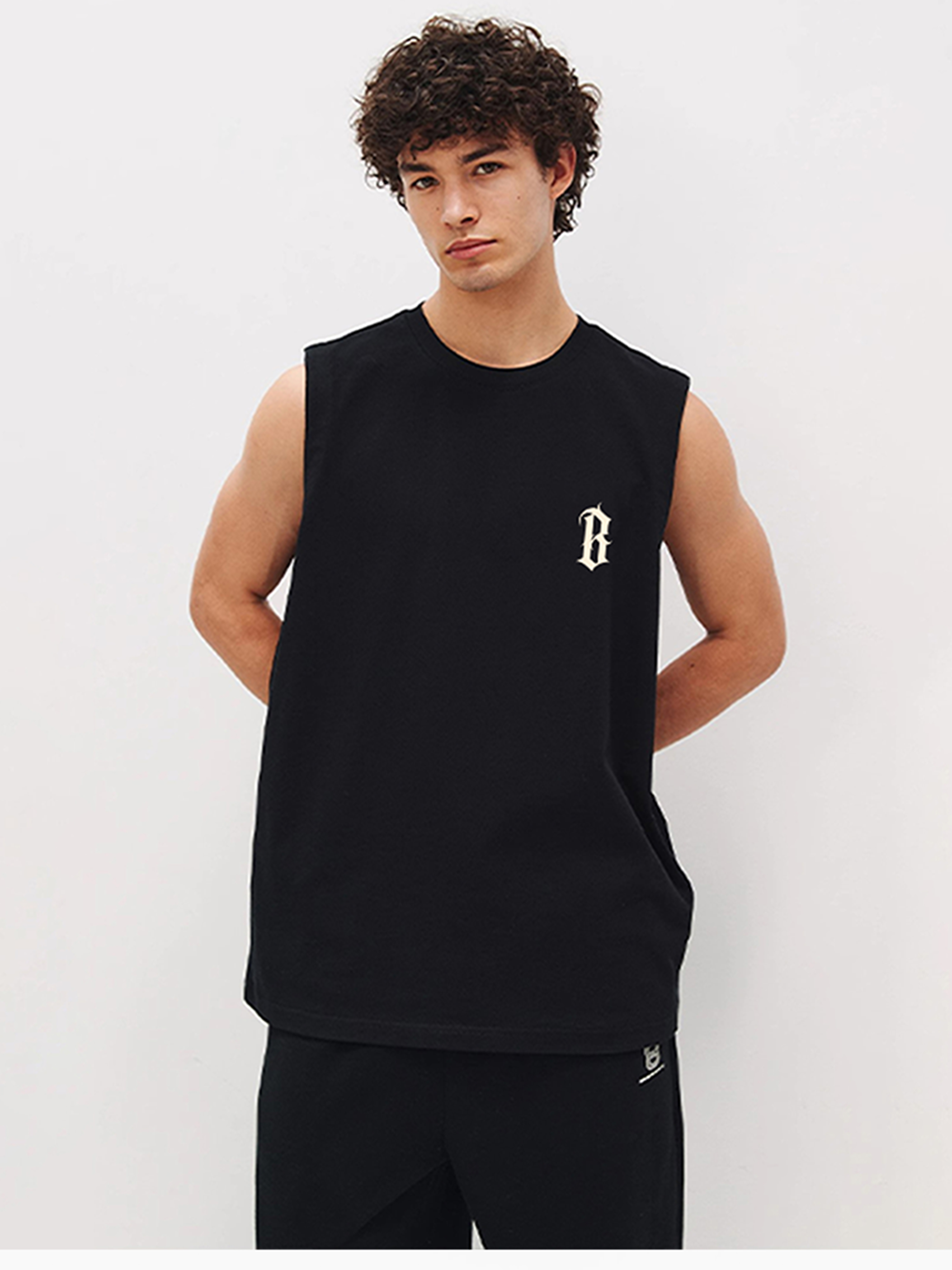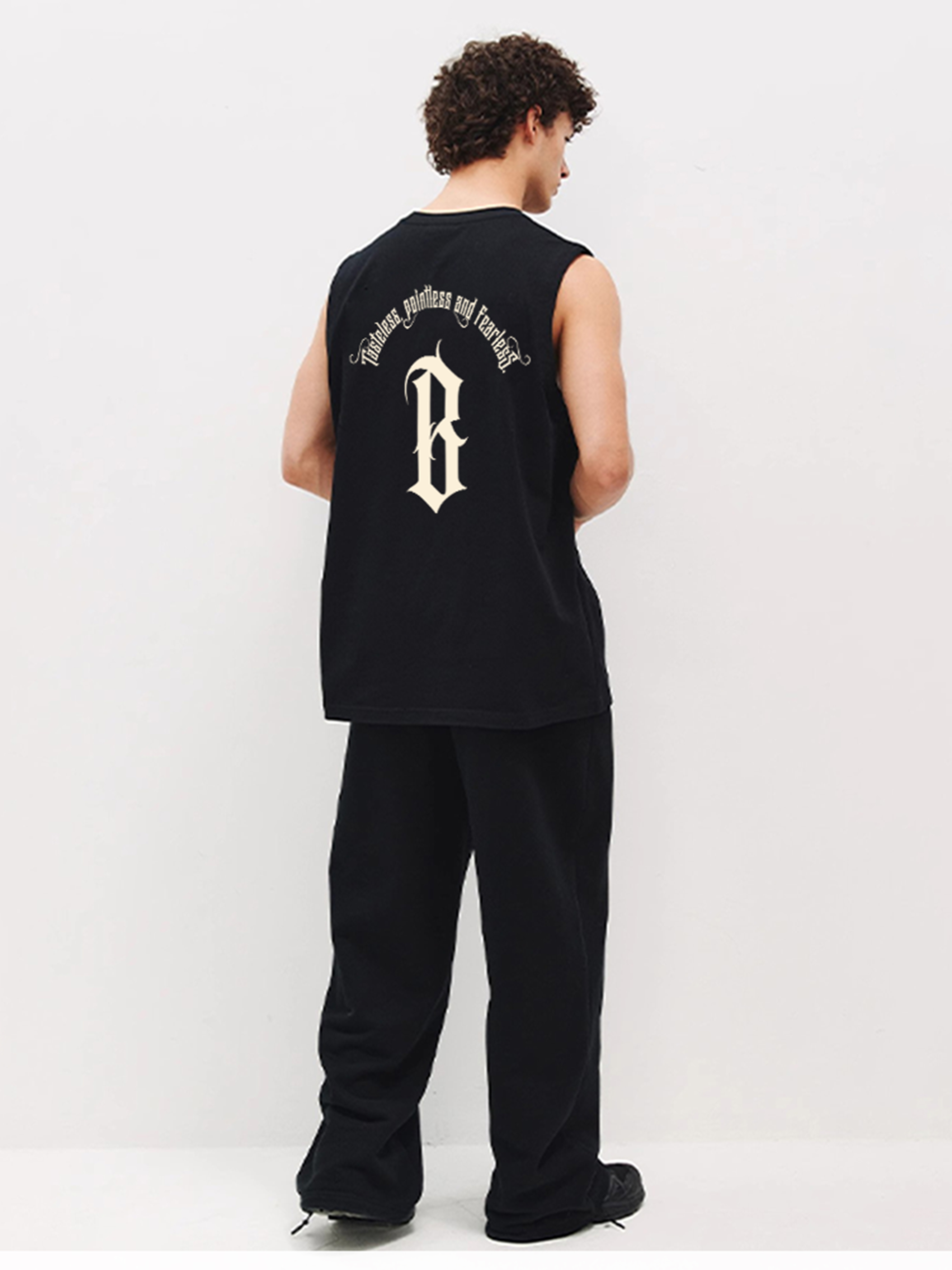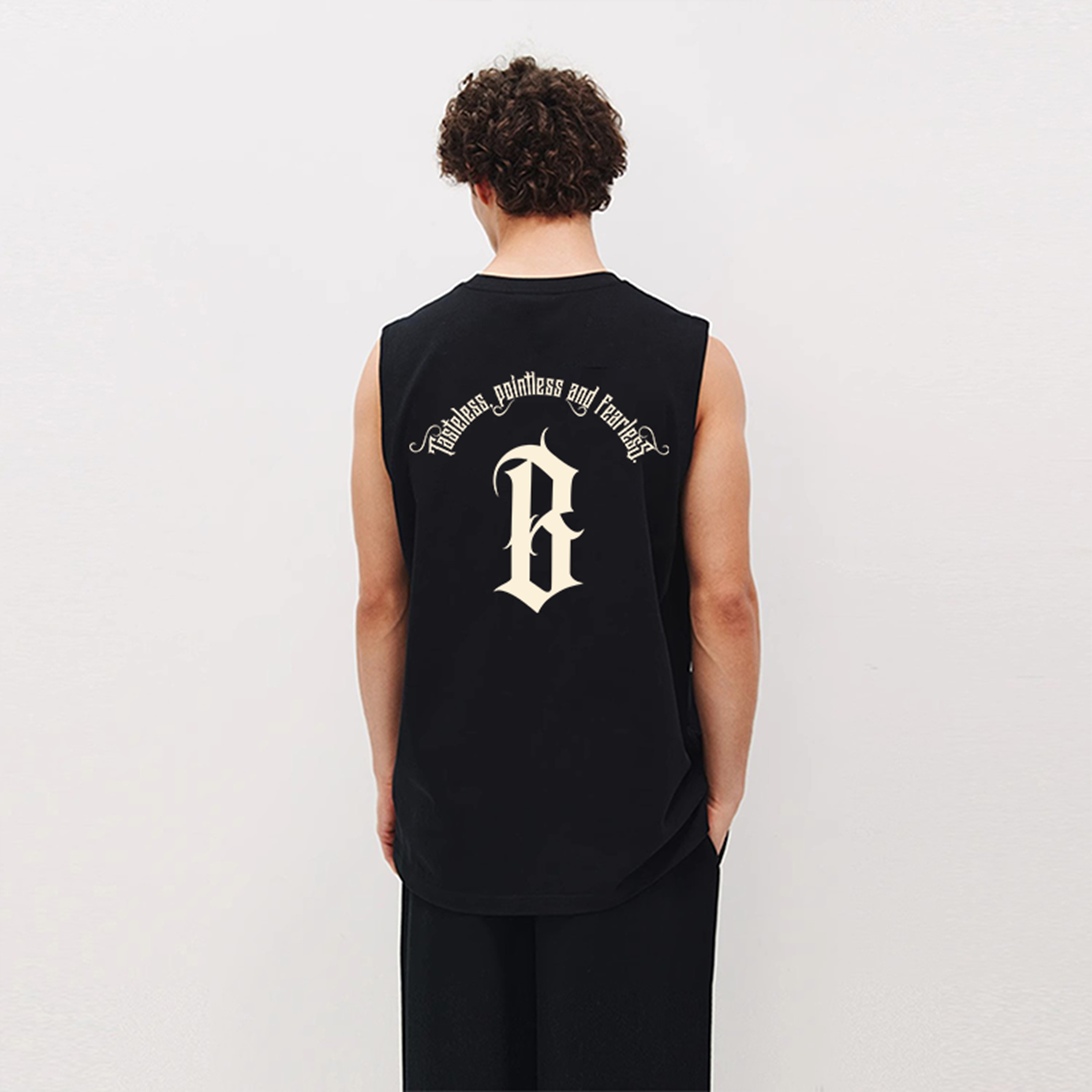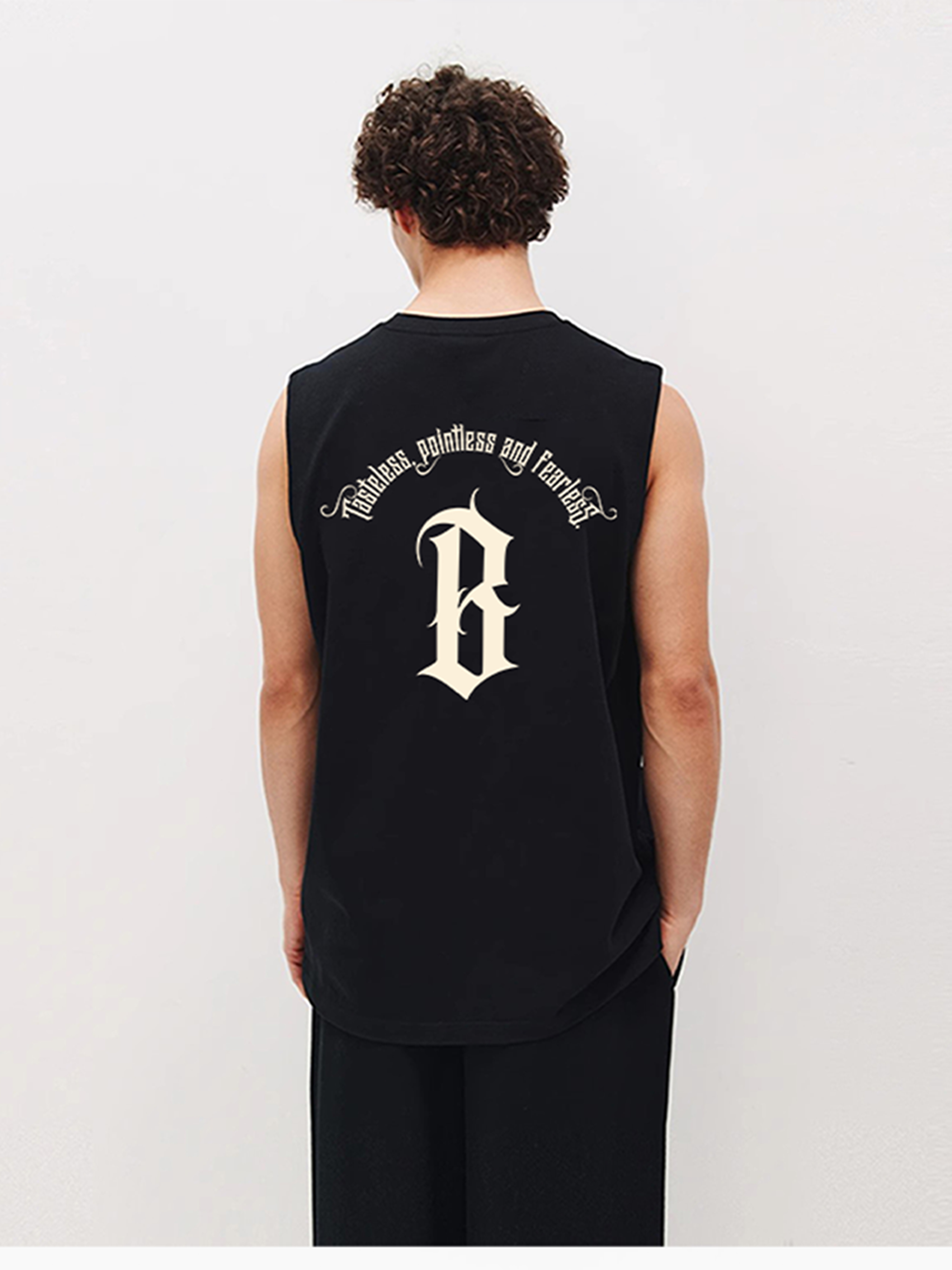 BONELESS BTW美式弧形基礎字體印花運動籃球背心潮牌無袖T恤