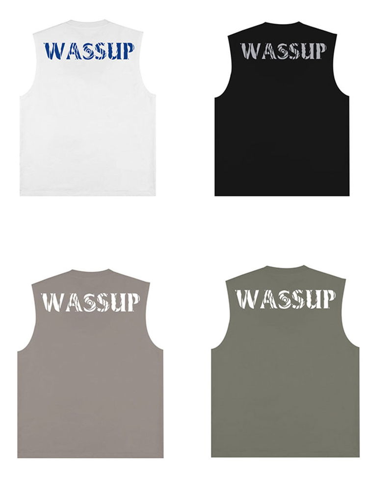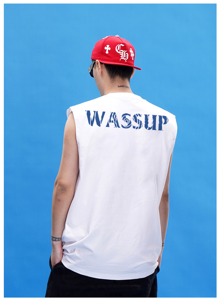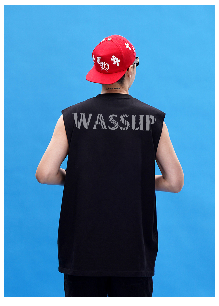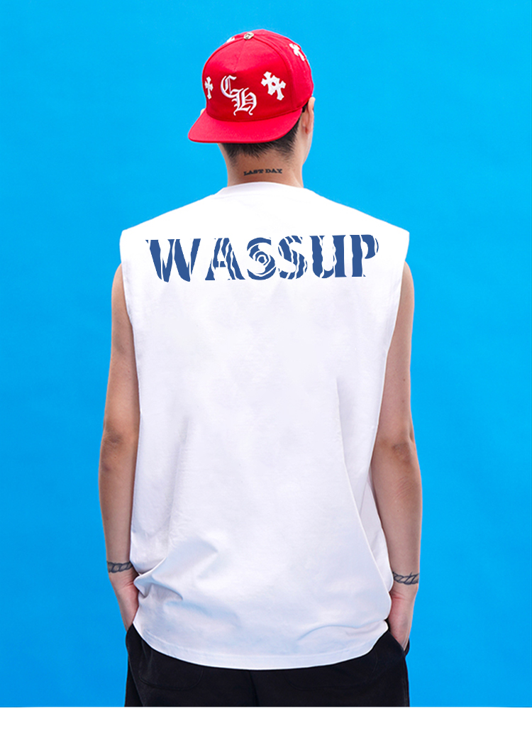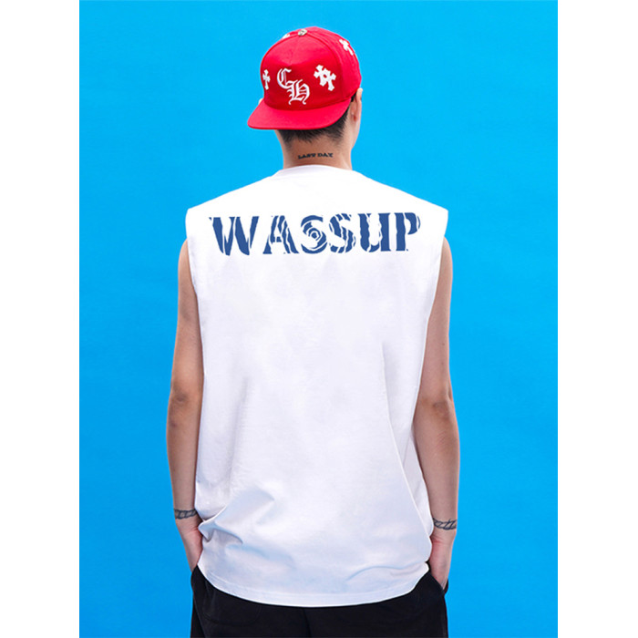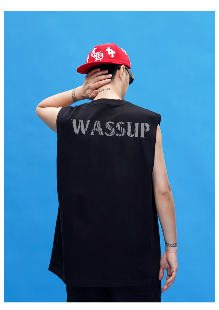 WASSUP HEODS無袖t恤背心男士夏季純棉寬松潮牌ins坎肩男生運動