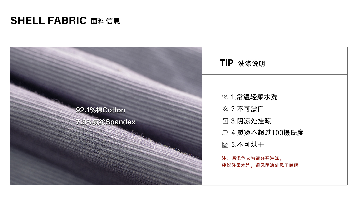 材質成分 | 棉92.1% 聚氨酯彈性纖維(氨綸)7.9% |