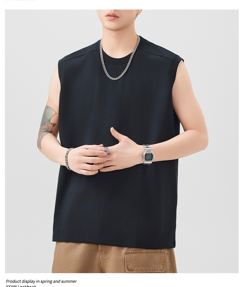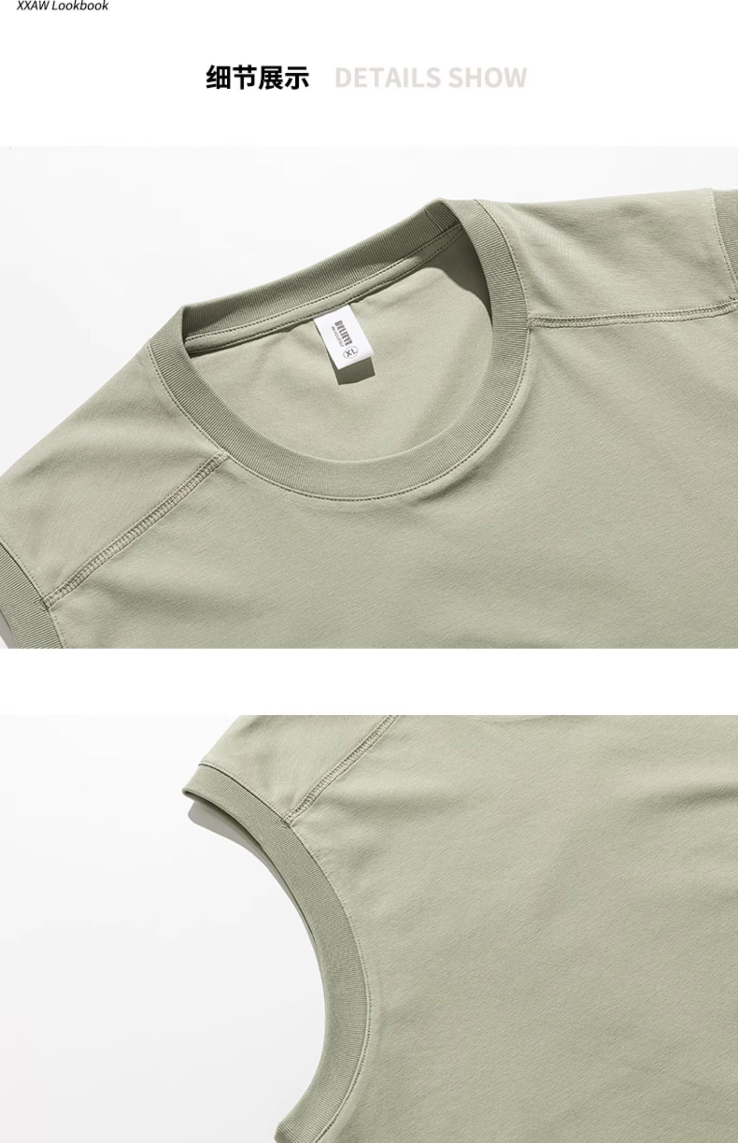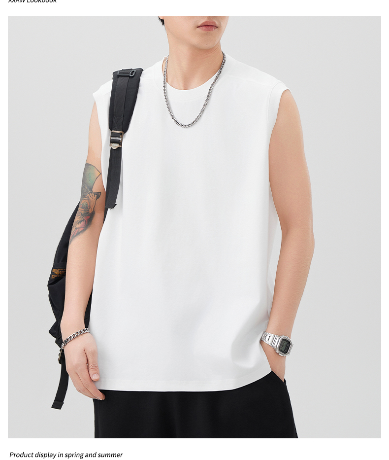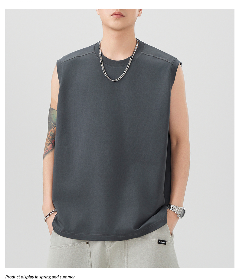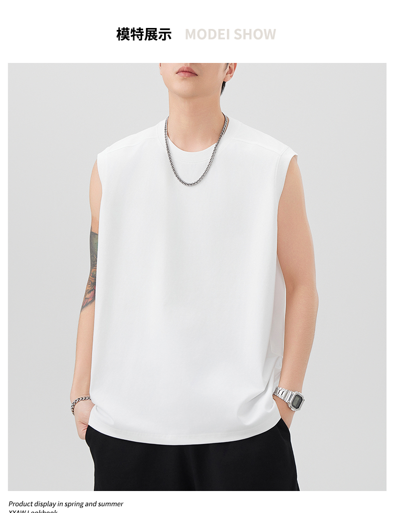 2025夏季降溫速乾坎肩背心男士寬松百搭運動圓領純色無袖上衣T恤
