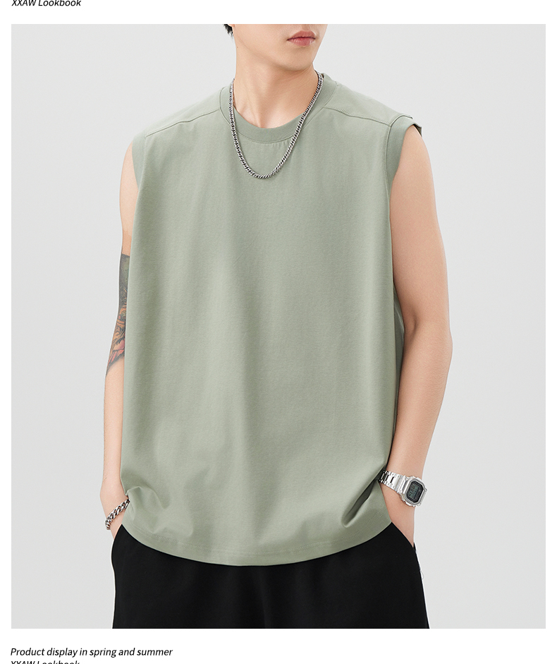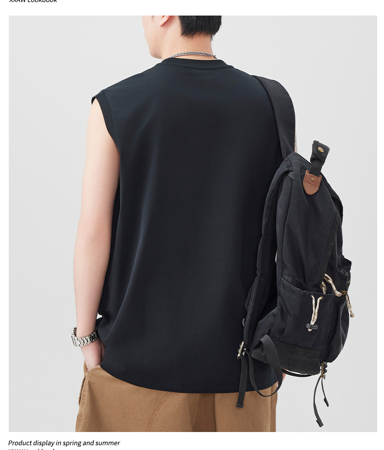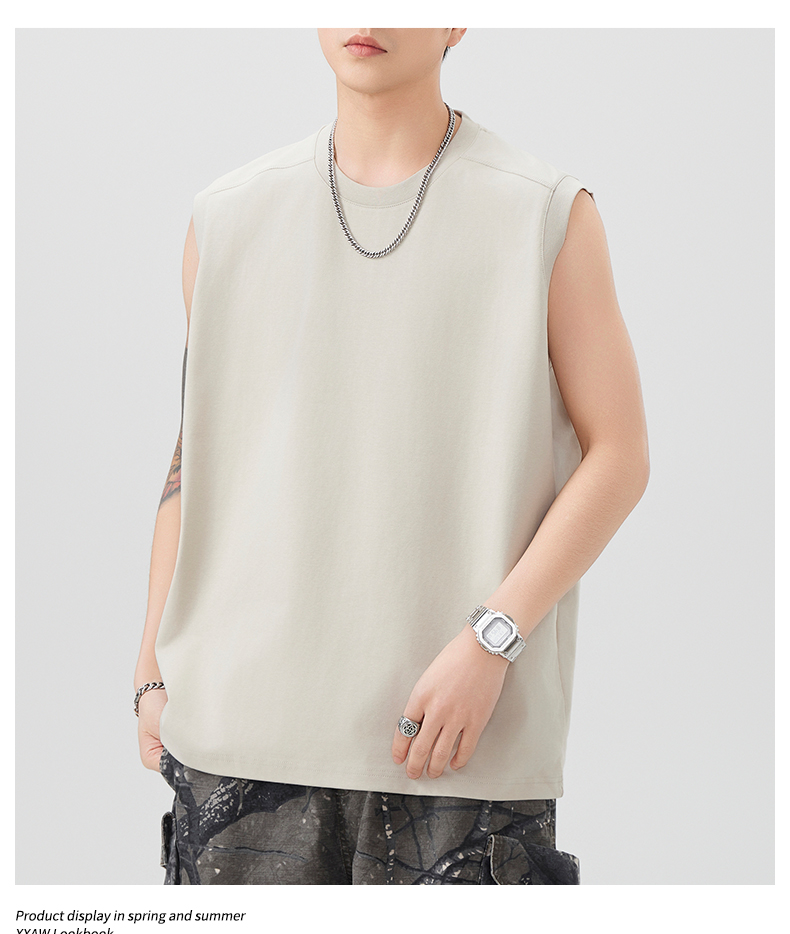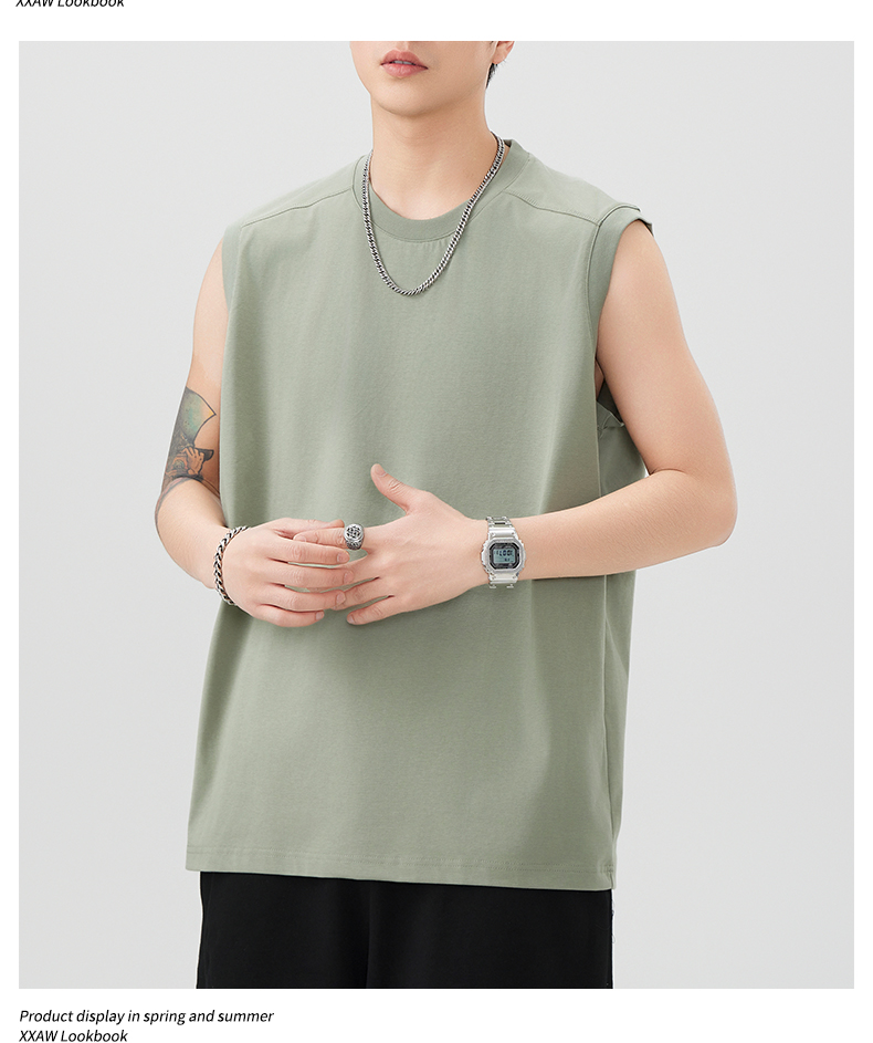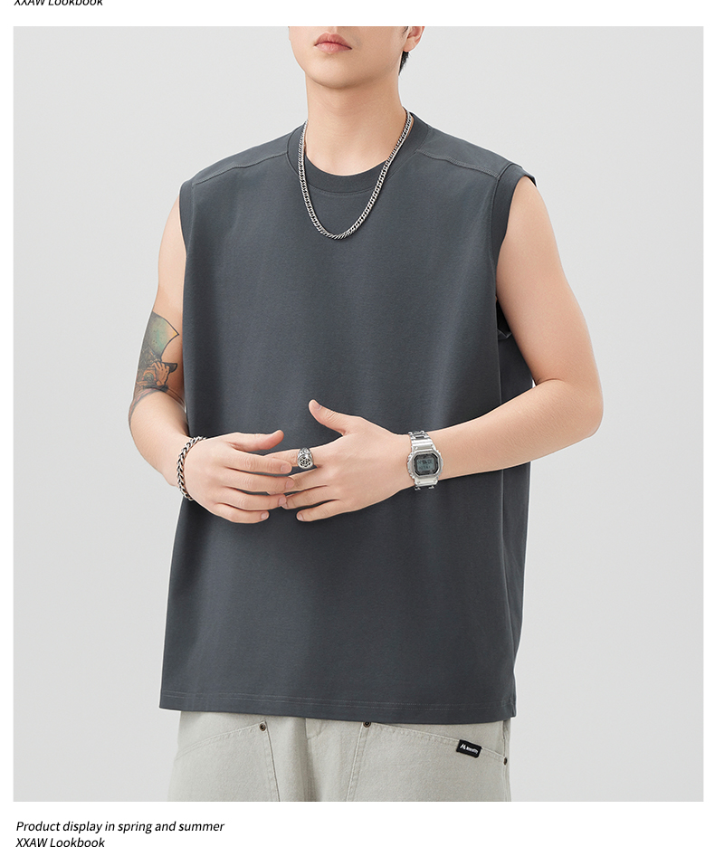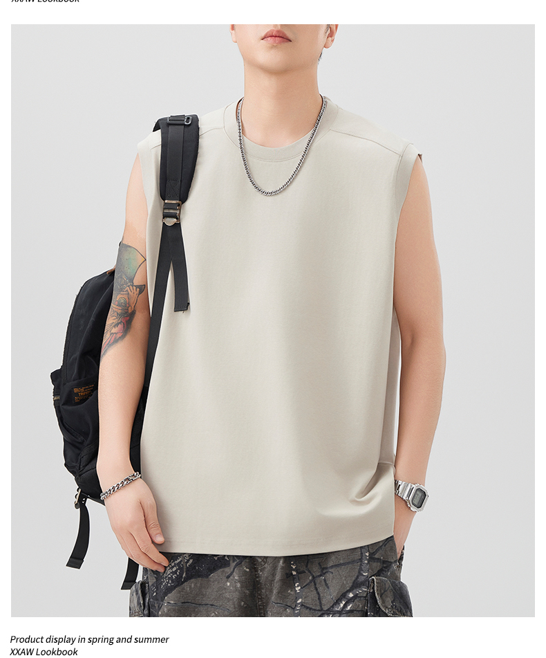 2025夏季降溫速乾坎肩背心男士寬松百搭運動圓領純色無袖上衣T恤