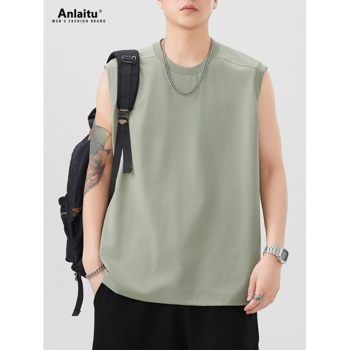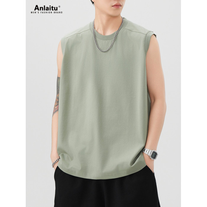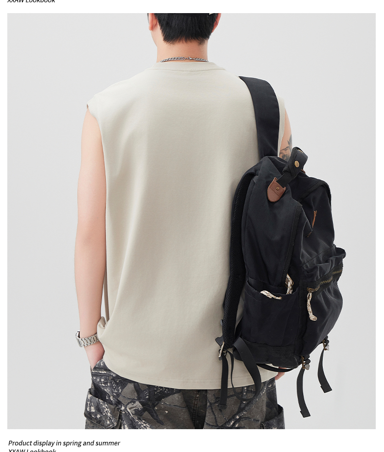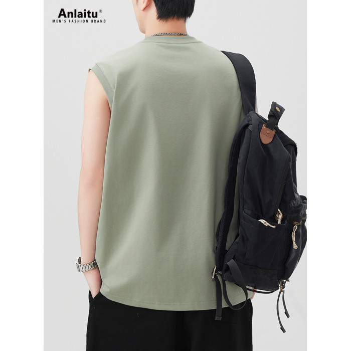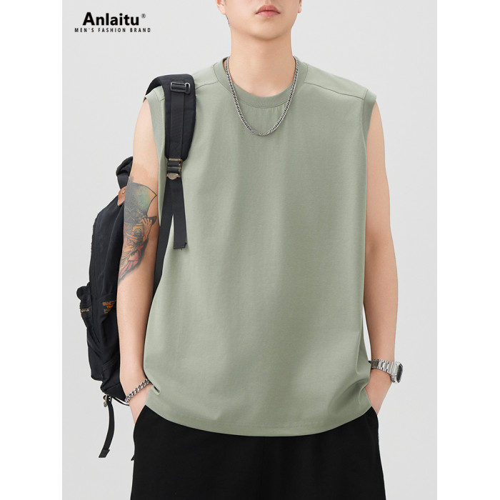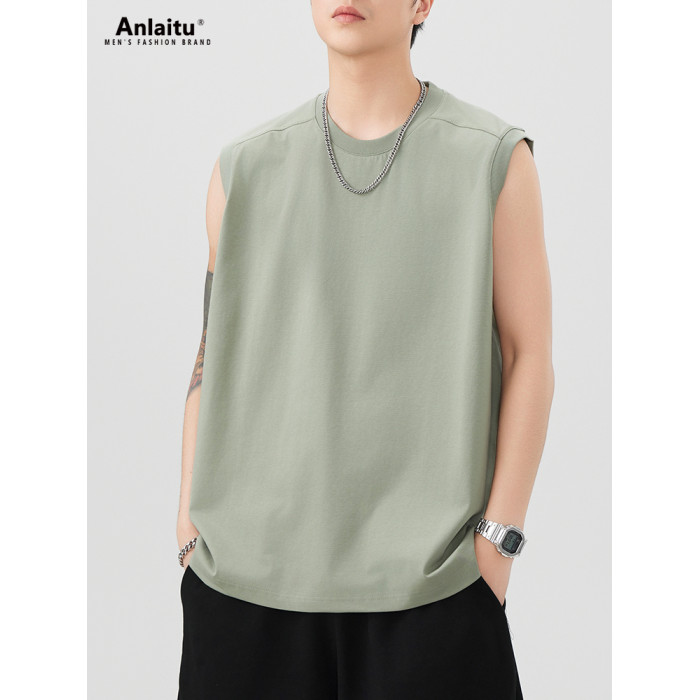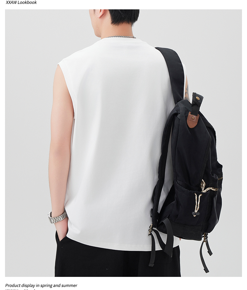 2025夏季降溫速乾坎肩背心男士寬松百搭運動圓領純色無袖上衣T恤