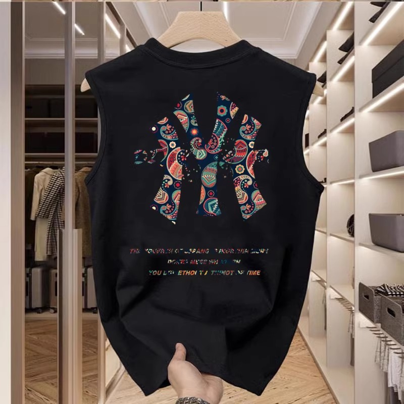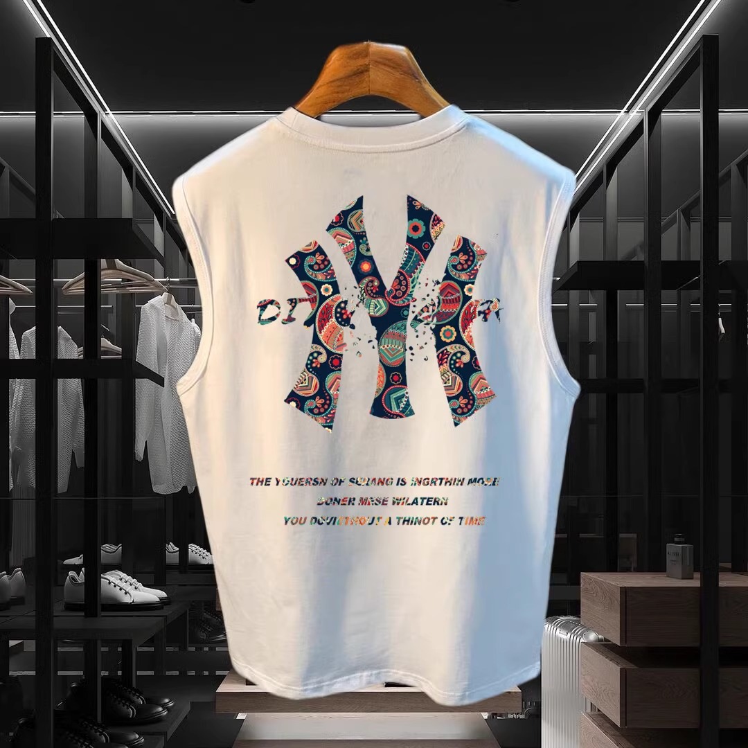 潮牌純棉背心男士無袖T恤2025新款夏季彩色印花坎肩運動上衣男款