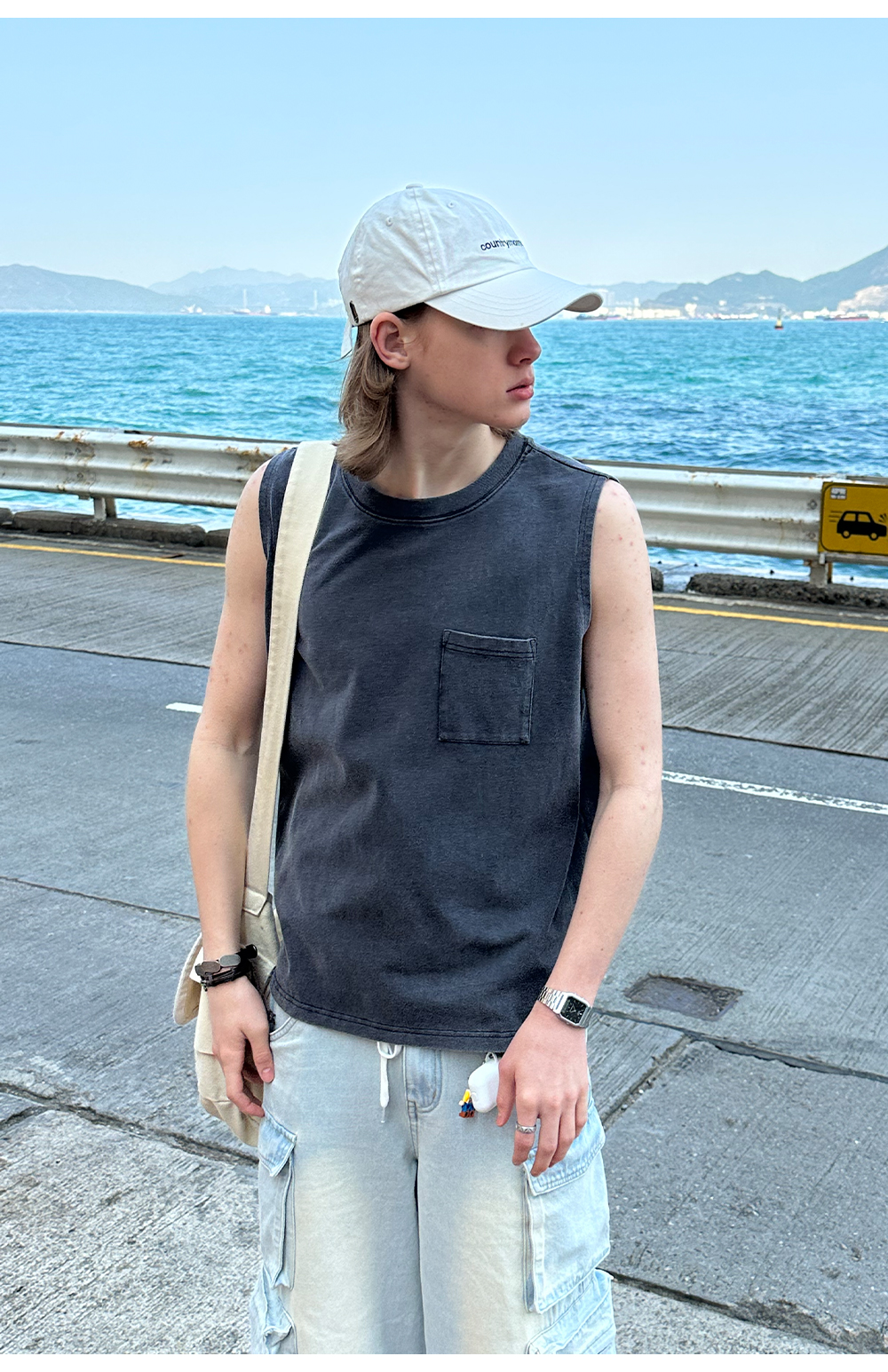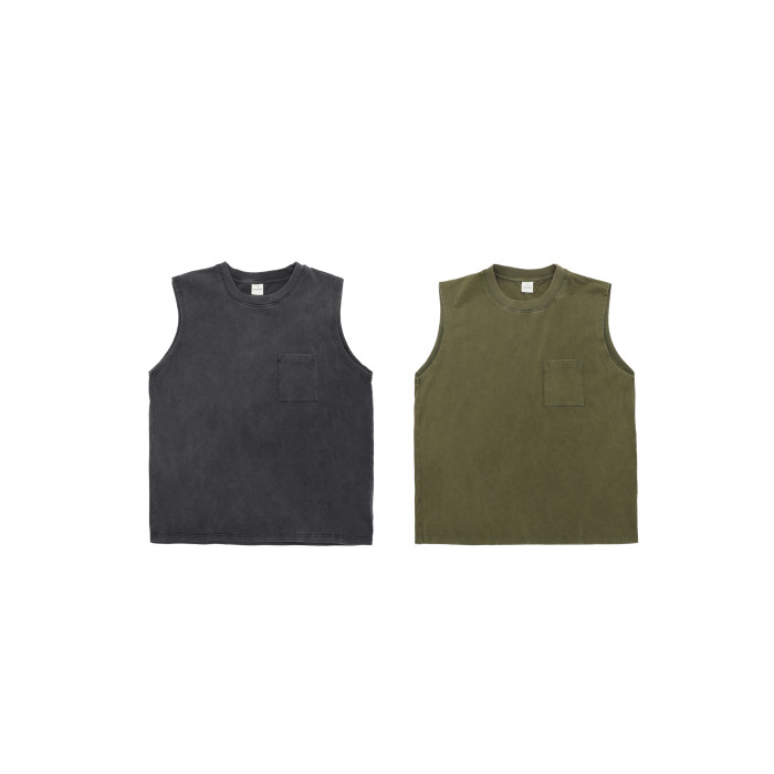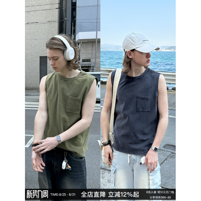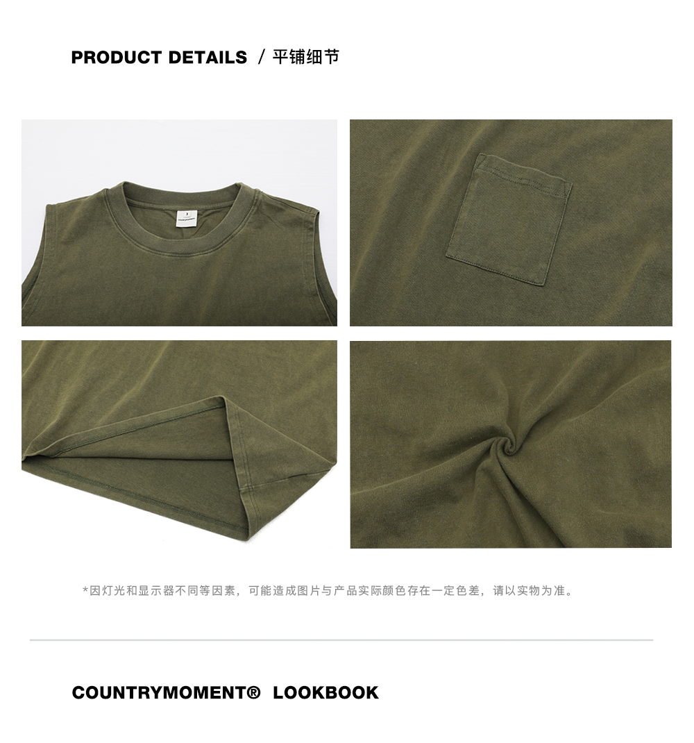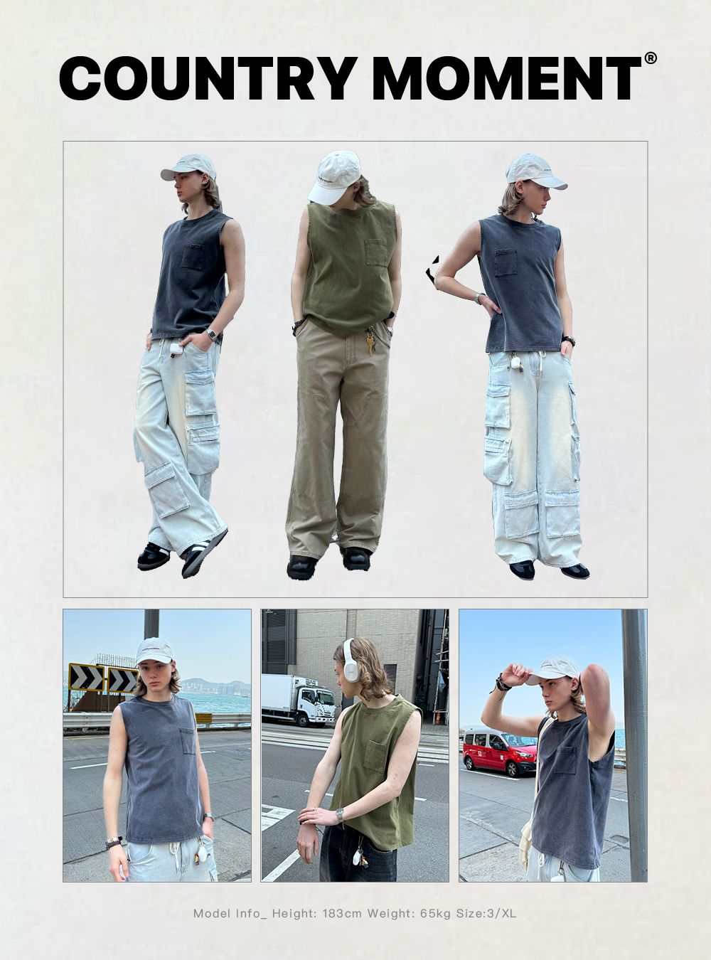 CountryMoment 水洗做舊290G重磅美式復古坎肩無袖打底衫背心男女