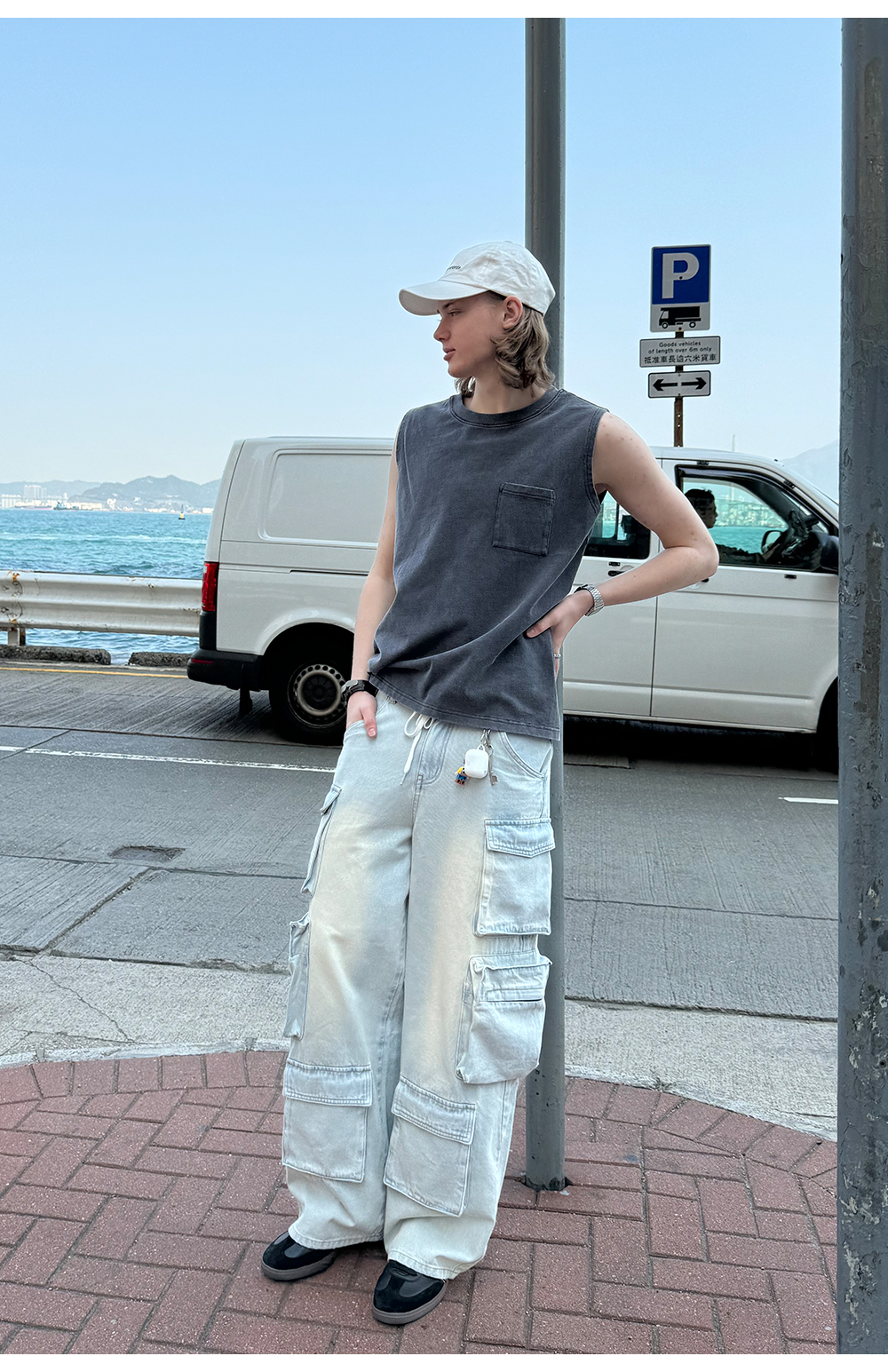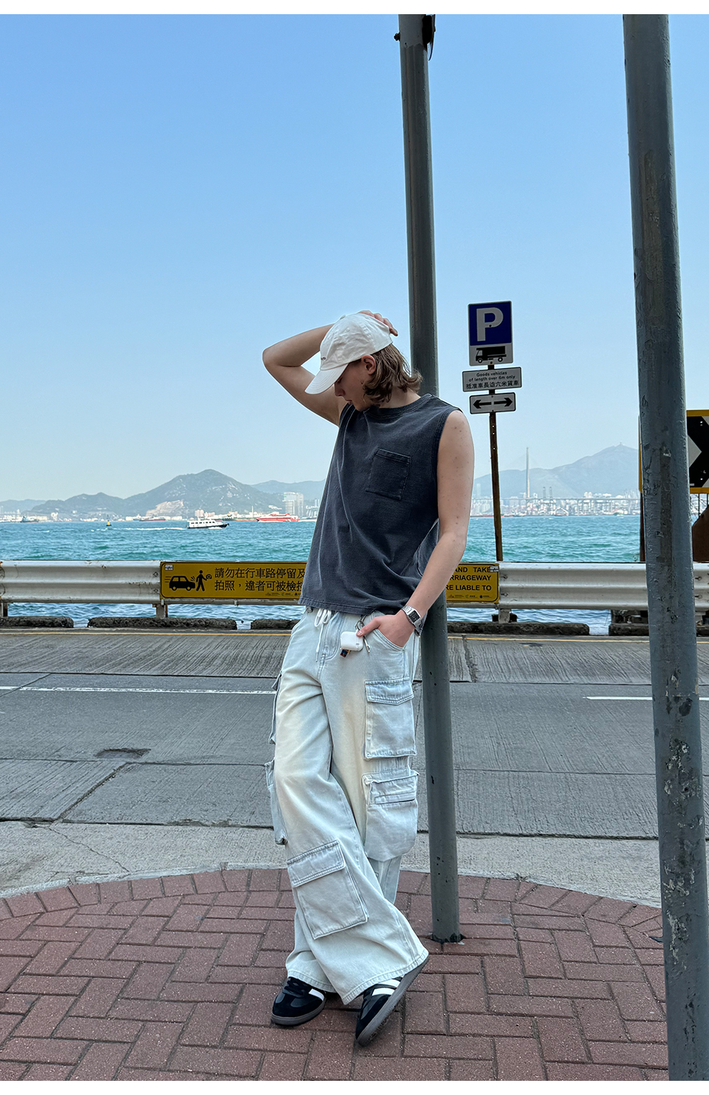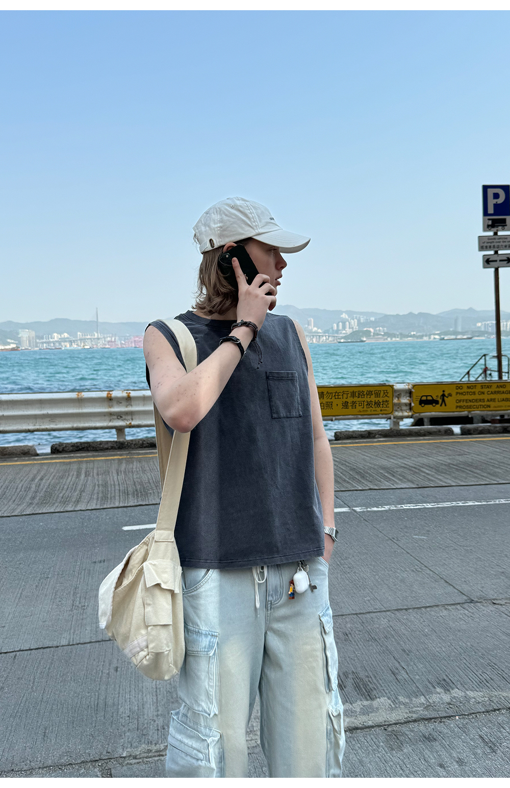 CountryMoment 水洗做舊290G重磅美式復古坎肩無袖打底衫背心男女