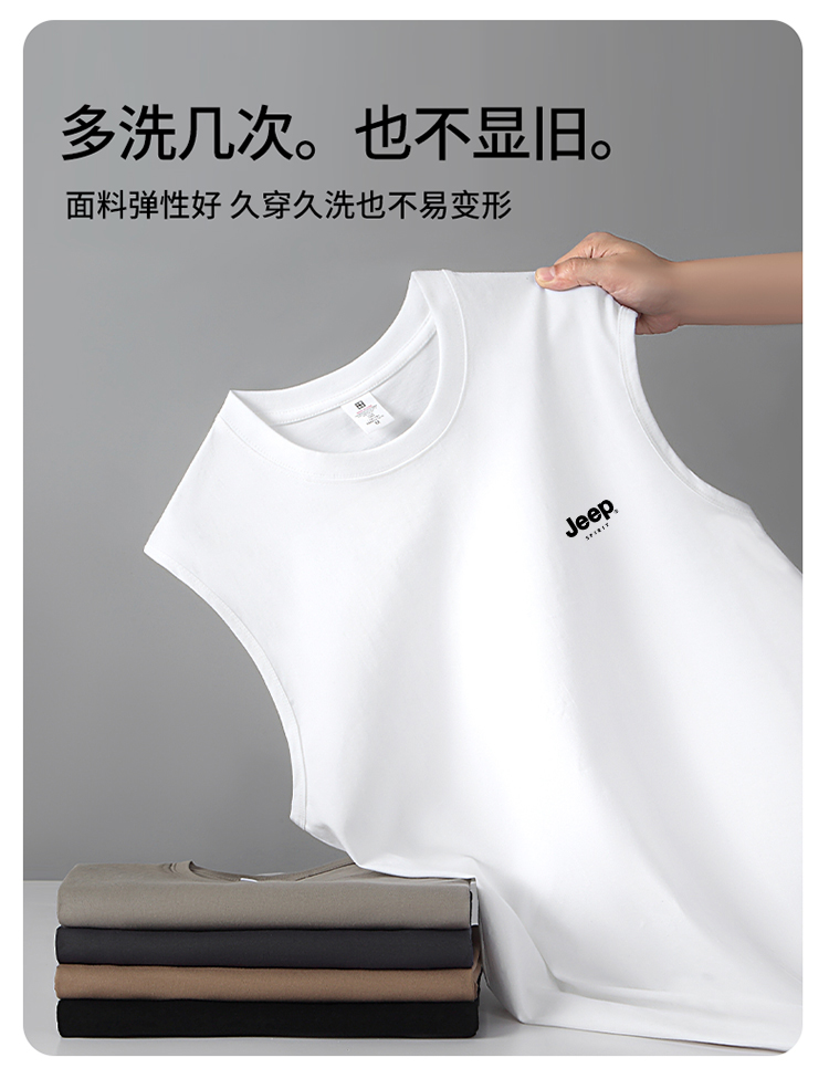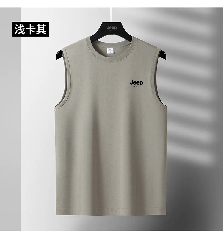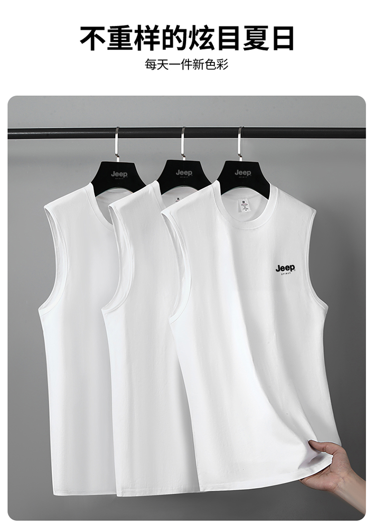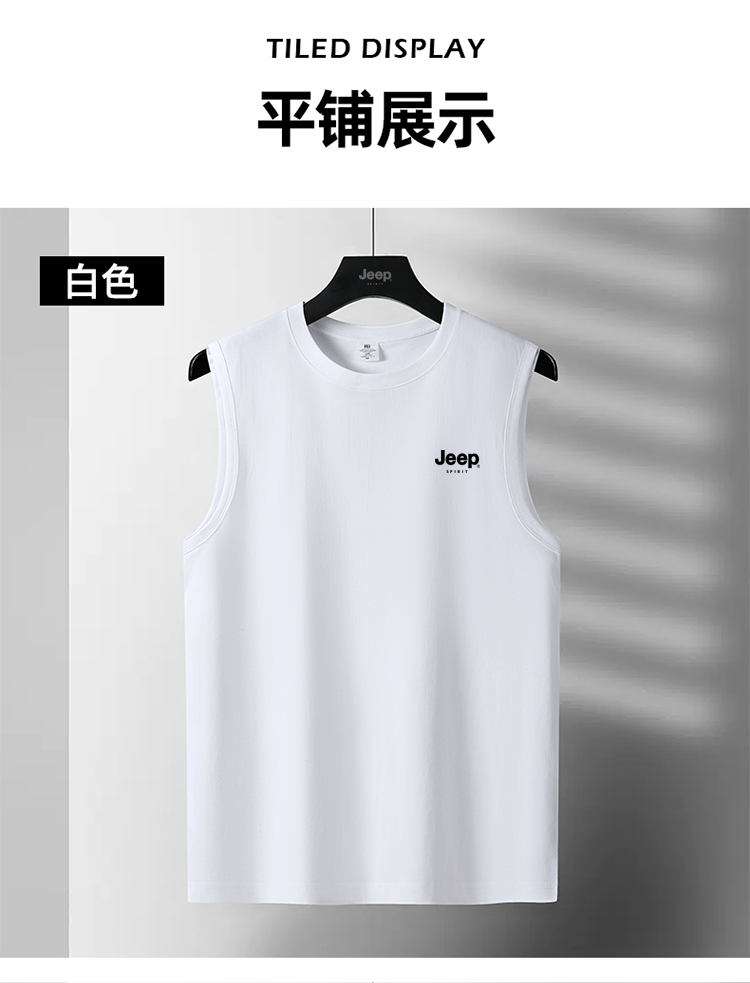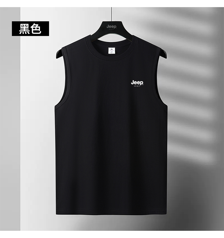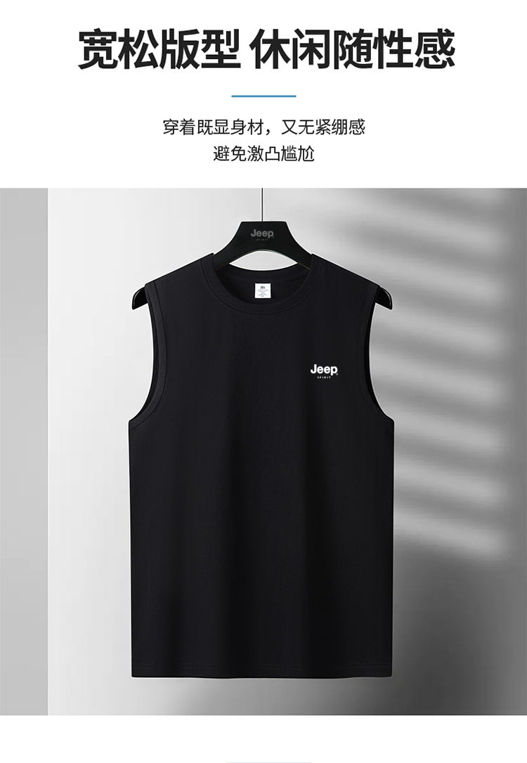 JEEP SPIRIT純棉背心男士夏季寬肩汗衫運動全棉無袖男款坎肩T恤衫