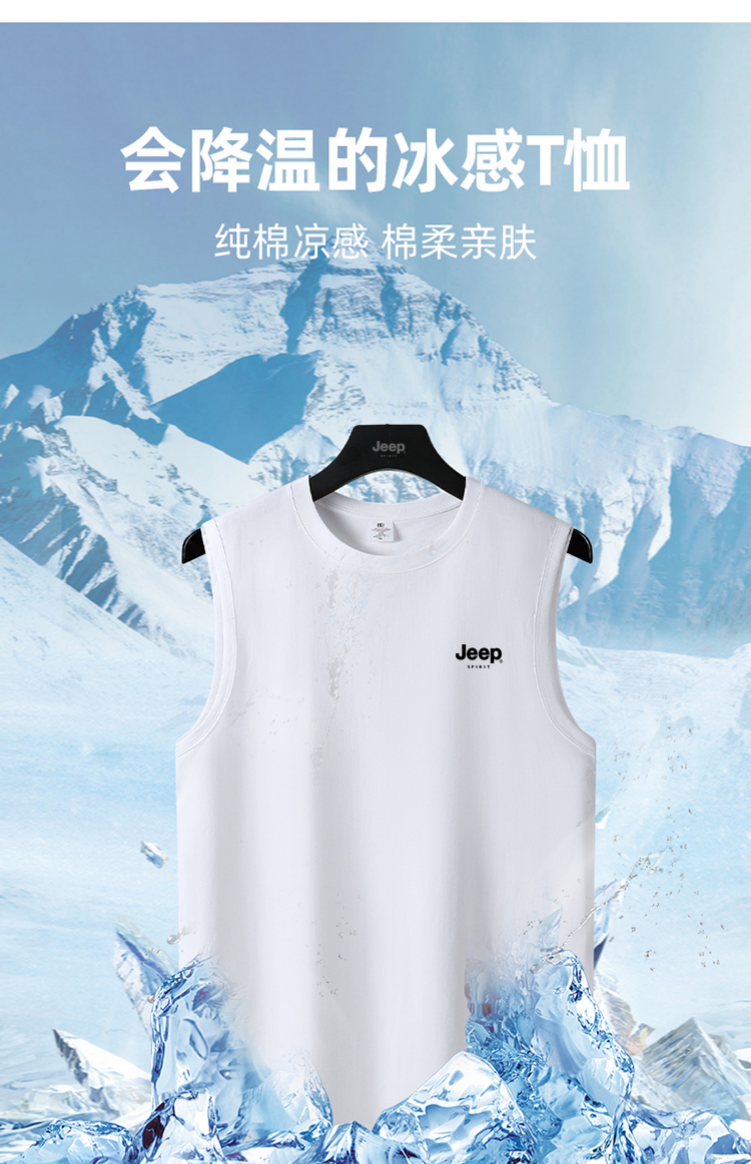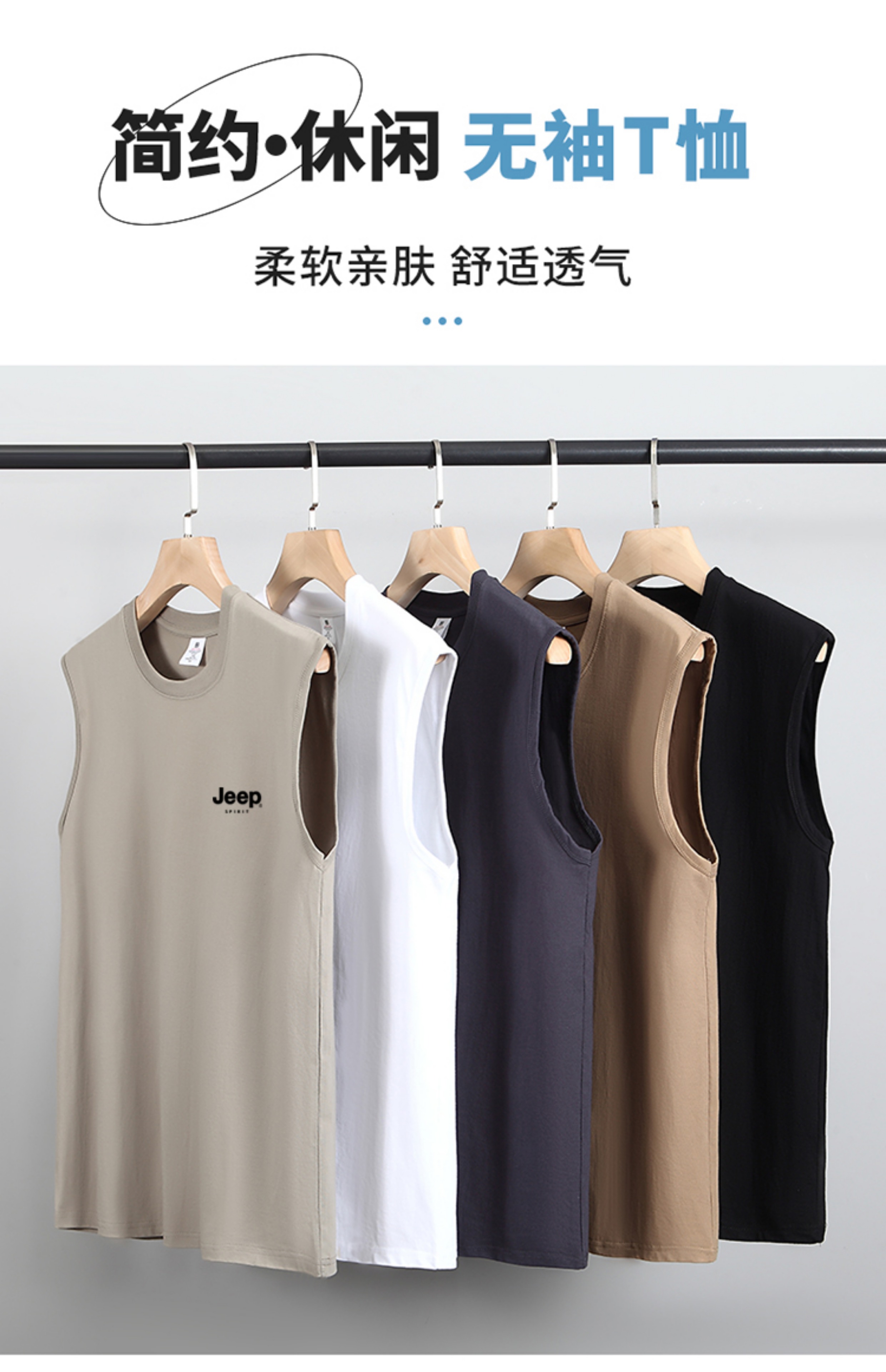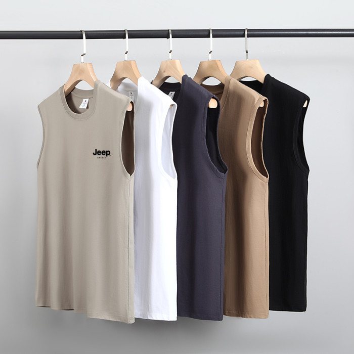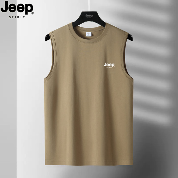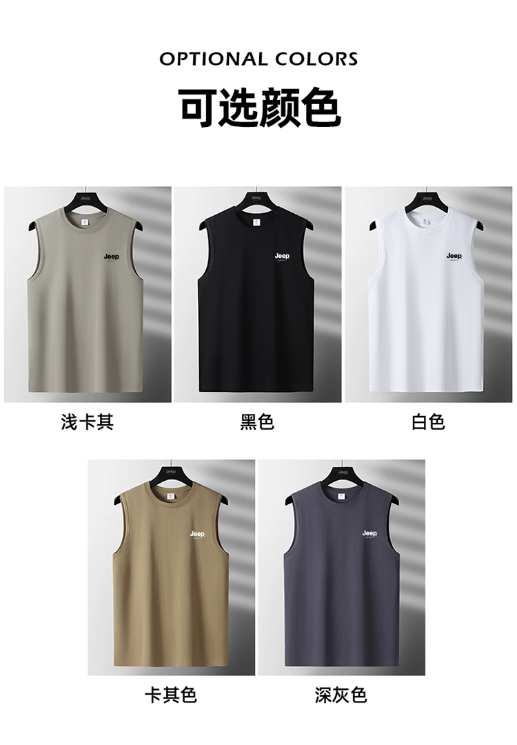 JEEP SPIRIT純棉背心男士夏季寬肩汗衫運動全棉無袖男款坎肩T恤衫