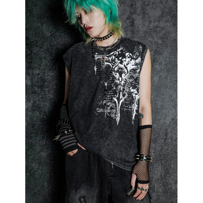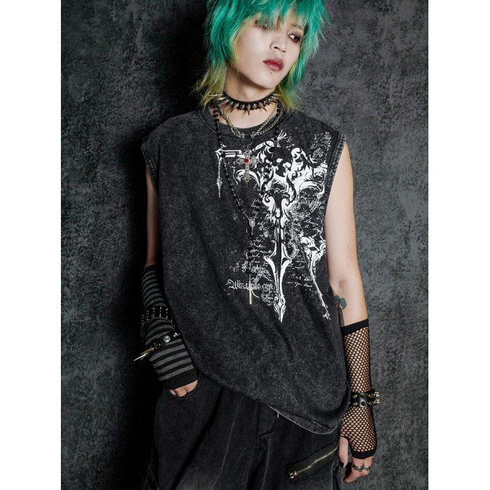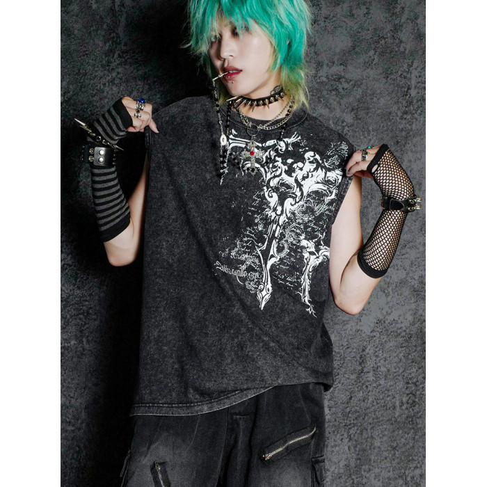 別閙BIZZCUT/信仰光環/亞文化上衣暗黑哥特背心男復古無袖T恤女