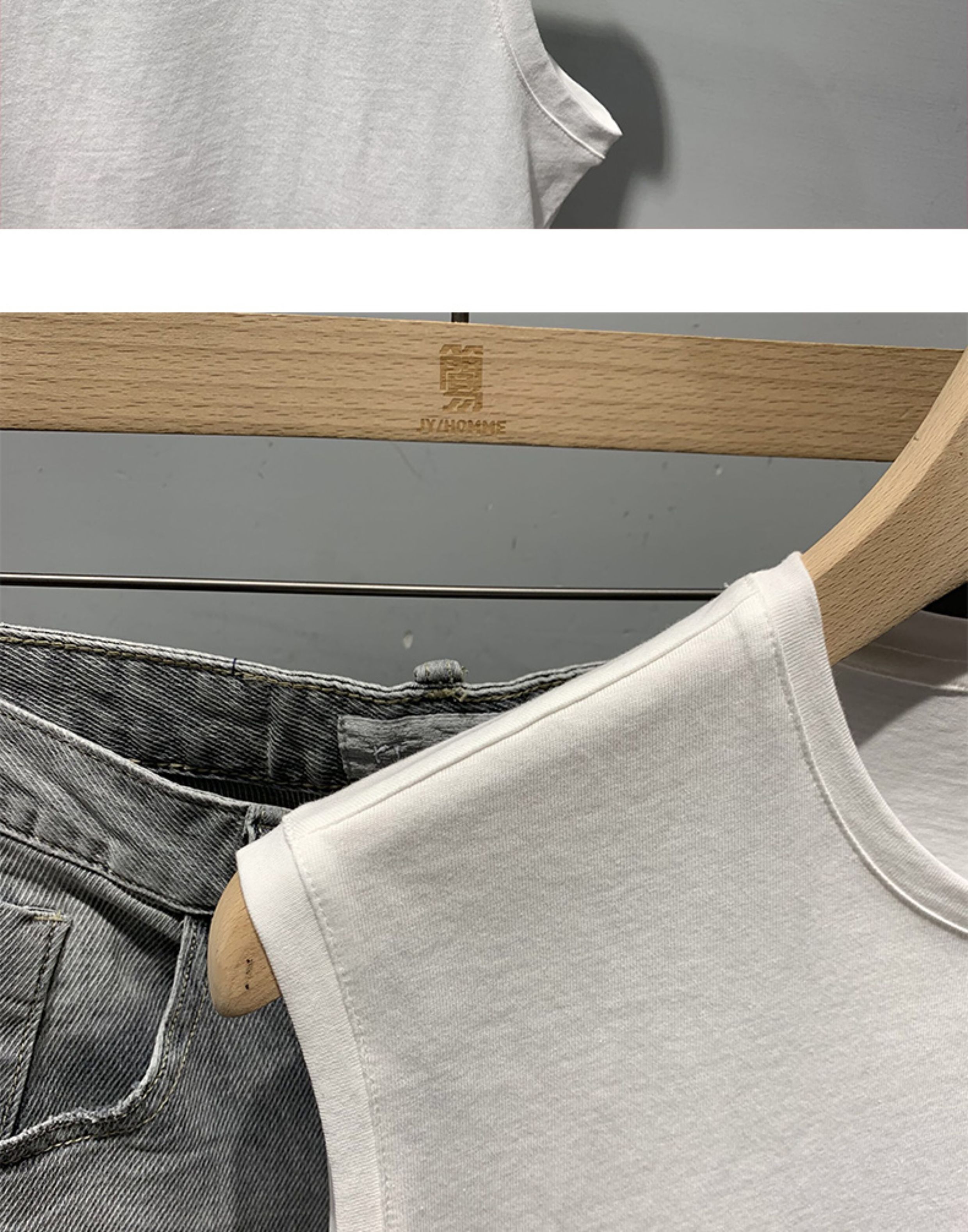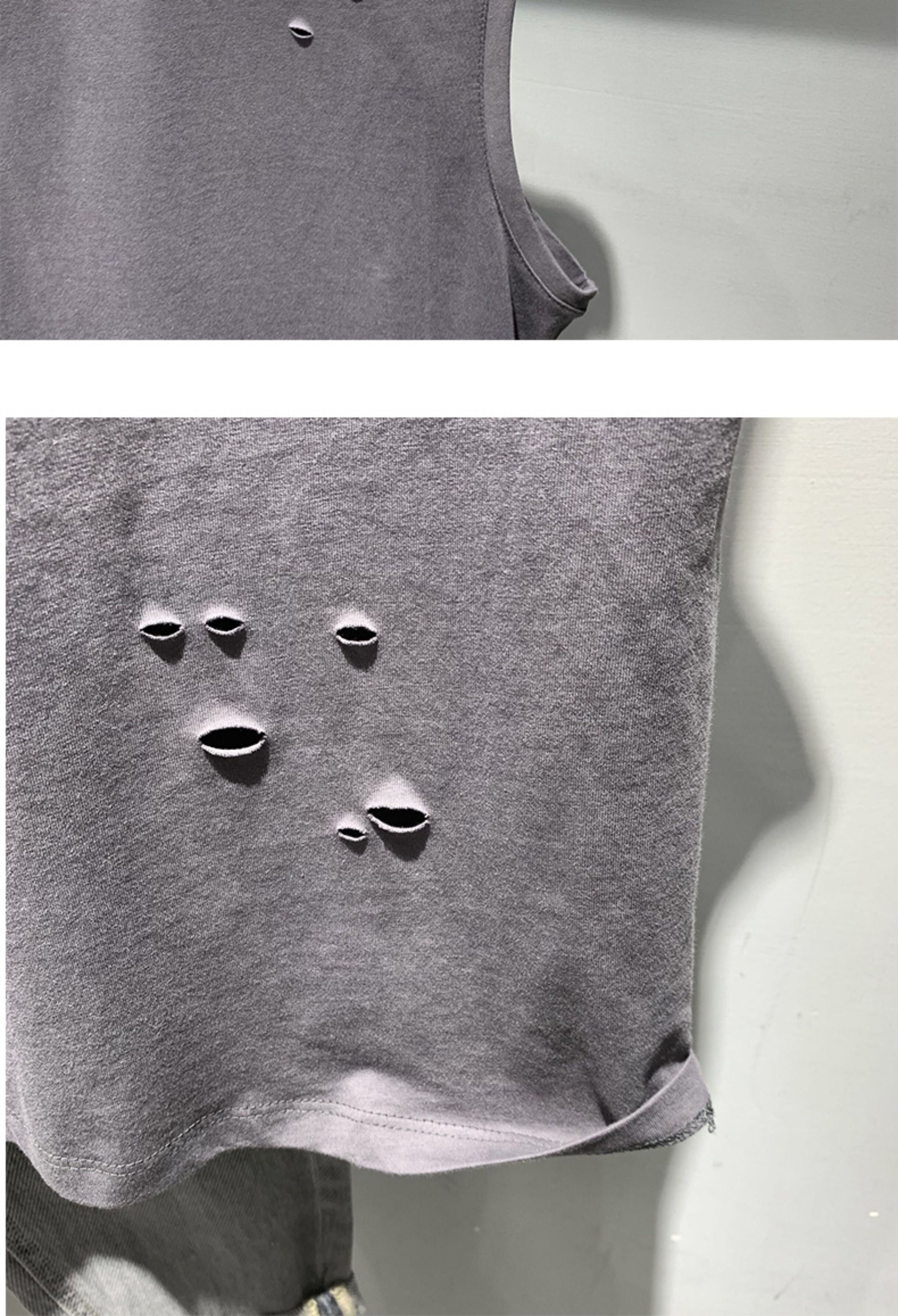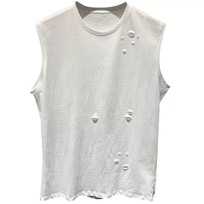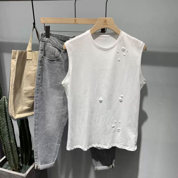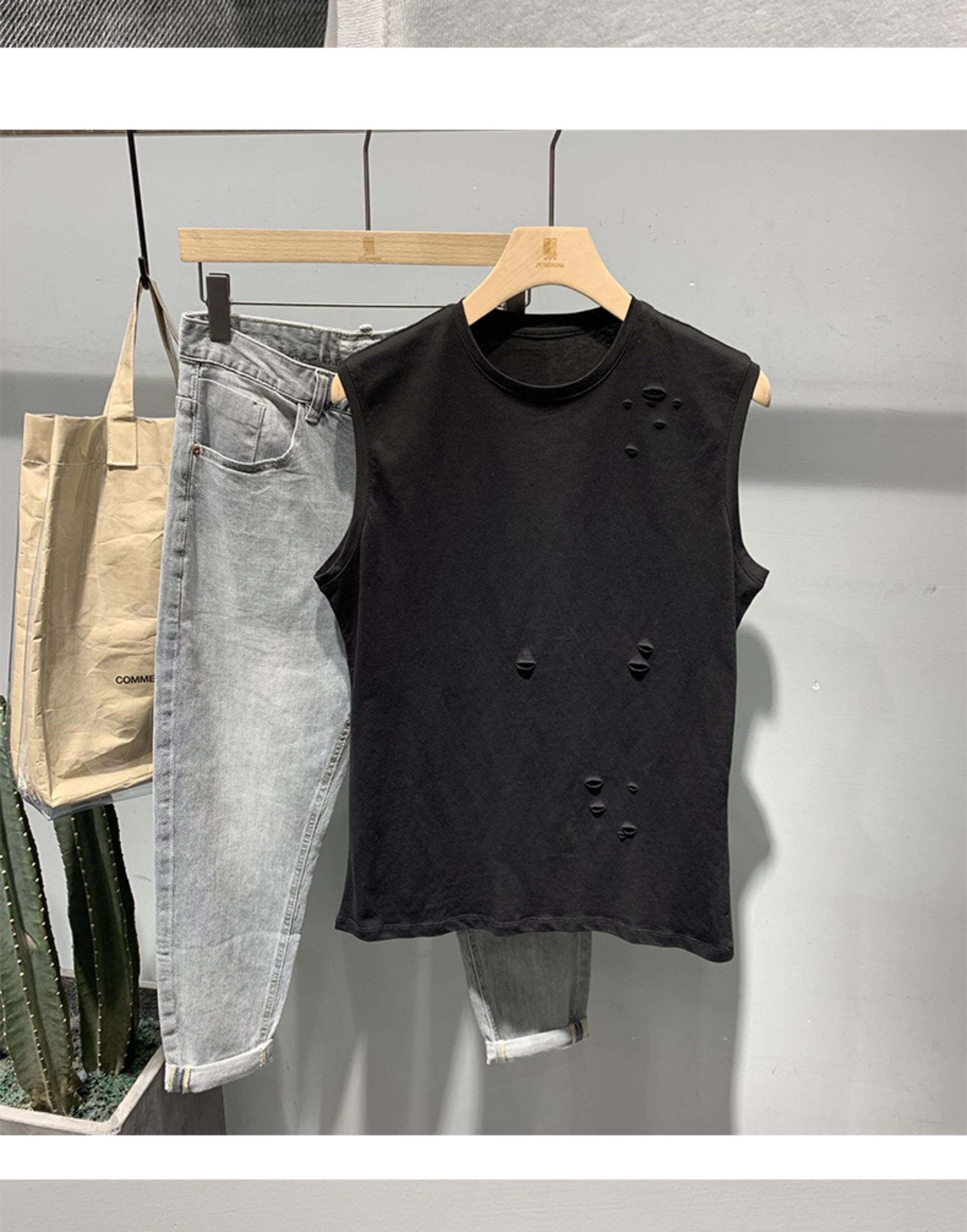 破洞無袖背心男夏季寬松沙灘休閒潮牌外穿打底衫健身運動坎肩t恤