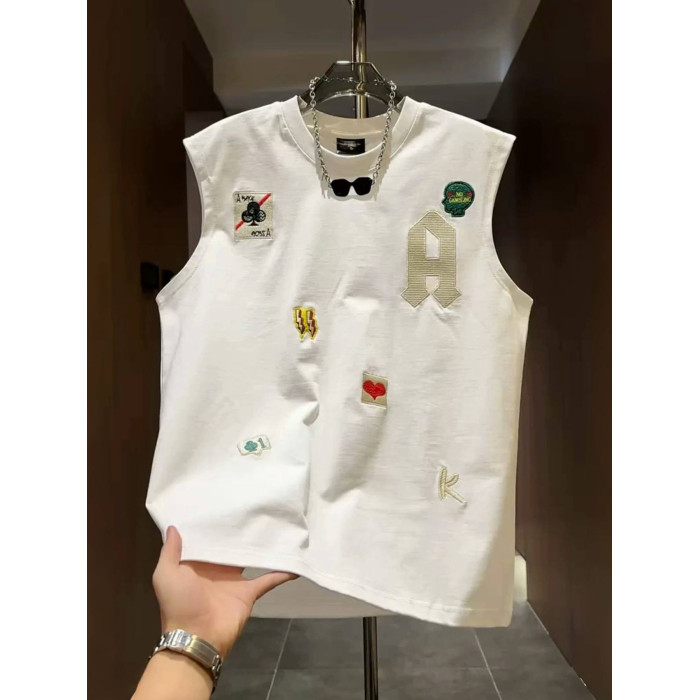 MAROLIO~彰顯設計感!純棉運動無袖T恤男卡通多標印花坎肩背心潮