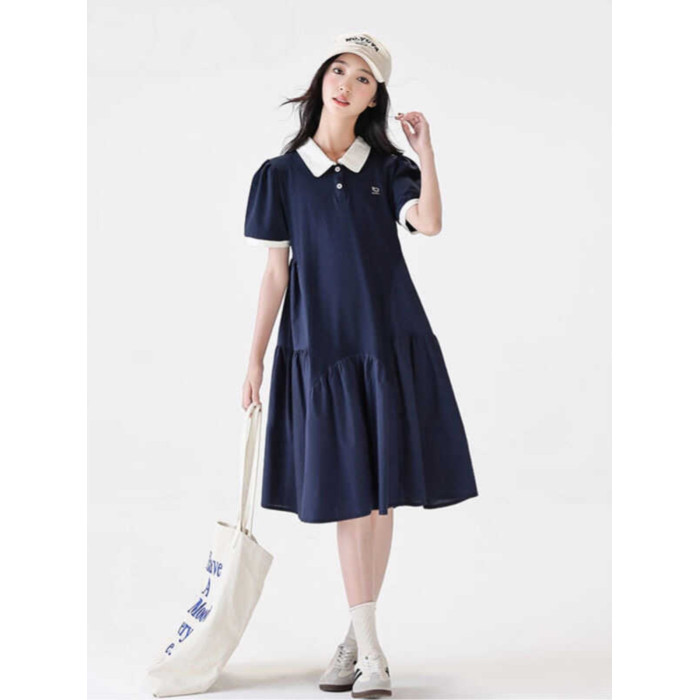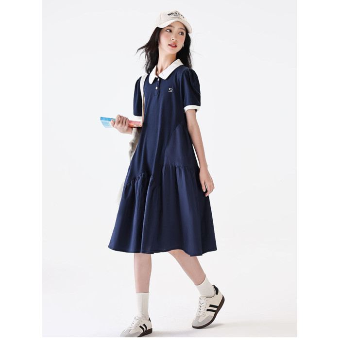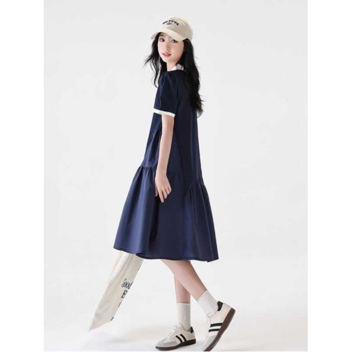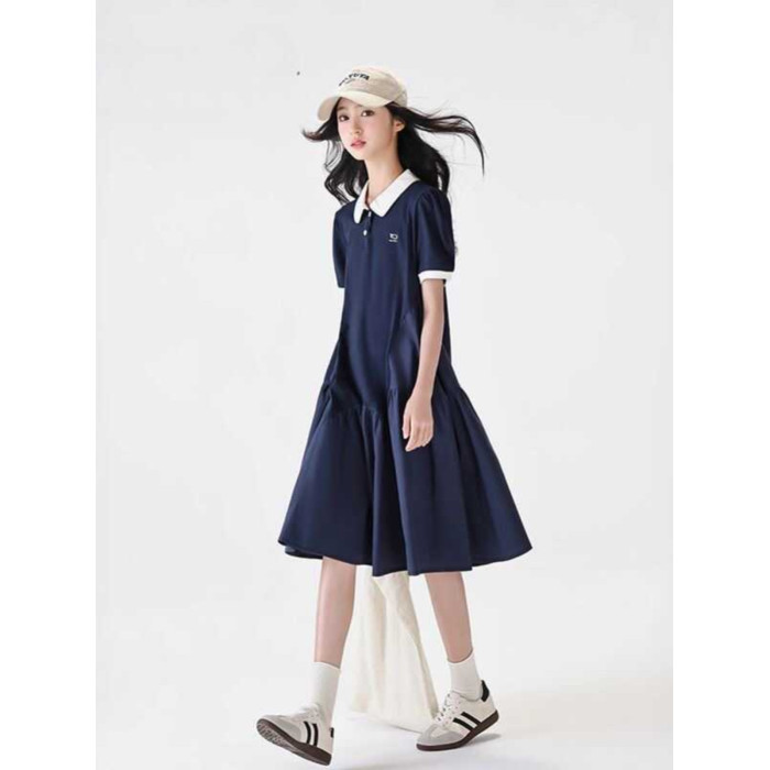 女童連衣裙夏季2025新款學院風Polo領中學生大童女裝夏天寬松裙子