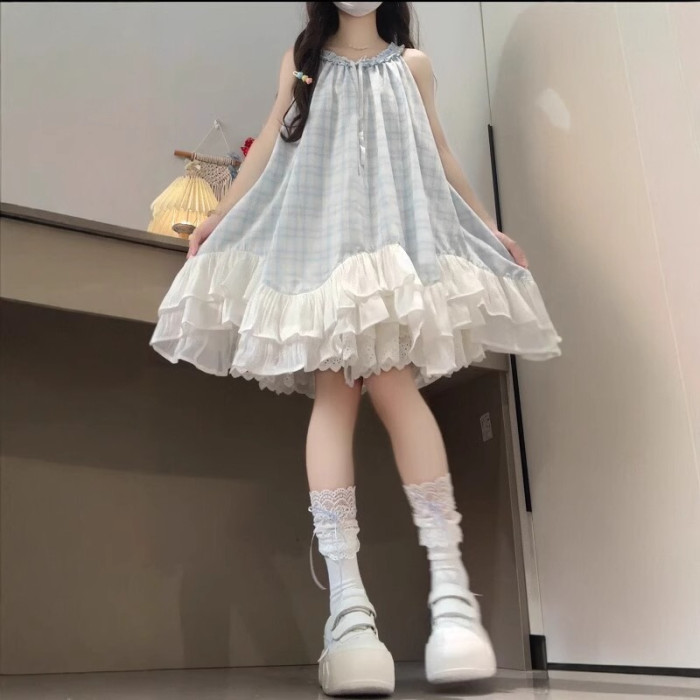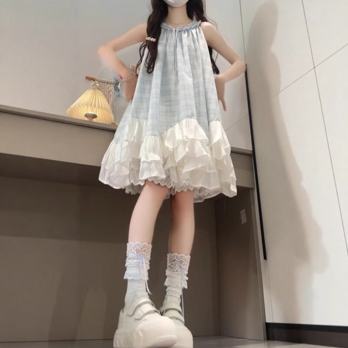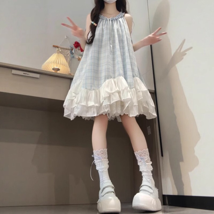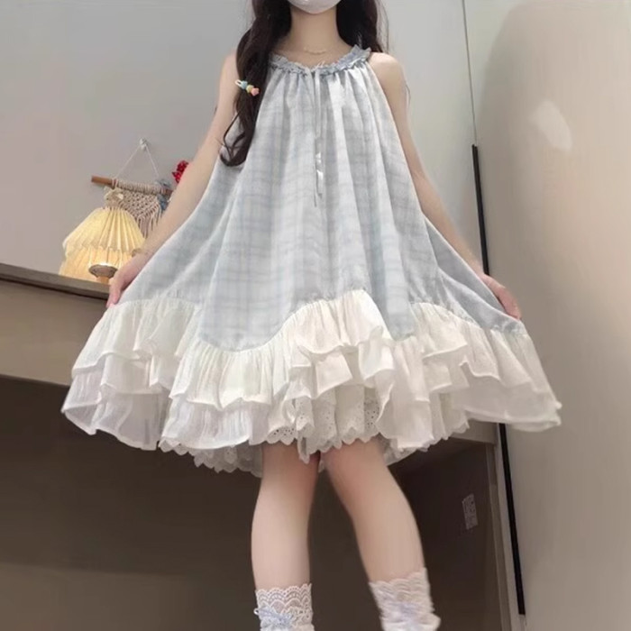 女童連衣裙2025新款夏季兒童無袖吊帶裙子中大童女孩荷葉邊公主裙